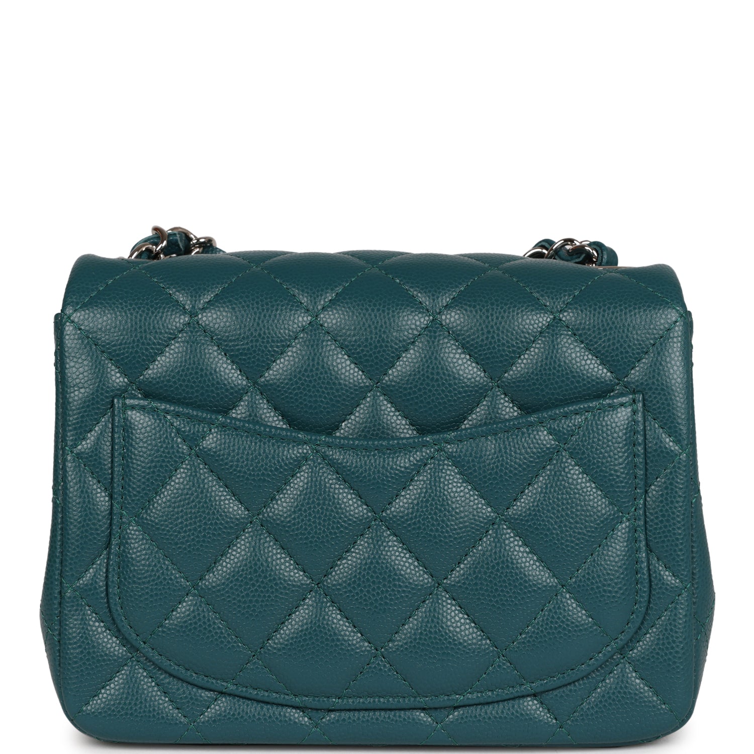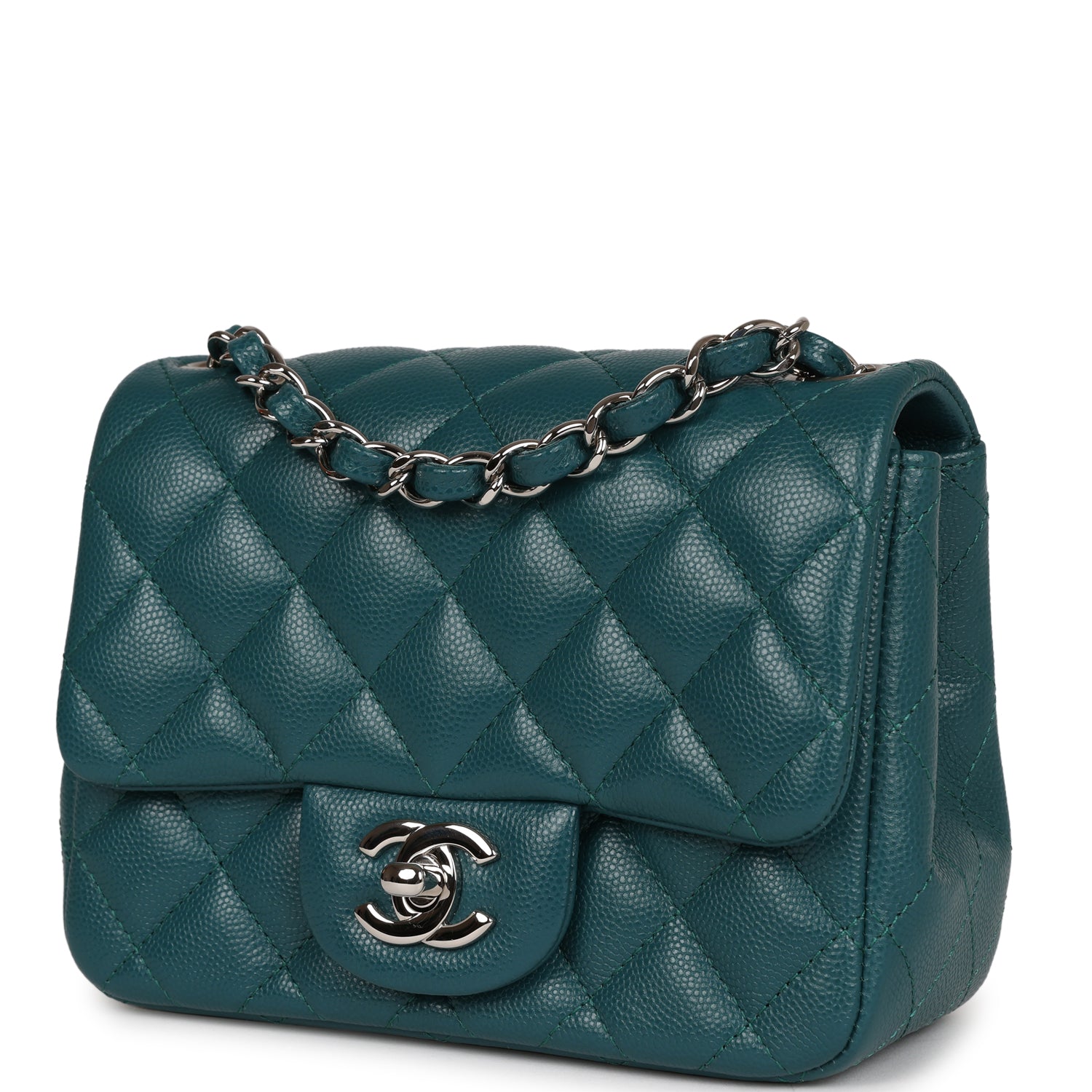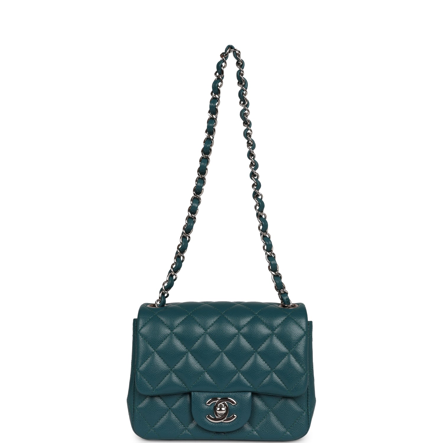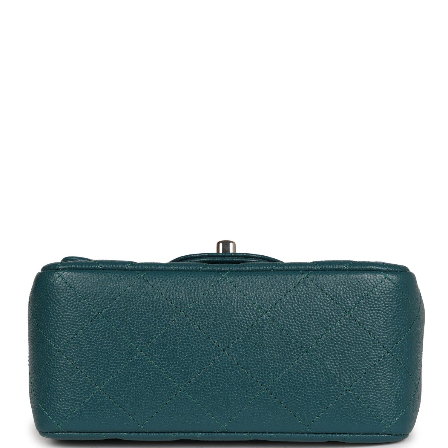 Chanel Mini Square Flap Bag Dark Green Caviar Silver Hardware