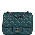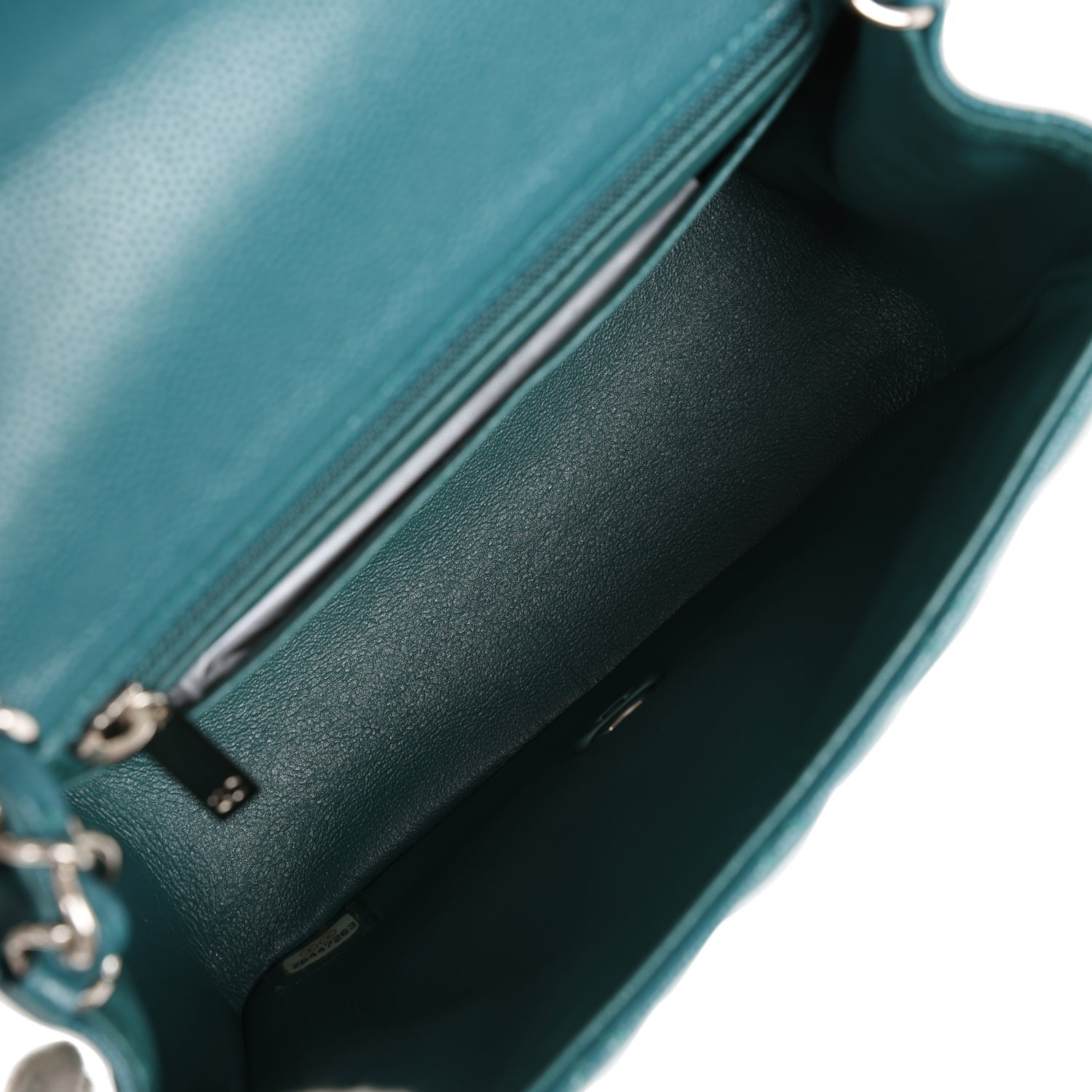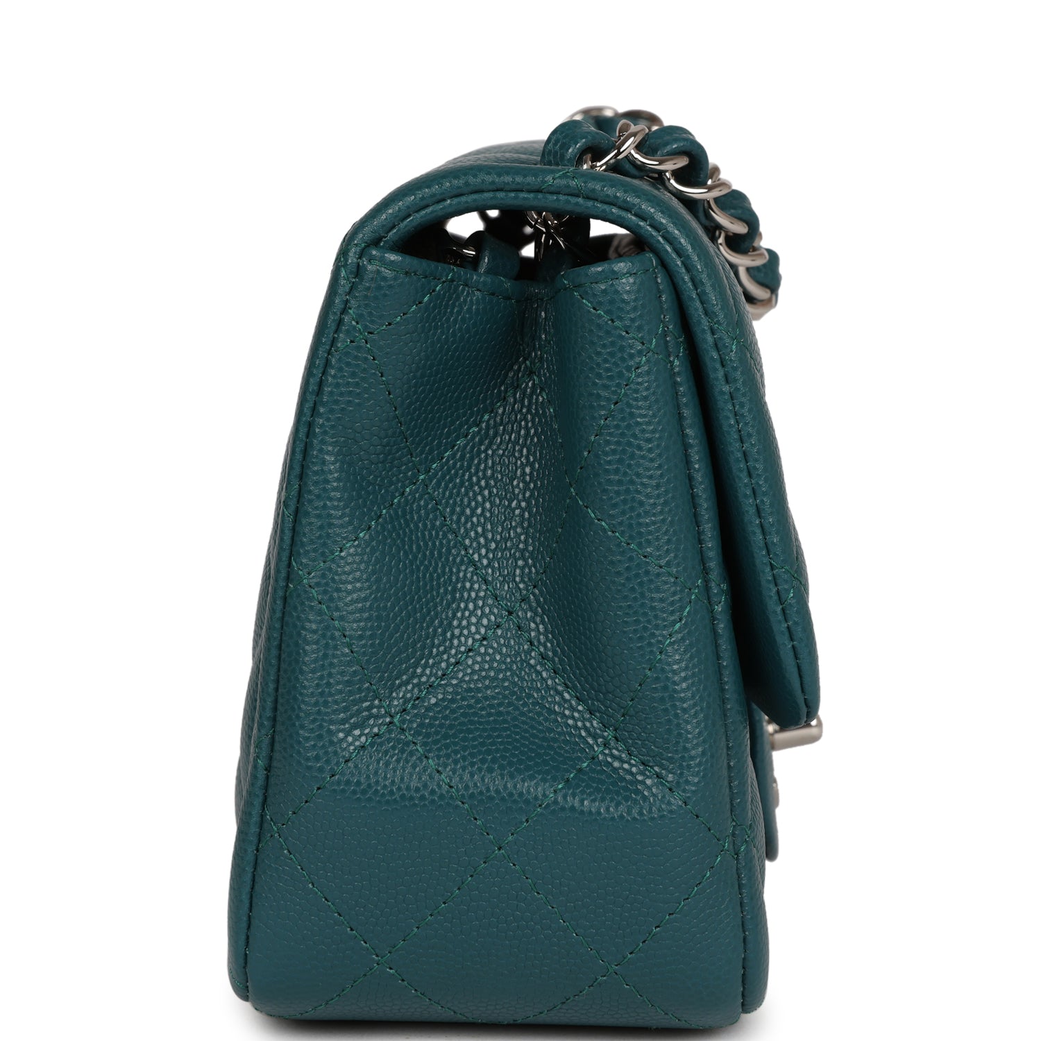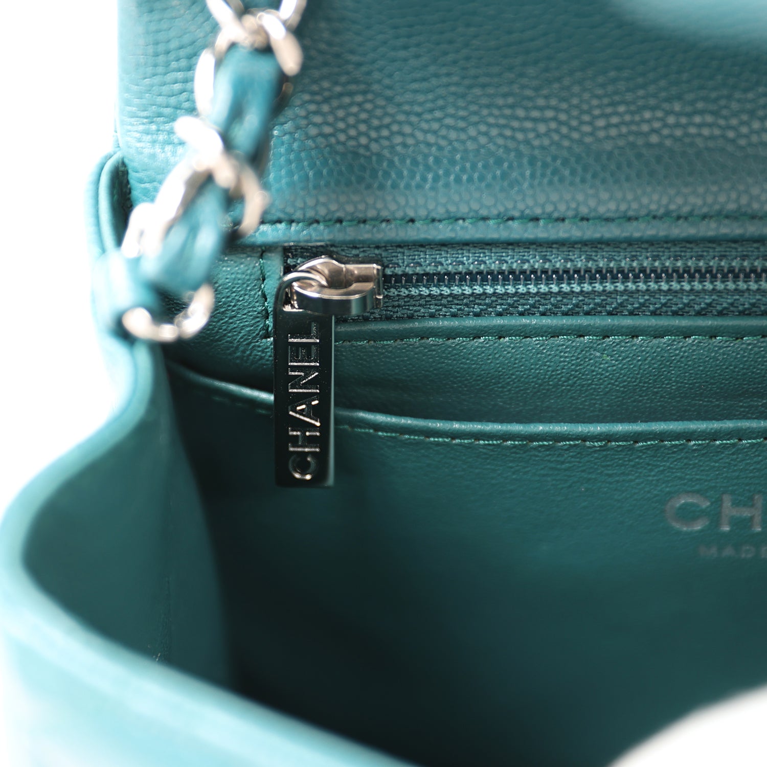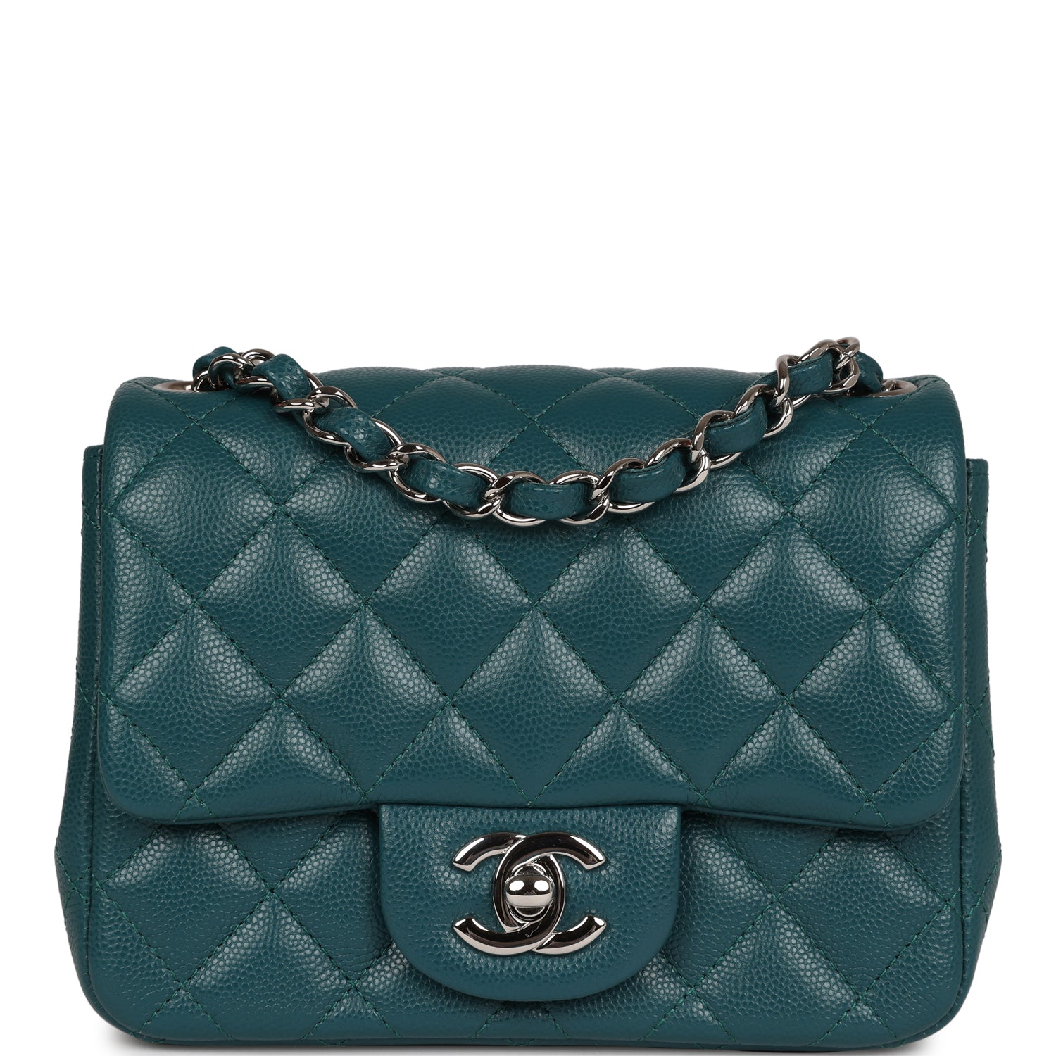Chanel Mini Square Flap Bag Dark Green Caviar Silver Hardware