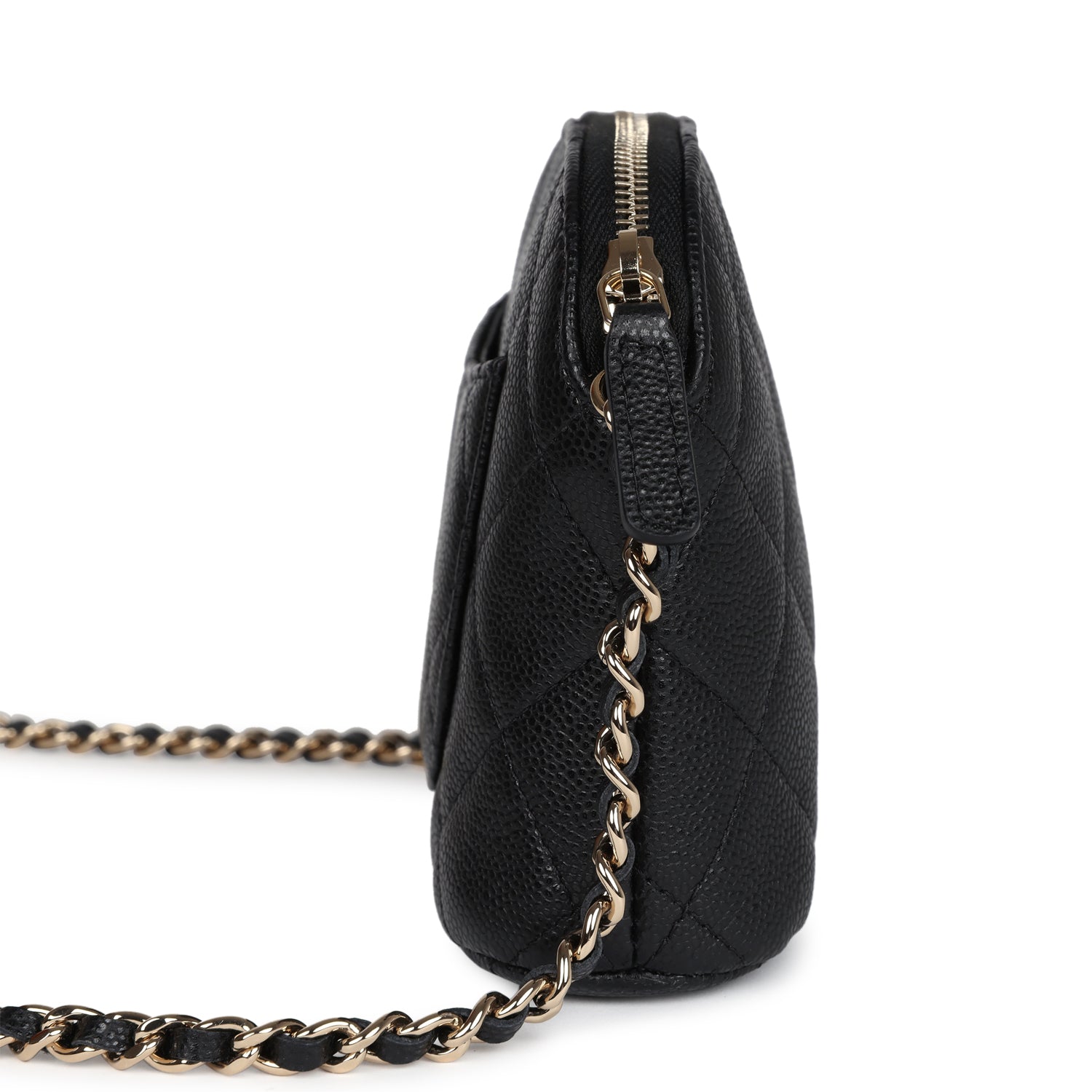 Chanel Mini Clutch with Chain Crossbody Bag Black Caviar Light Gold Hardware