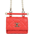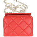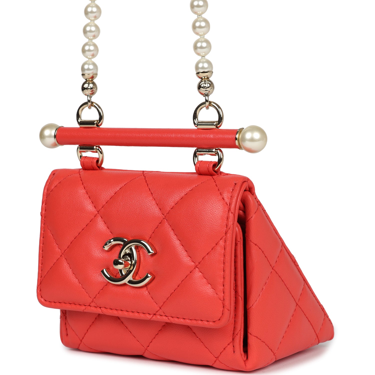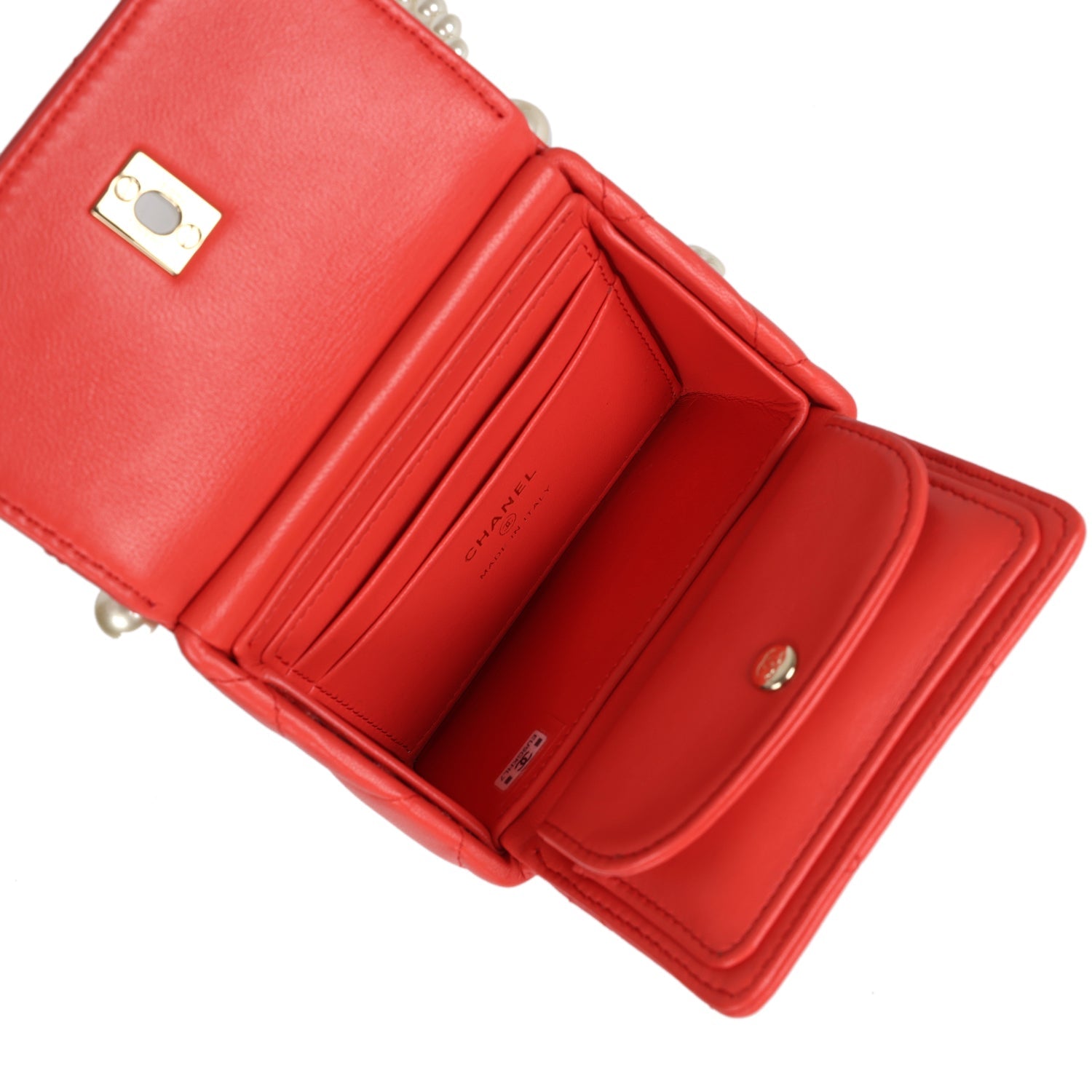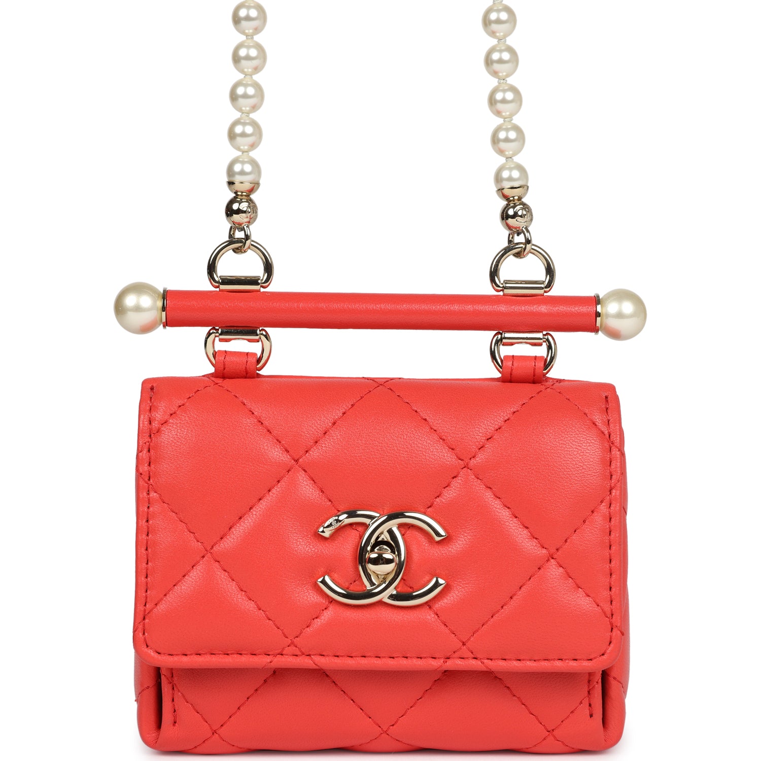 Chanel Mini Clutch with Pearl Chain Red Lambskin Light Gold Hardware