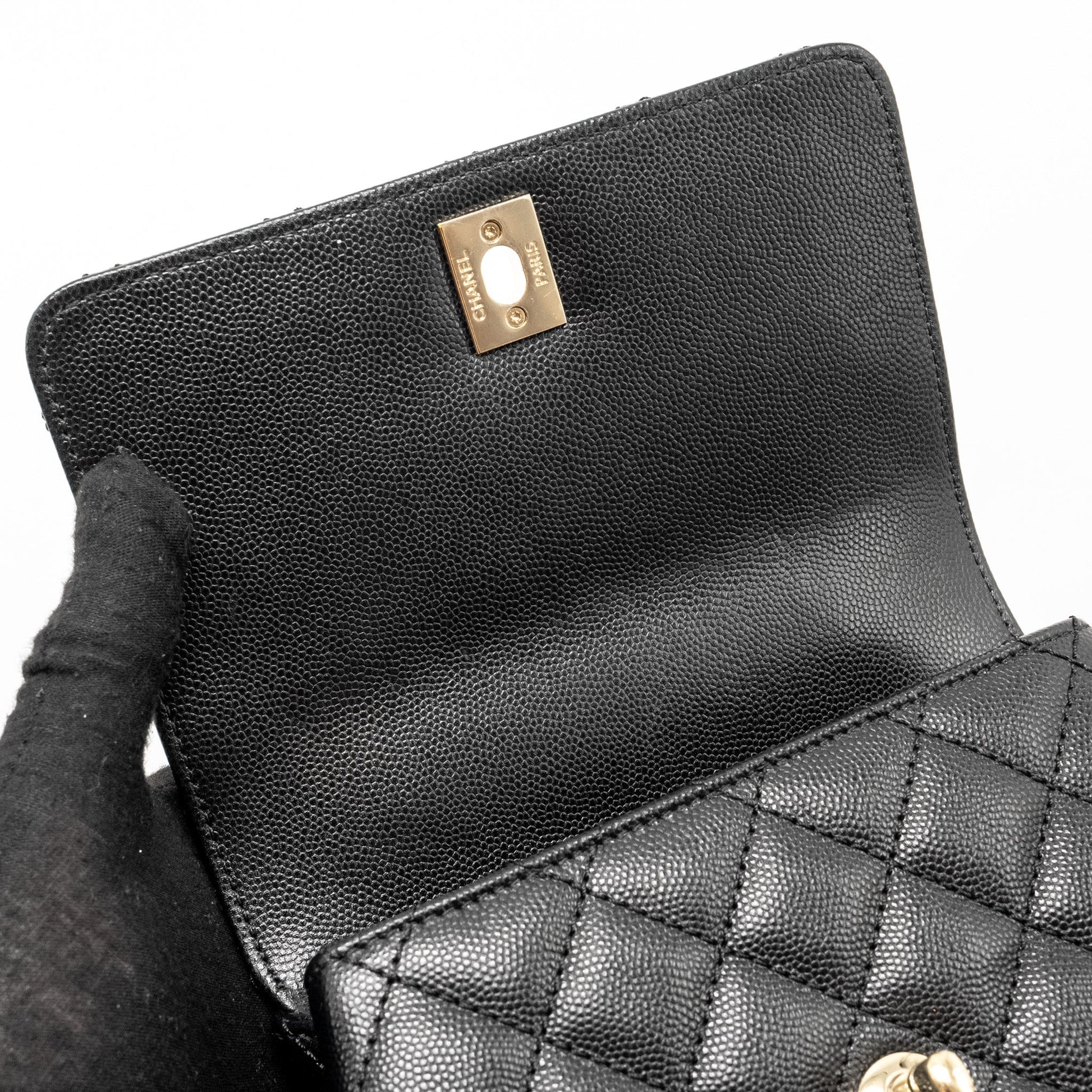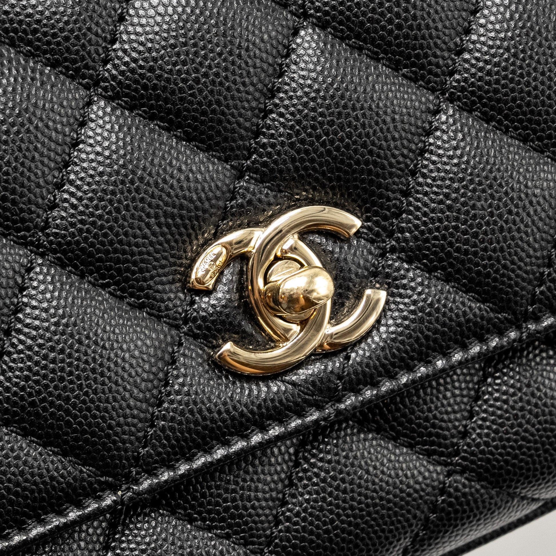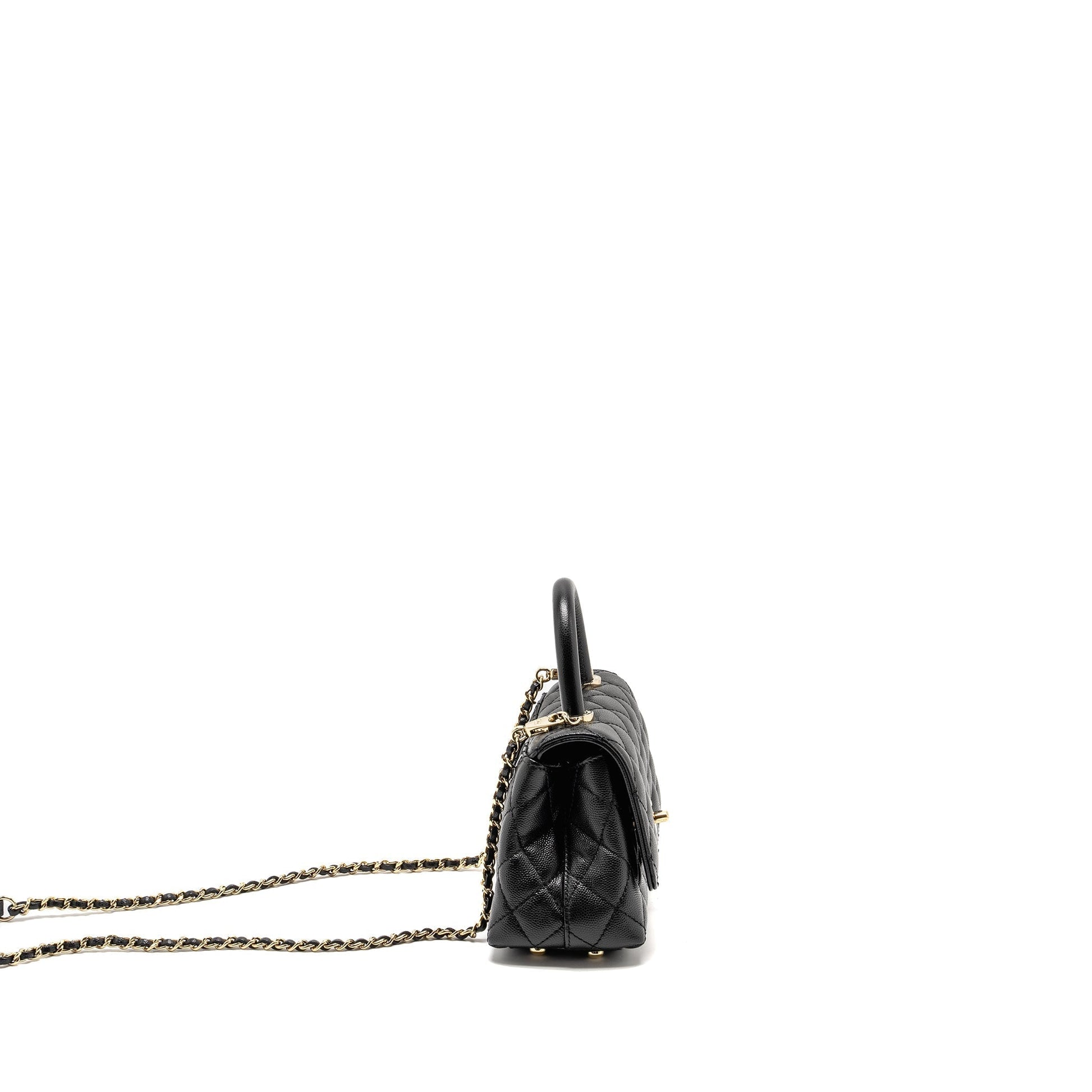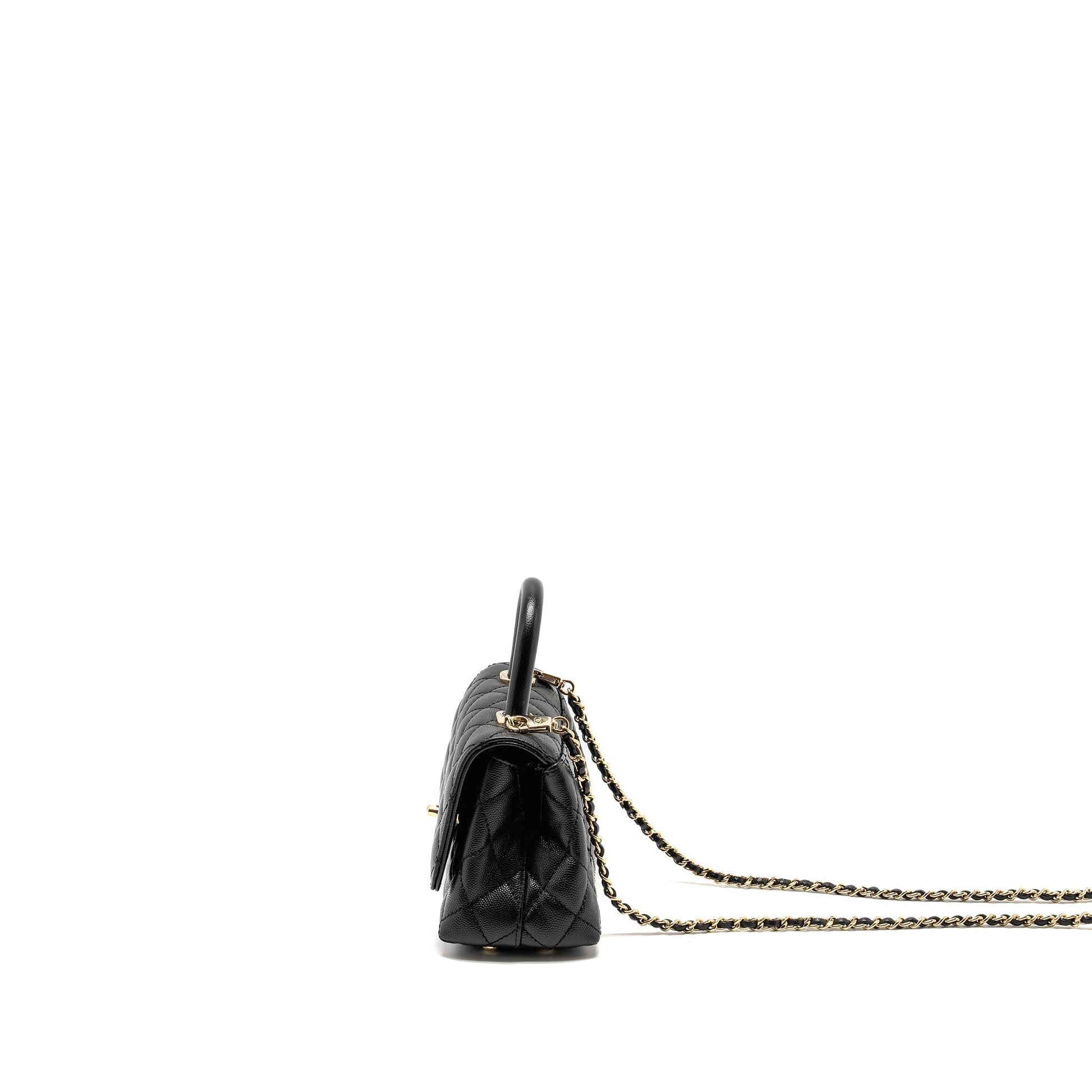 CHANEL Mini Coco Handle Caviar Black LGHW (Microchip)