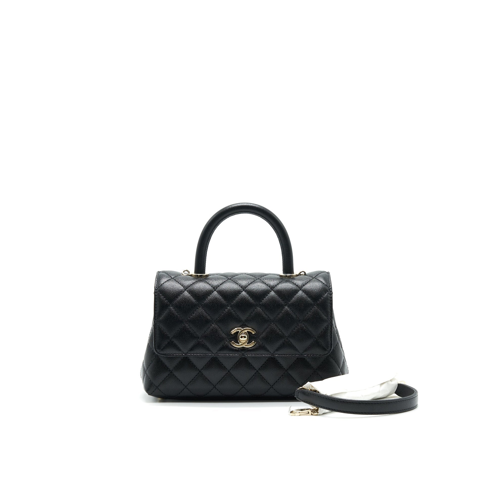 Chanel 21K Small (old mini) 24cm Cocohandle Black Caviar LGHW (microchip)