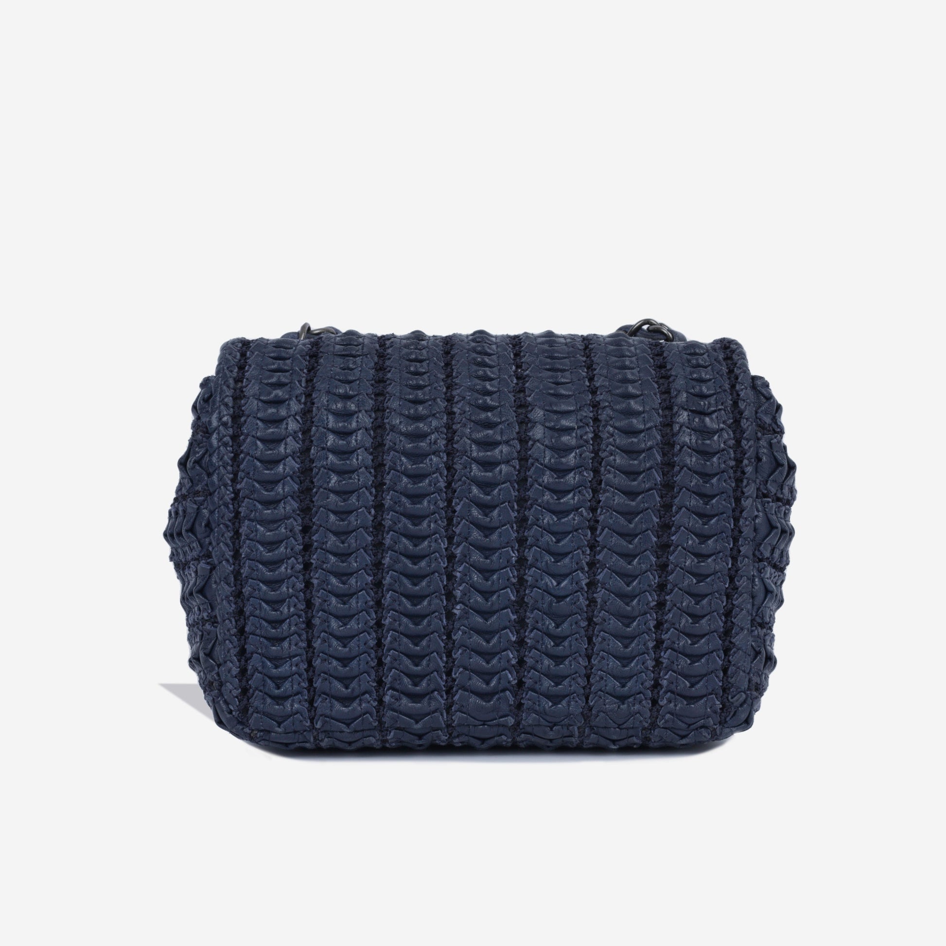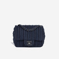 From the 2016 Cruise collection by Karl Lagerfeld, this Chanel mini flap is crafted from crochet navy lambskin and finished with ruthenium hardware. If you are looking for a classic flap bag with a twist, this is it.