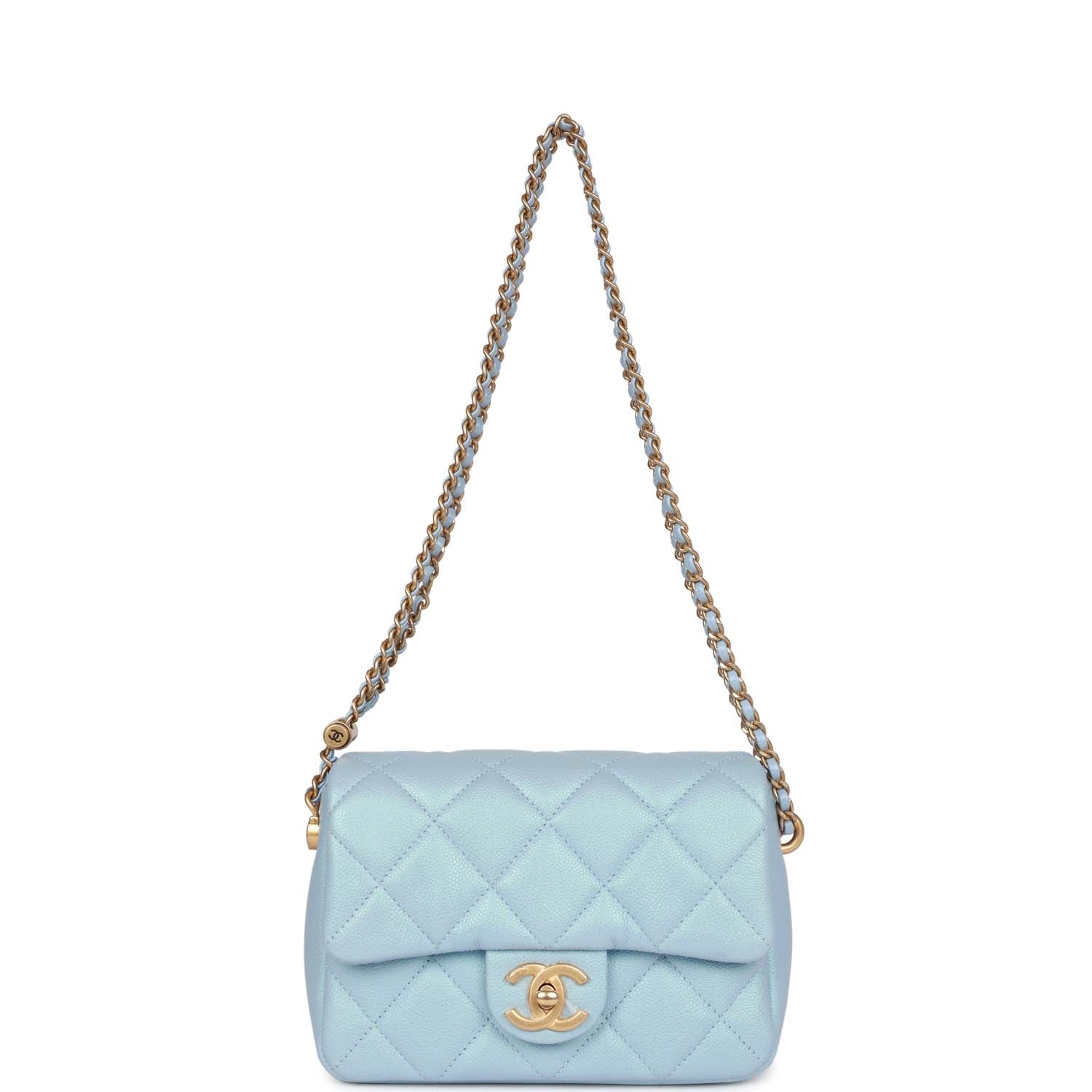 Chanel My Perfect Mini Flap Bag Blue Iridescent Caviar Antique Gold Hardware