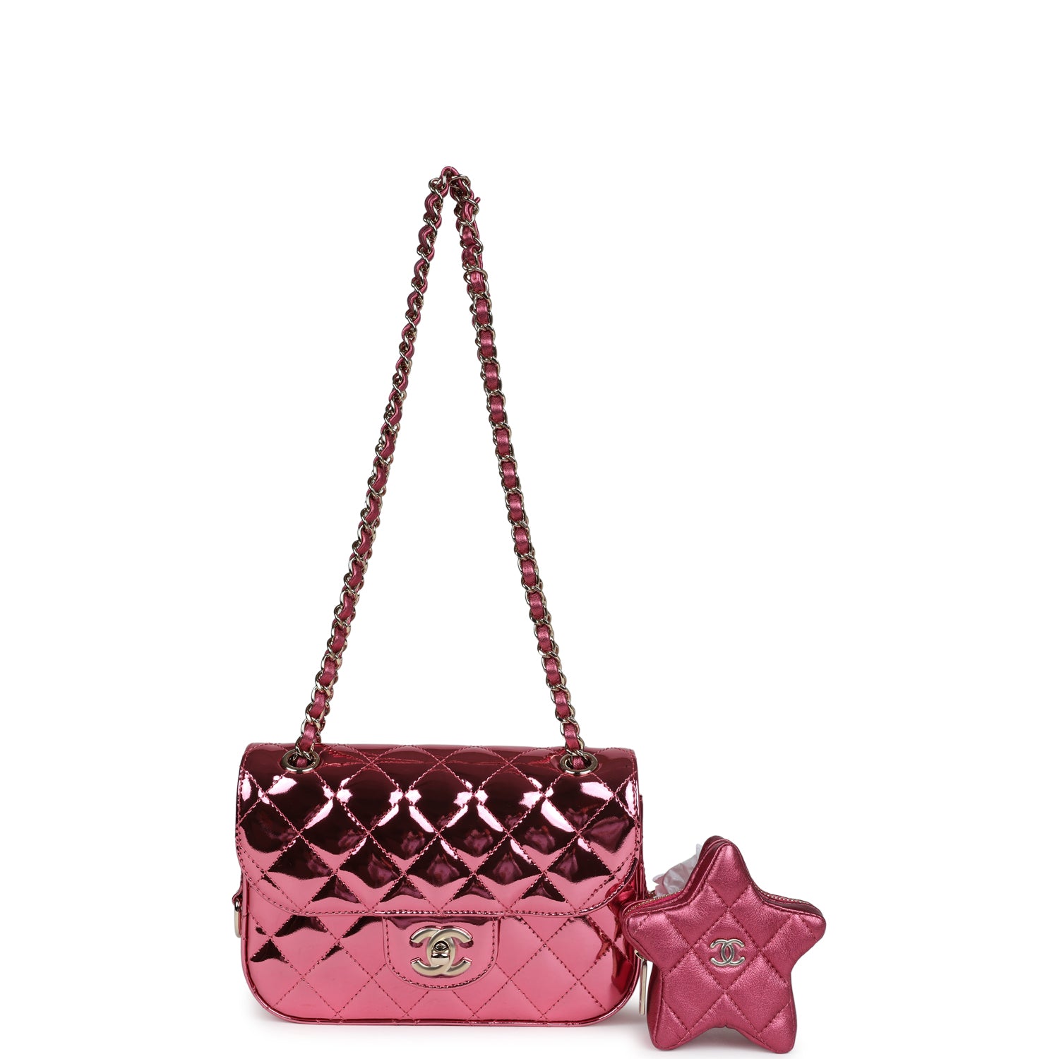 Chanel Mini Flap Bag & Star Coin Purse Pink Mirror Calfskin/Metallic Calfskin Light Gold Hardware