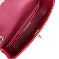 The interior is lined in Pink Metallic calfskin leather, one slip pocket with Chanel logo and one zippered pocket.