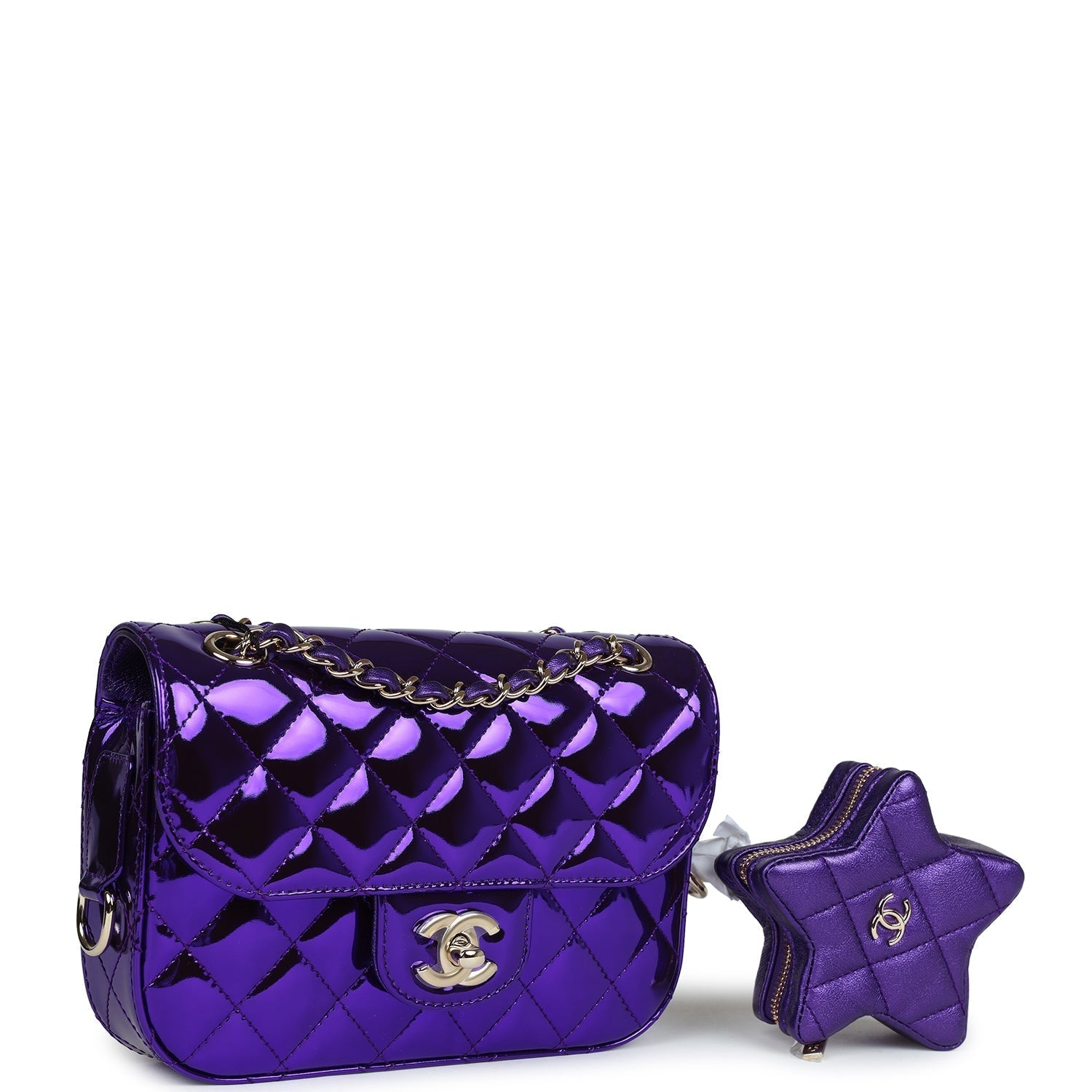 Chanel Mini Flap Bag & Star Coin Purse Purple Mirror Calfskin/Metallic Calfskin Light Gold Hardware