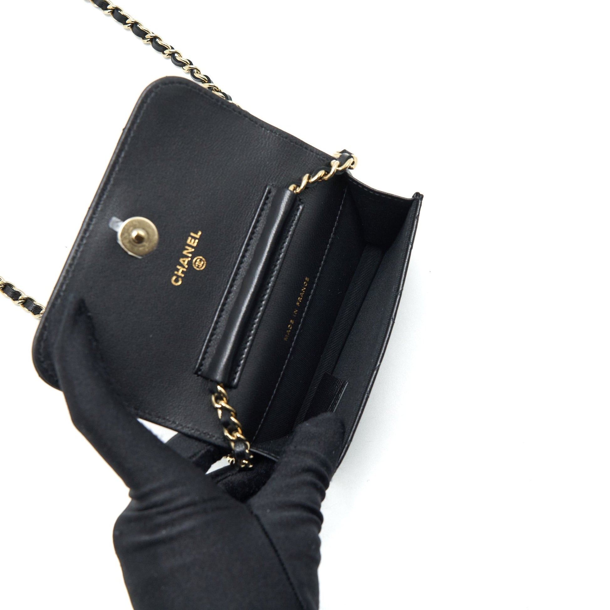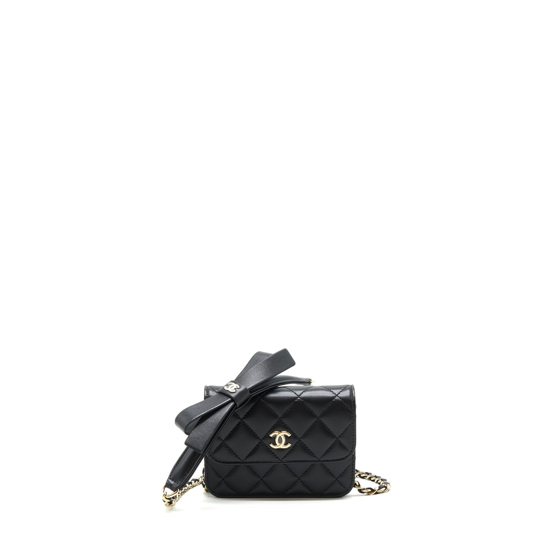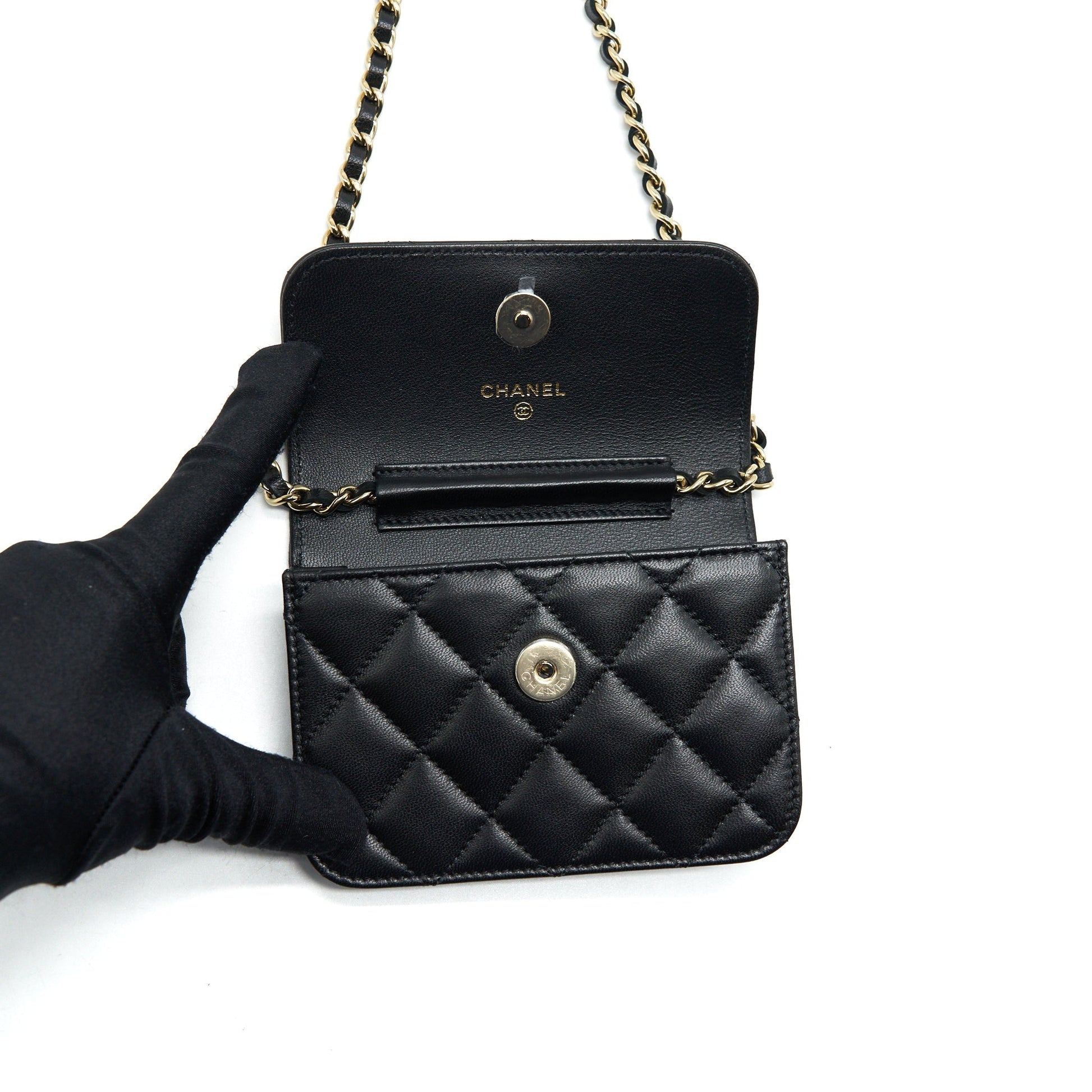 Chanel Mini flap card holder Ribbon Chain Lambskin Black LGHW