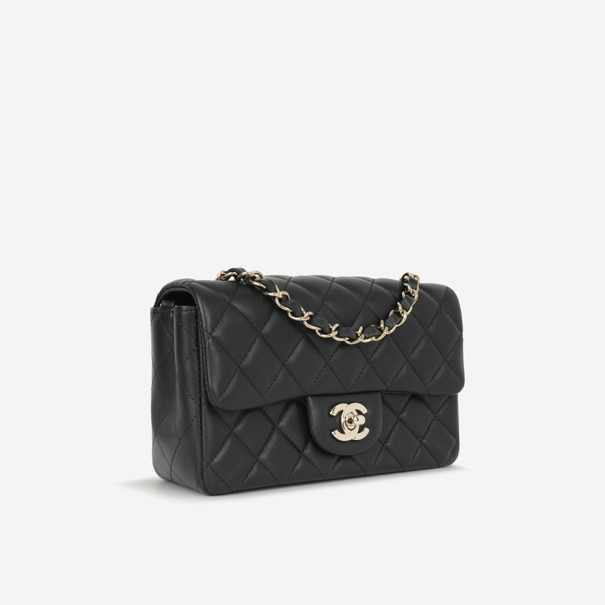 Chanel Mini Flap Rectangular Black Lambskin Champagne Gold Hardware