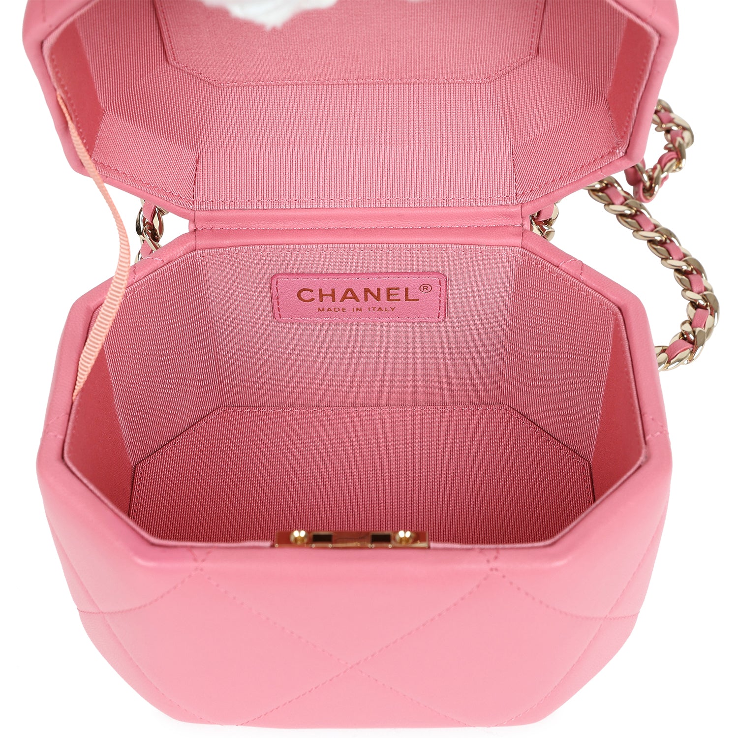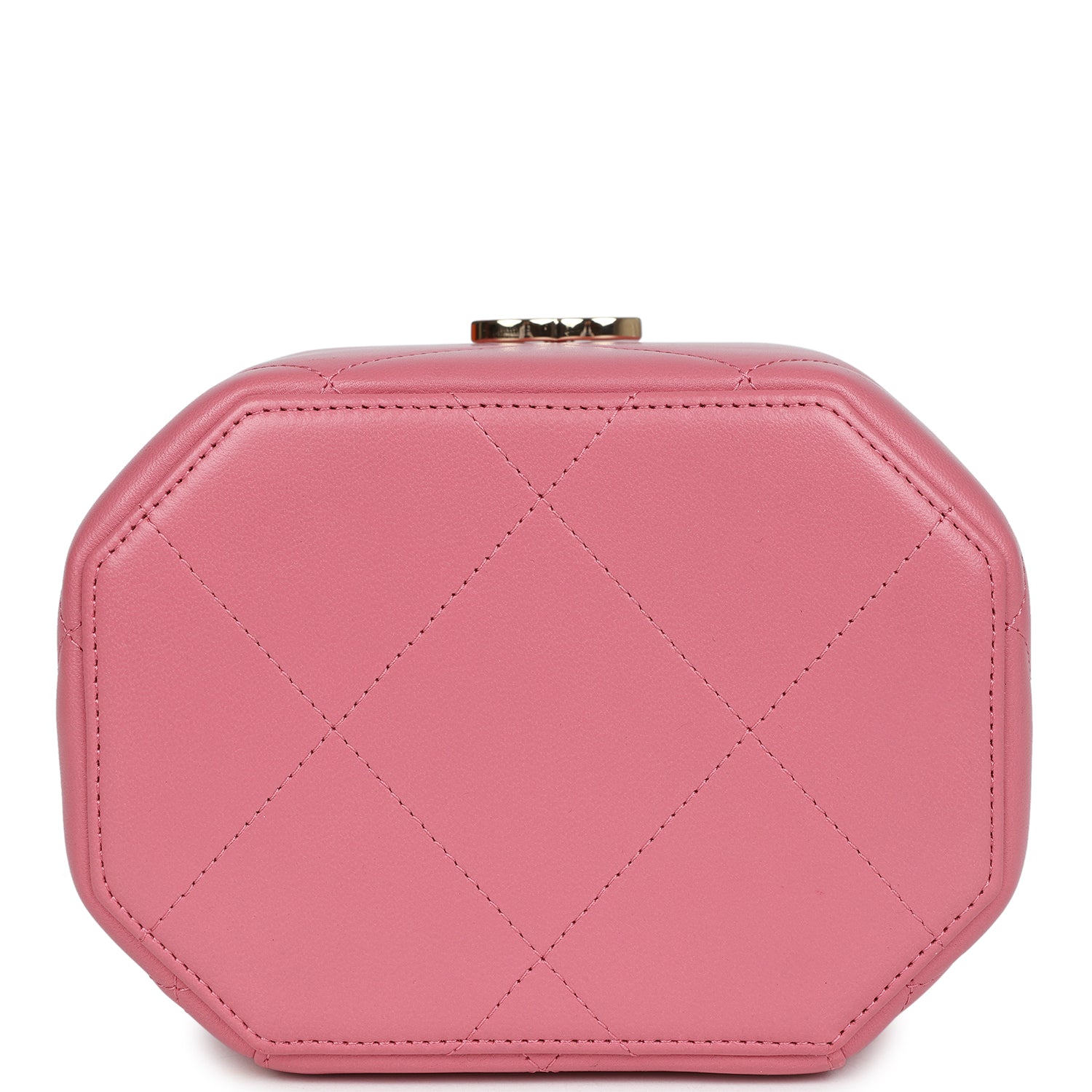 Chanel Mini Hexagon Top Handle Vanity Case Dark Pink Lambskin Gold Hardware