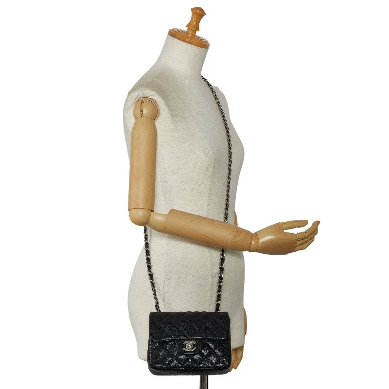 Chanel Mini Mattress Chain houlder Bag Black Silver Caviar S Chanel