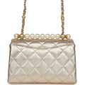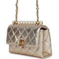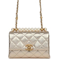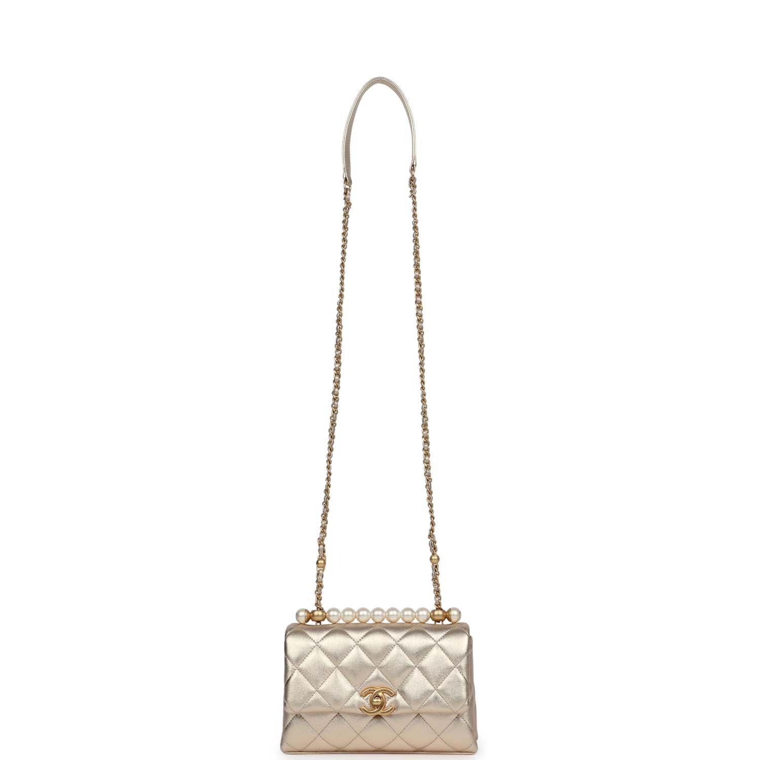 Chanel Mini Pearl Top Handle Flap Bag Metallic Gold Lambskin Brushed Gold Hardware