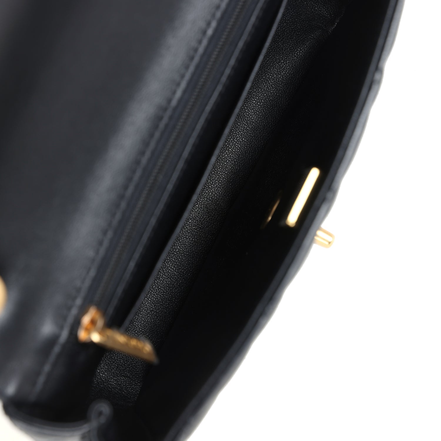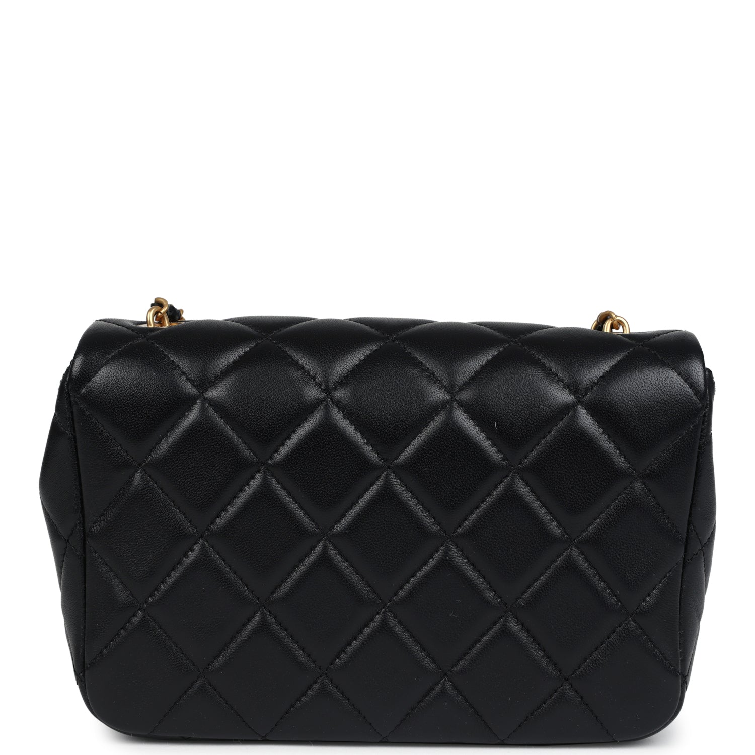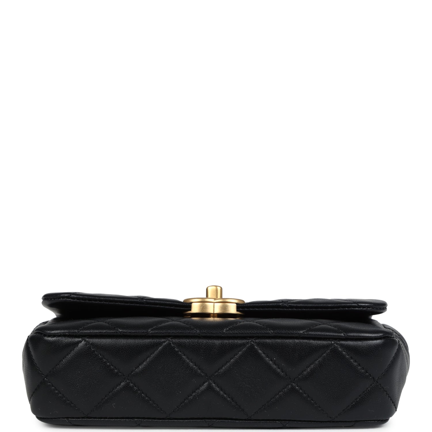 Chanel Mini Pearly Chain Flap Bag Black Lambskin Brushed Gold Hardware