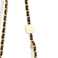 This Chanel Mini Pearly Chain Flap Bag is in black lambskin leather with brushed gold hardware, featuring signature diamond quilted leather, front flap with CC turnlock closure and a interwoven brushed gold chain link and leather and faux pearl shoulder strap with two CC medallion charms.
