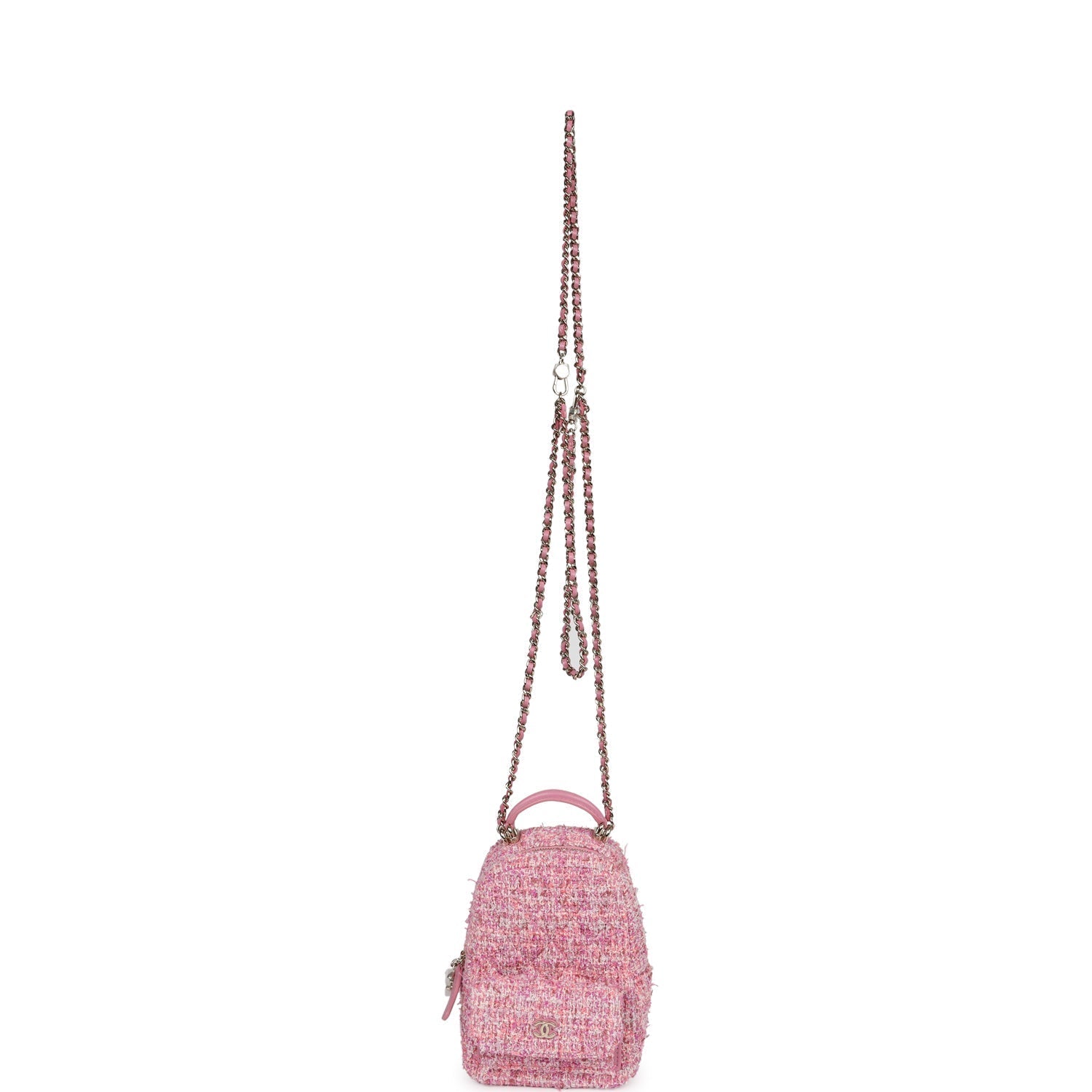 Chanel Mini Phone Holder Backpack with Chain Pink Multicolor Tweed Light Gold Hardware