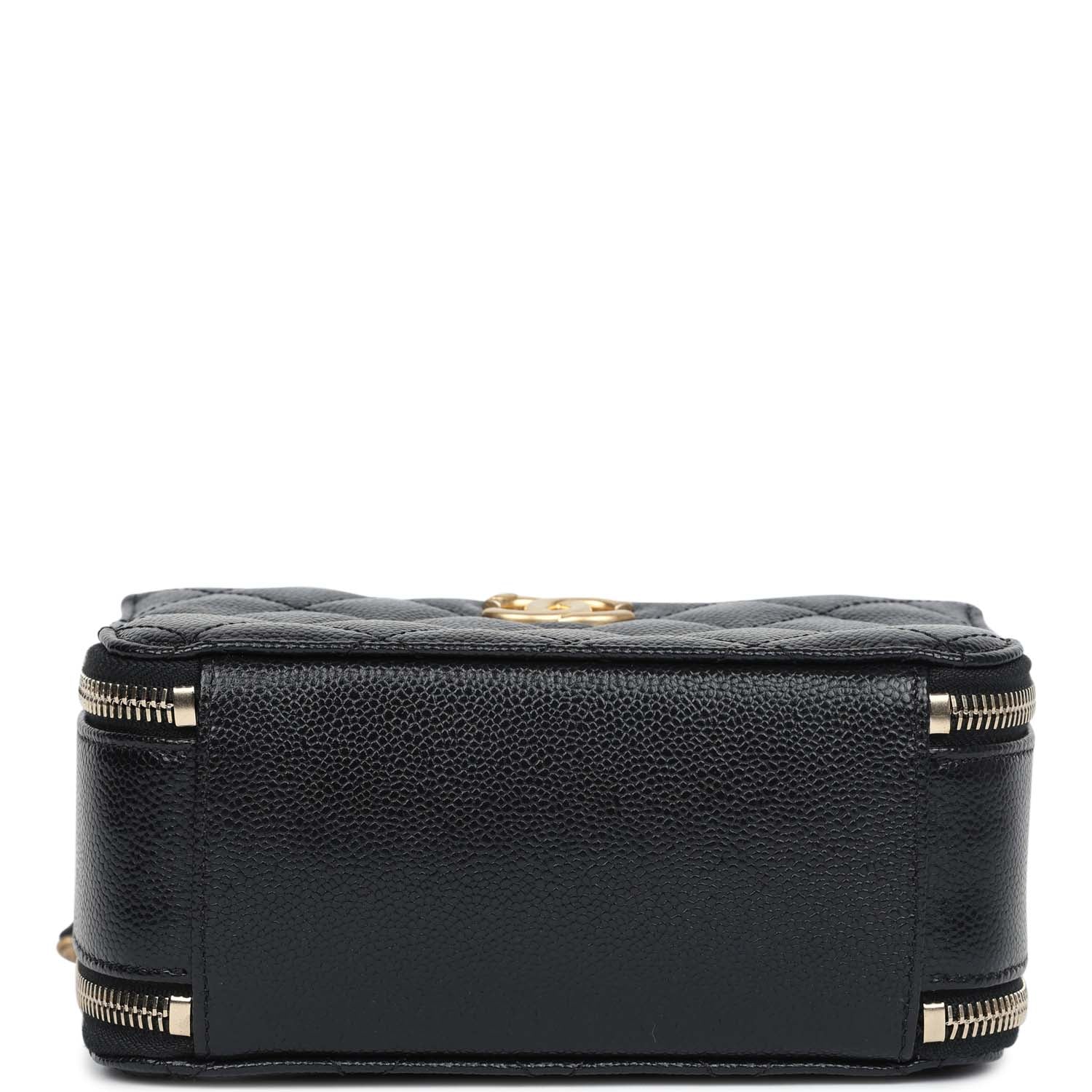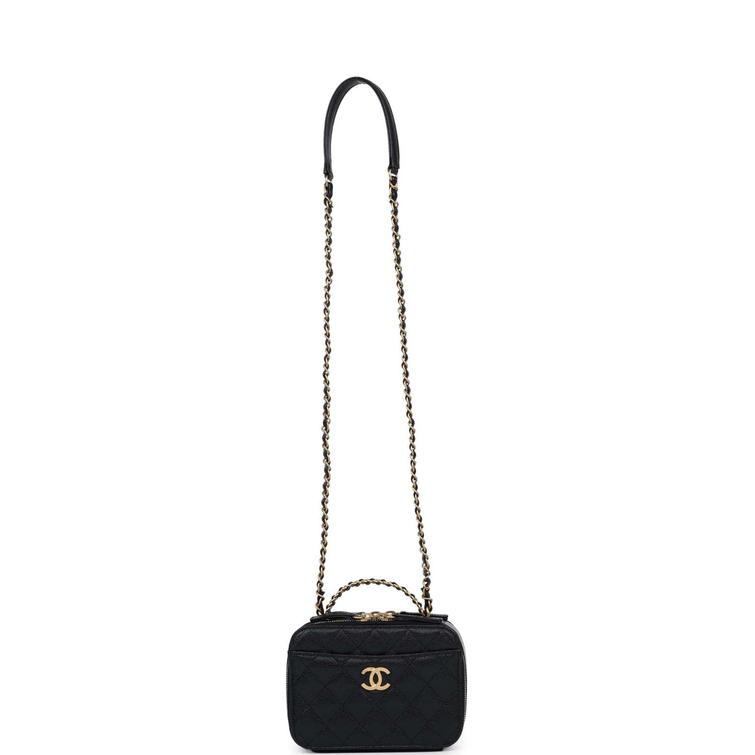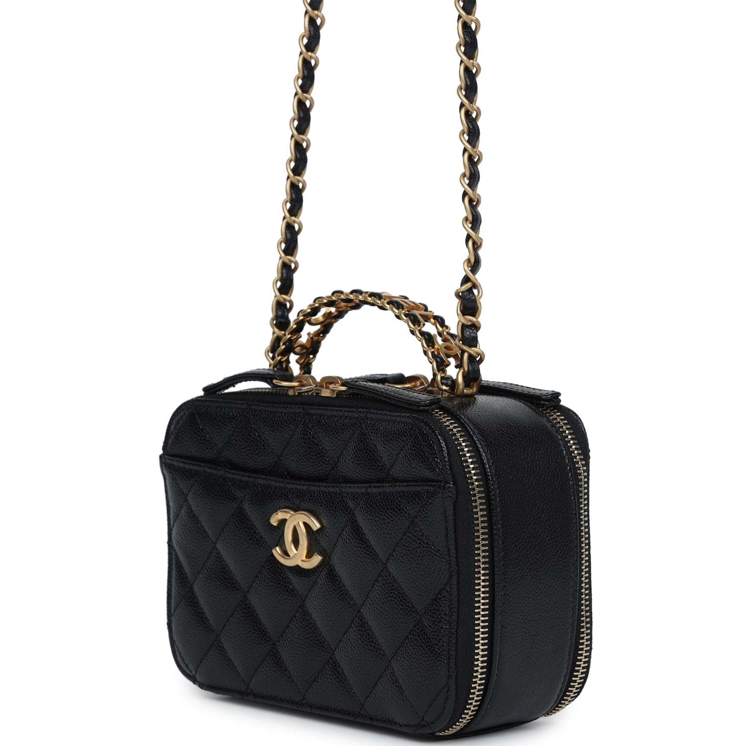 Chanel Mini Pick Me Up Top Handle Vanity Case Black Caviar Brushed Gold Hardware