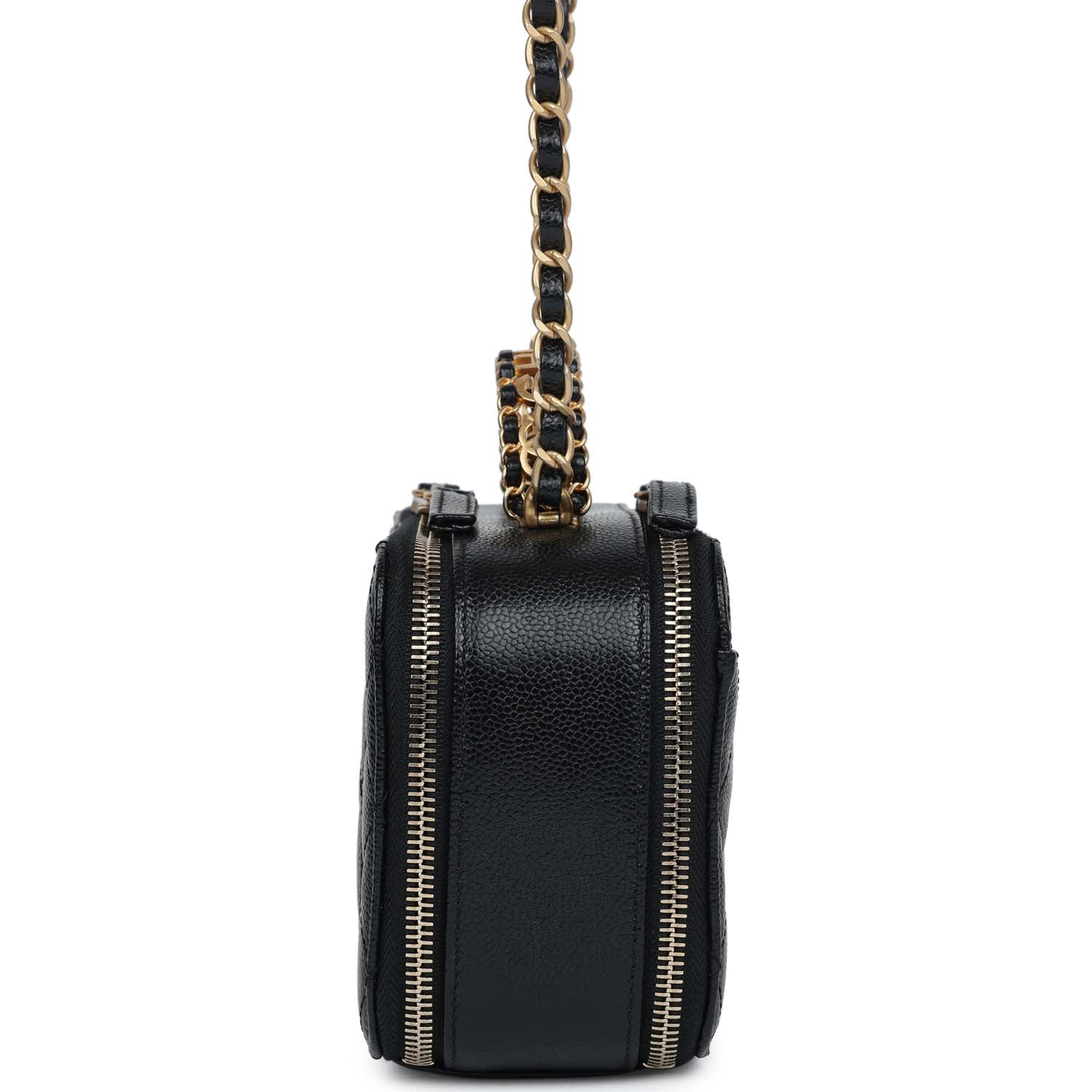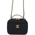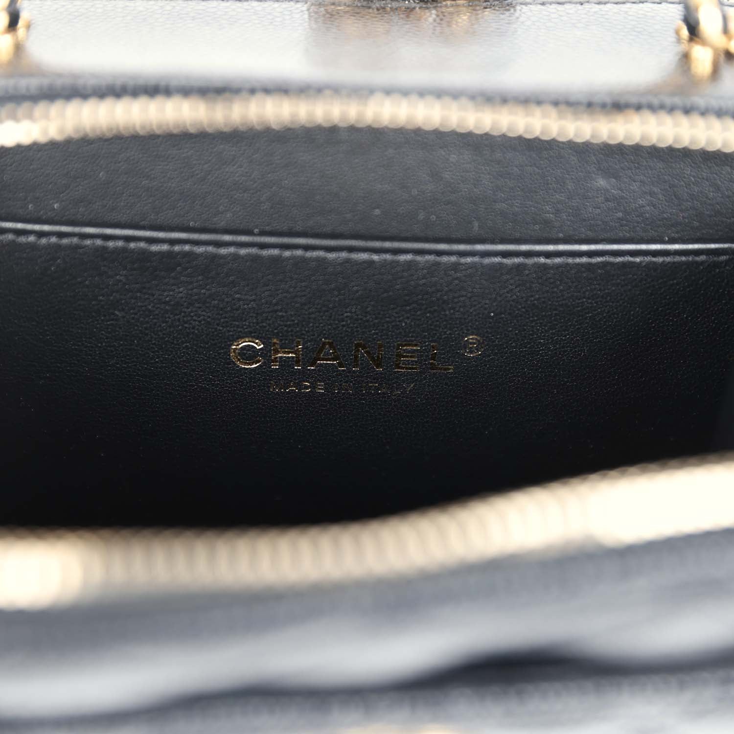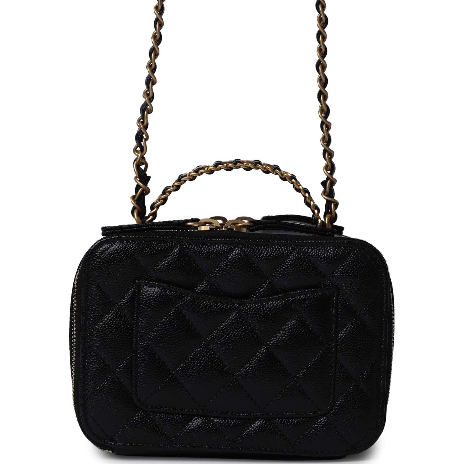 Chanel Mini Pick Me Up Top Handle Vanity Case Black Caviar Brushed Gold Hardware