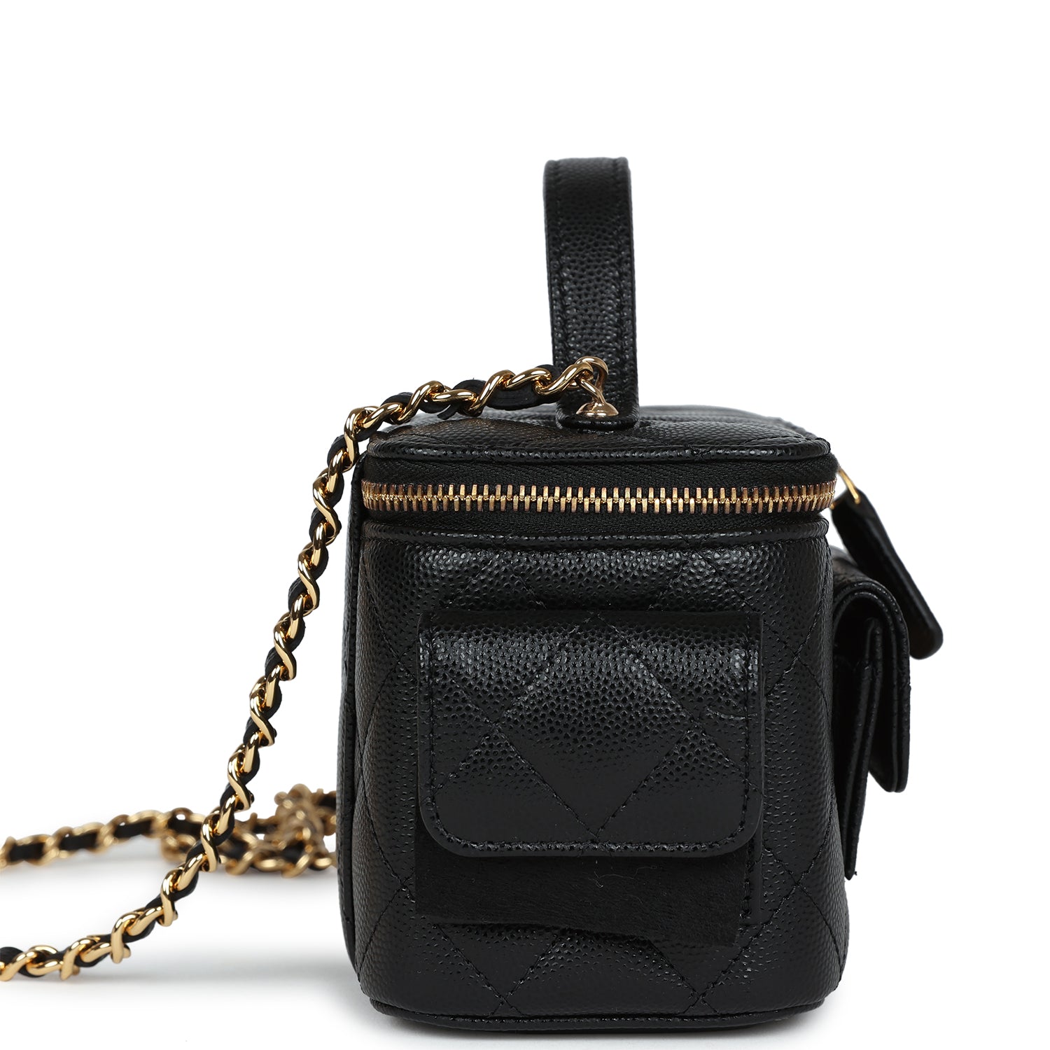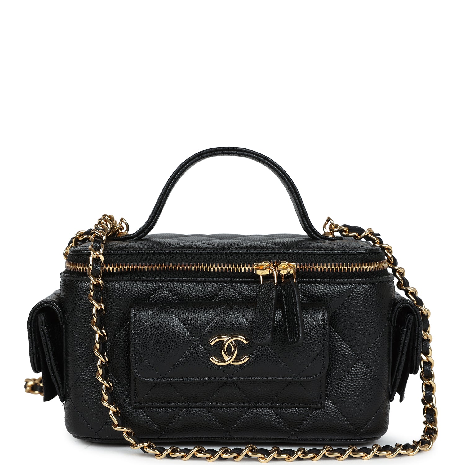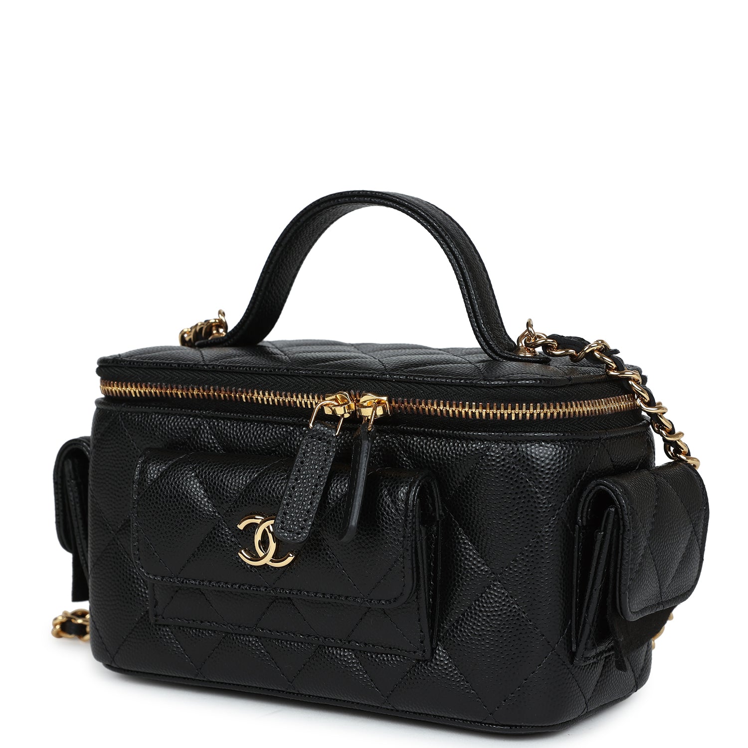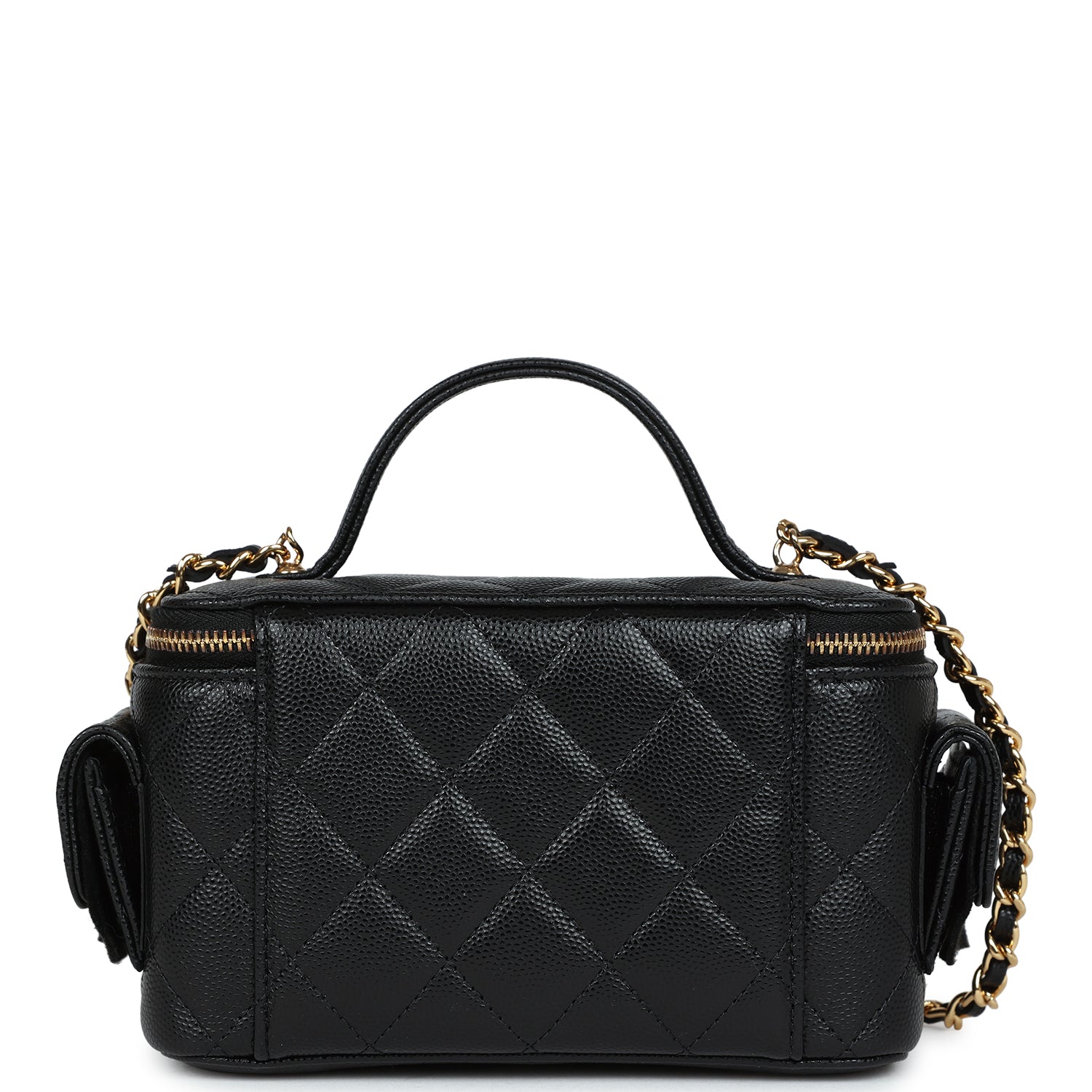 Chanel Mini Pocket Vanity Top Handle Case Black Caviar Gold Hardware