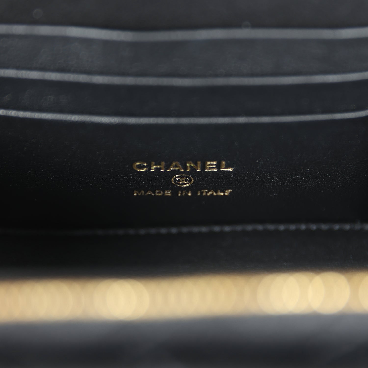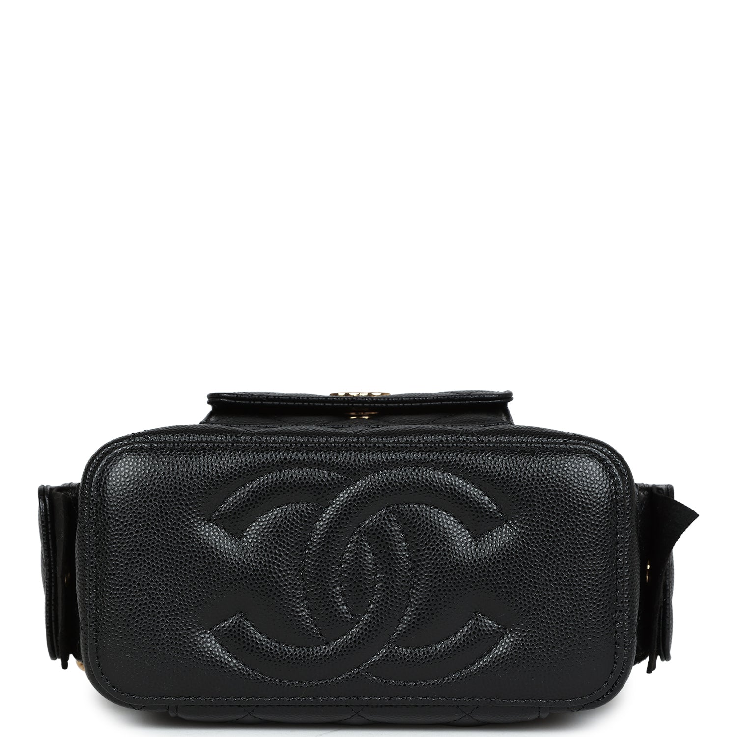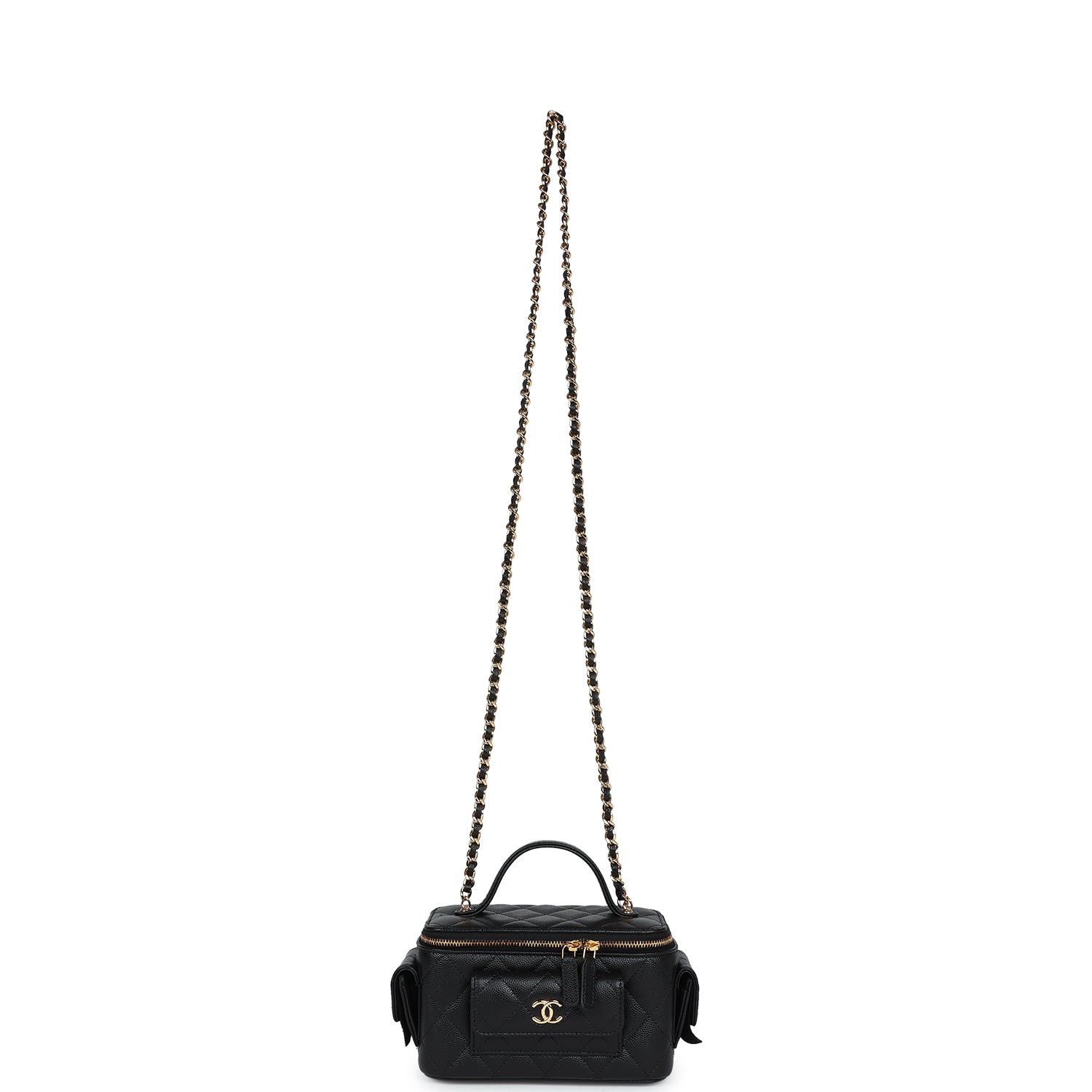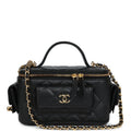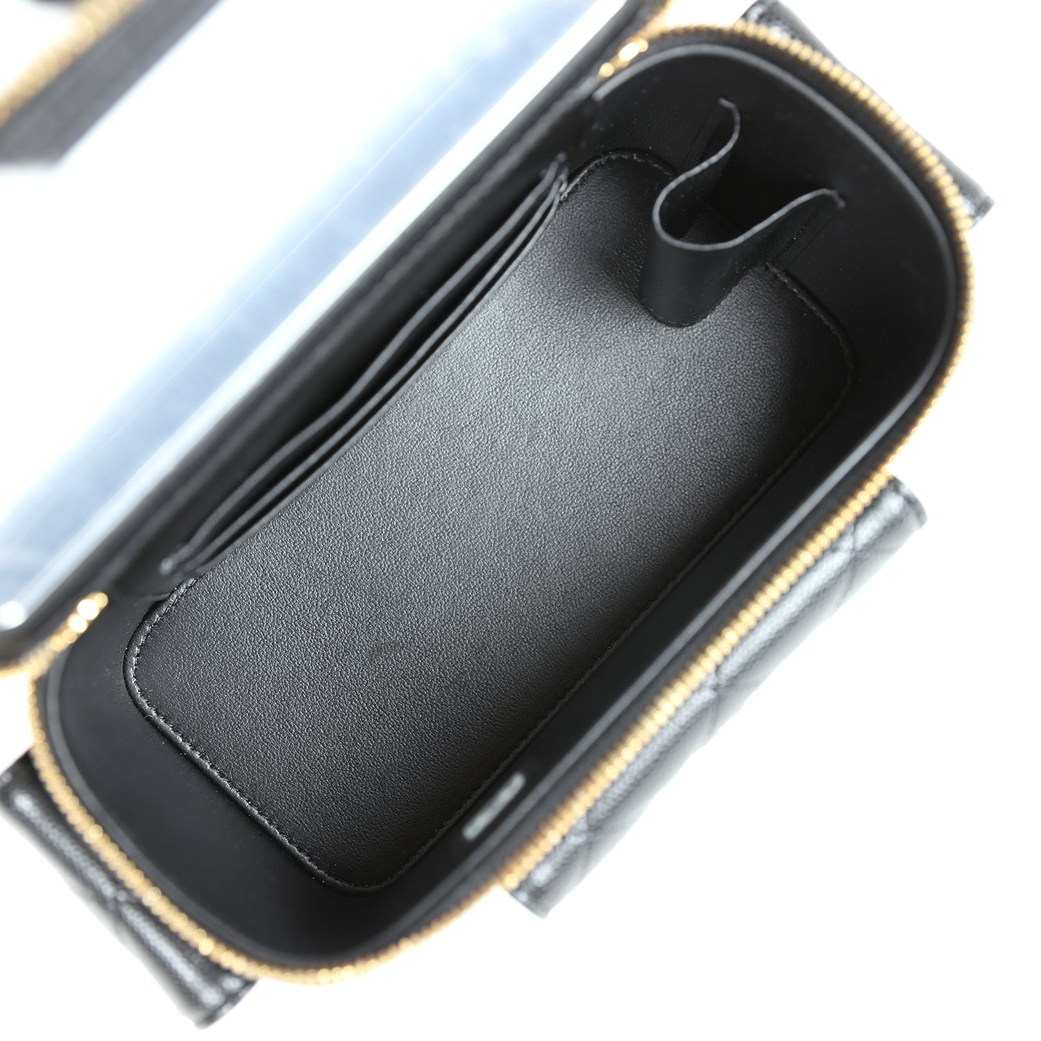 Chanel Mini Pocket Vanity Top Handle Case Black Caviar Gold Hardware
