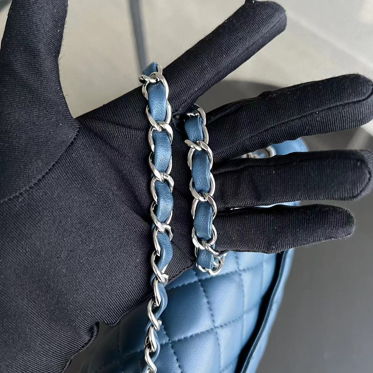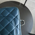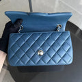 Mini Rectangle Classic Flap 20CM Quilted Lambskin Dark Blue Silver Hardware Series 28
