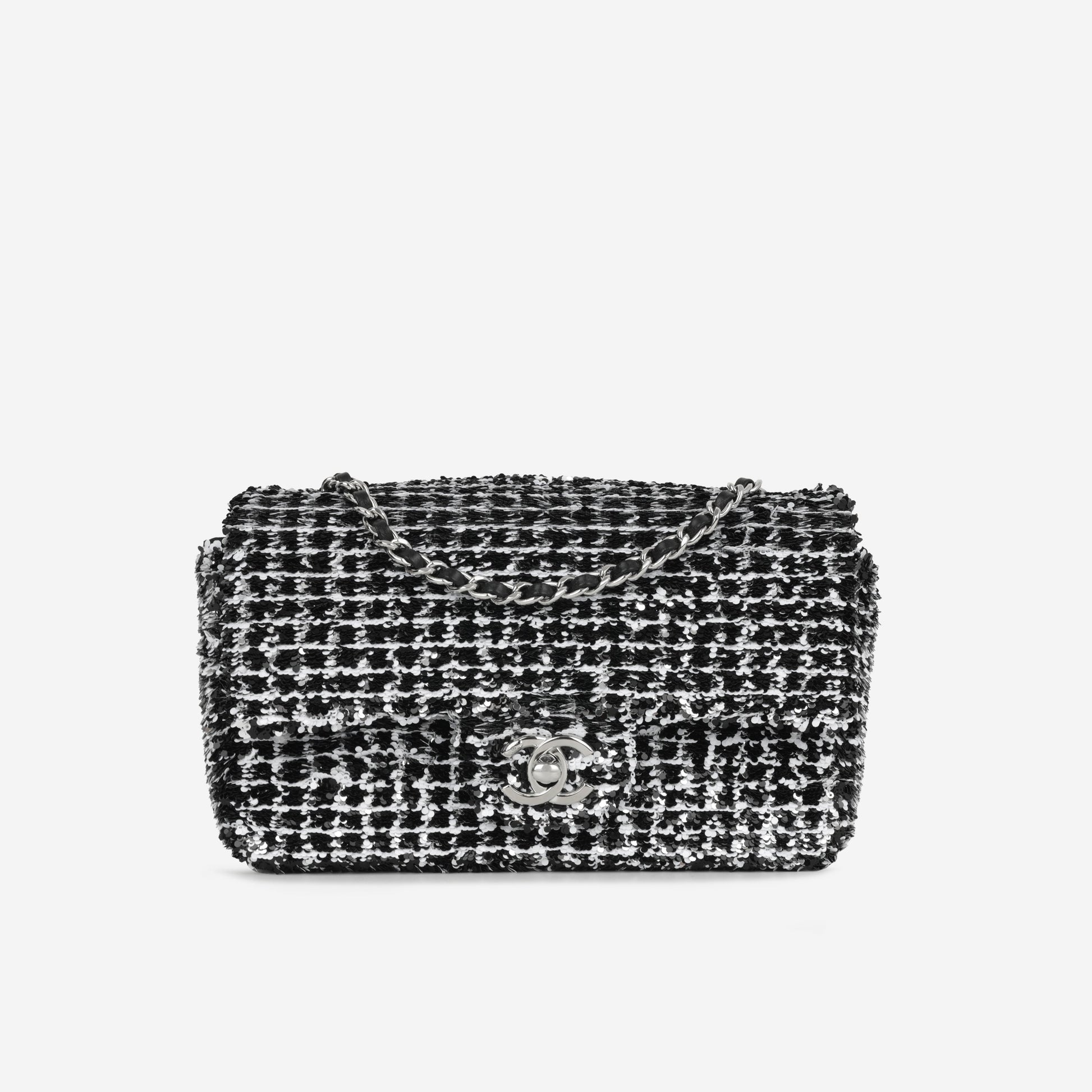 Chanel Mini Rectangular Black / White Sequin Silver Hardware