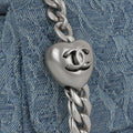 Designed for versatility and style, it includes the iconic CC turn-lock closure and a leather-woven chain strap enhanced with a heart-shaped charm that allows you to adjust the strap length, perfect for styling it crossbody or on the shoulder.