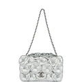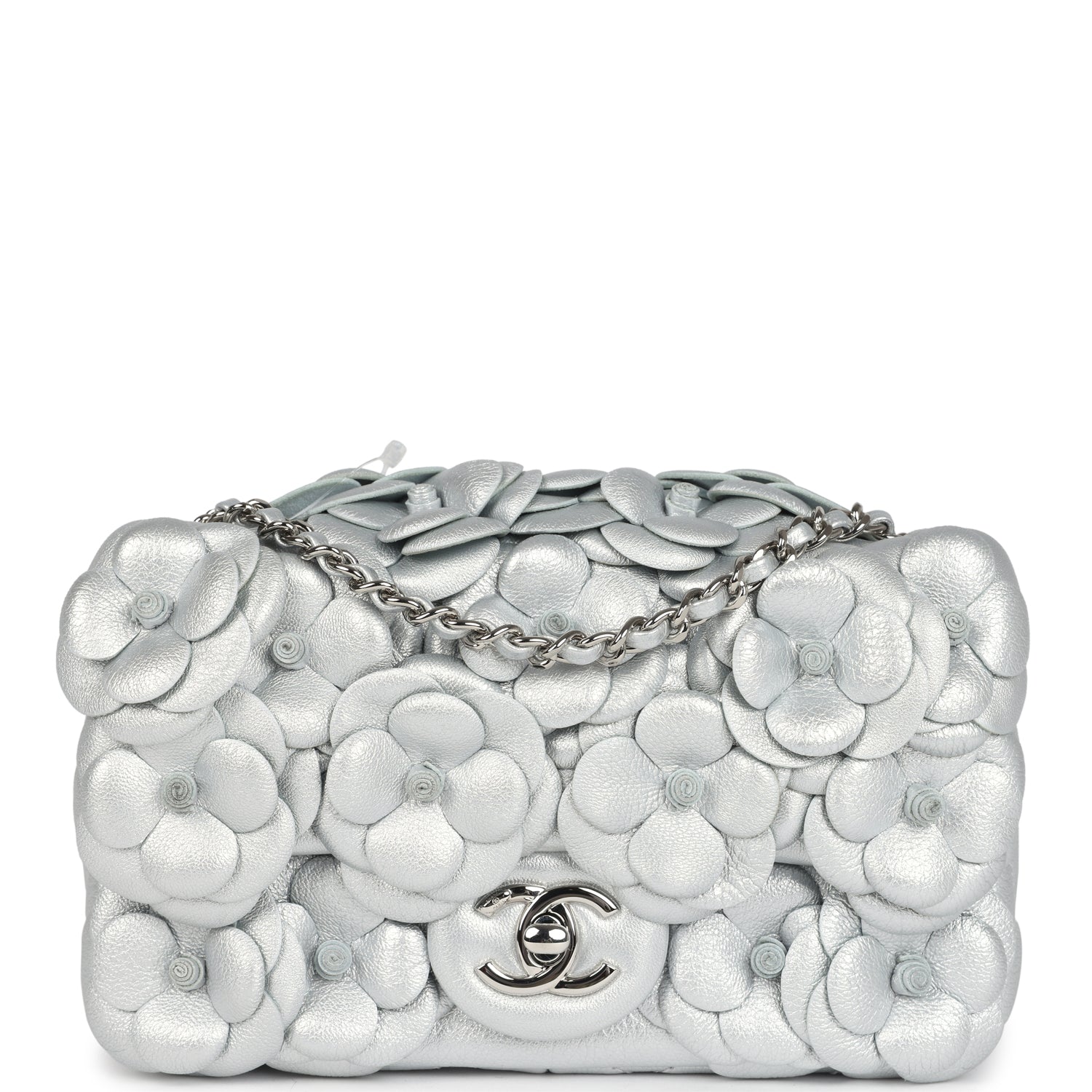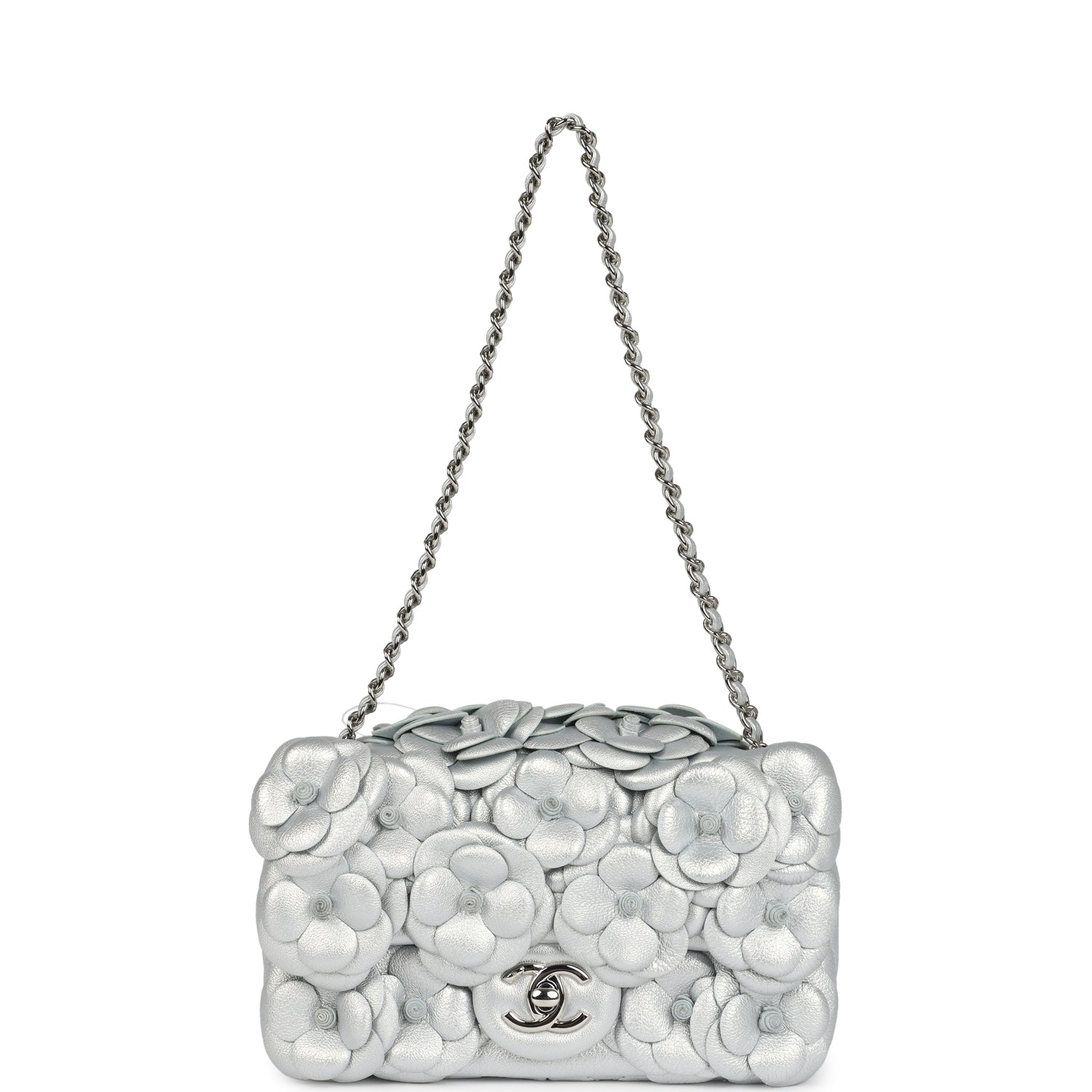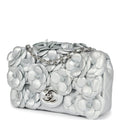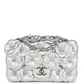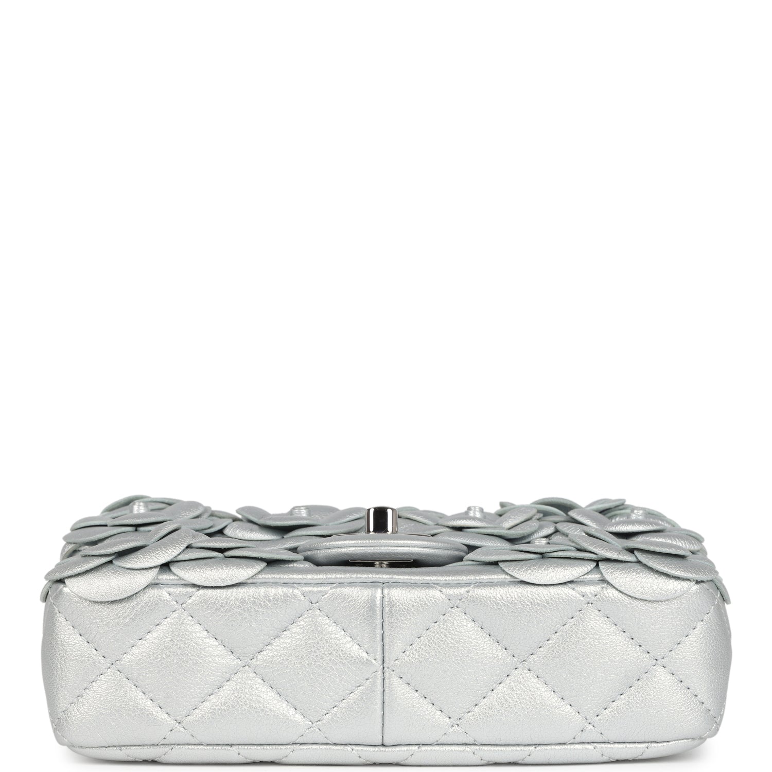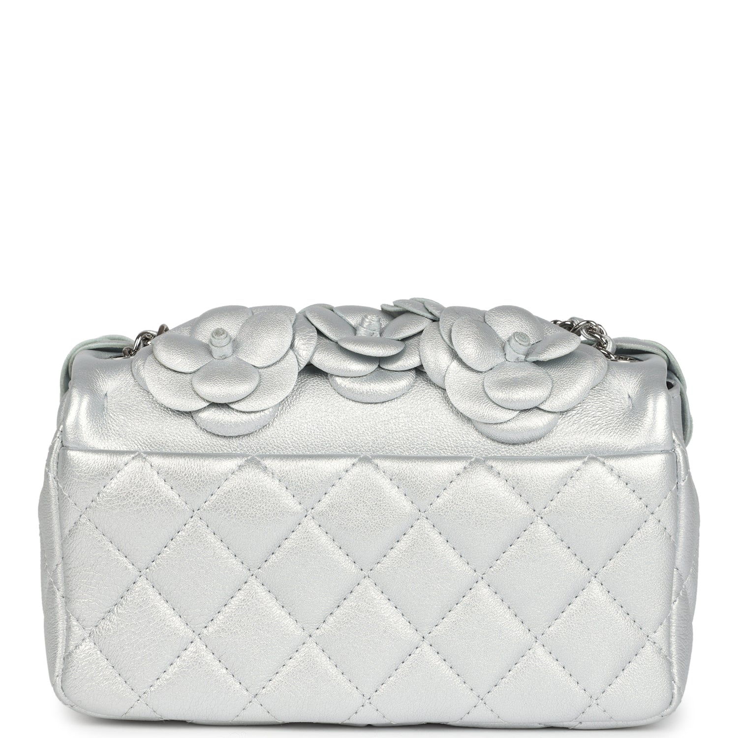 Chanel Mini Rectangular Camellia Flap Bag Silver Lambskin Silver Hardware