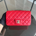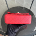 Mini Rectangular Classic Flap 20CM Quilted Lambskin Red Golden Hardware Series 17