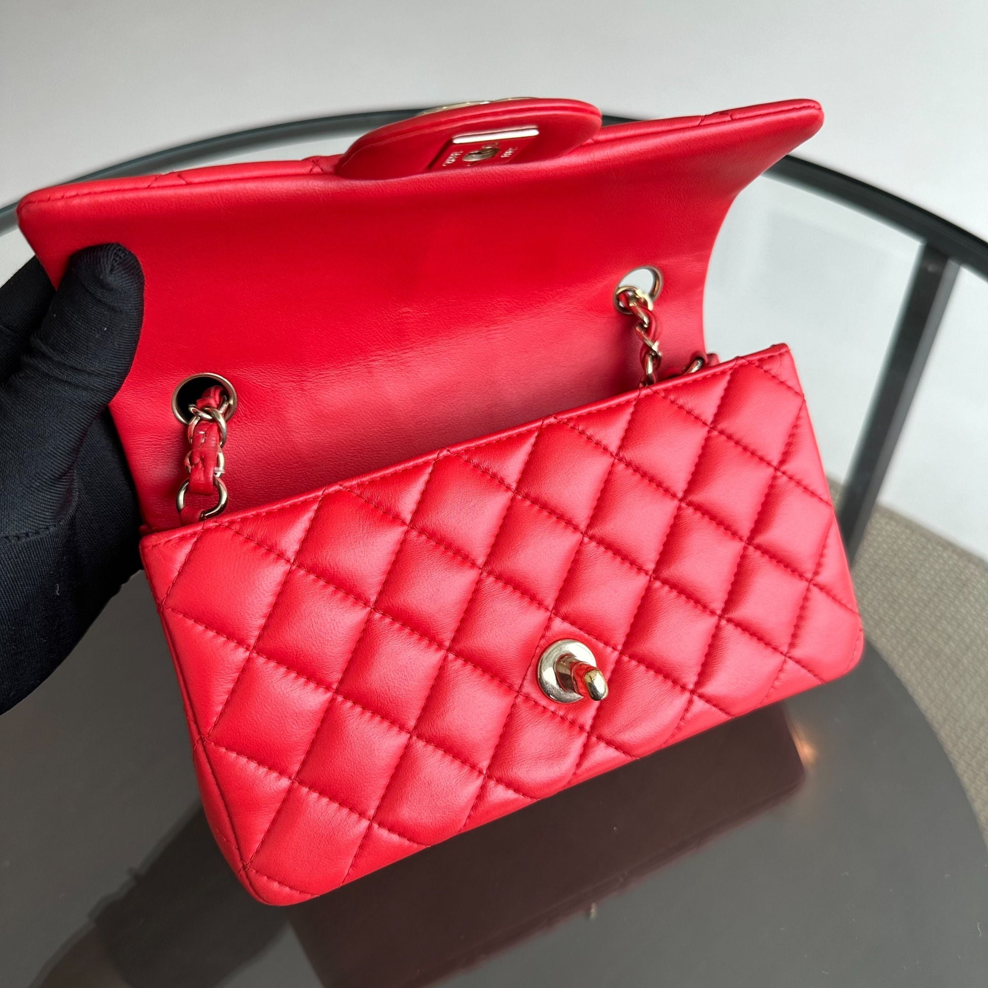 Mini Rectangular Classic Flap Lambskin Red GHW No 23