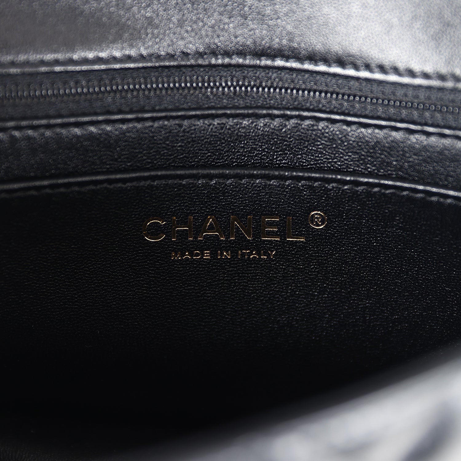 Chanel Mini Rectangular Crystal Top Handle Flap Bag Black Lambskin Light Gold Hardware