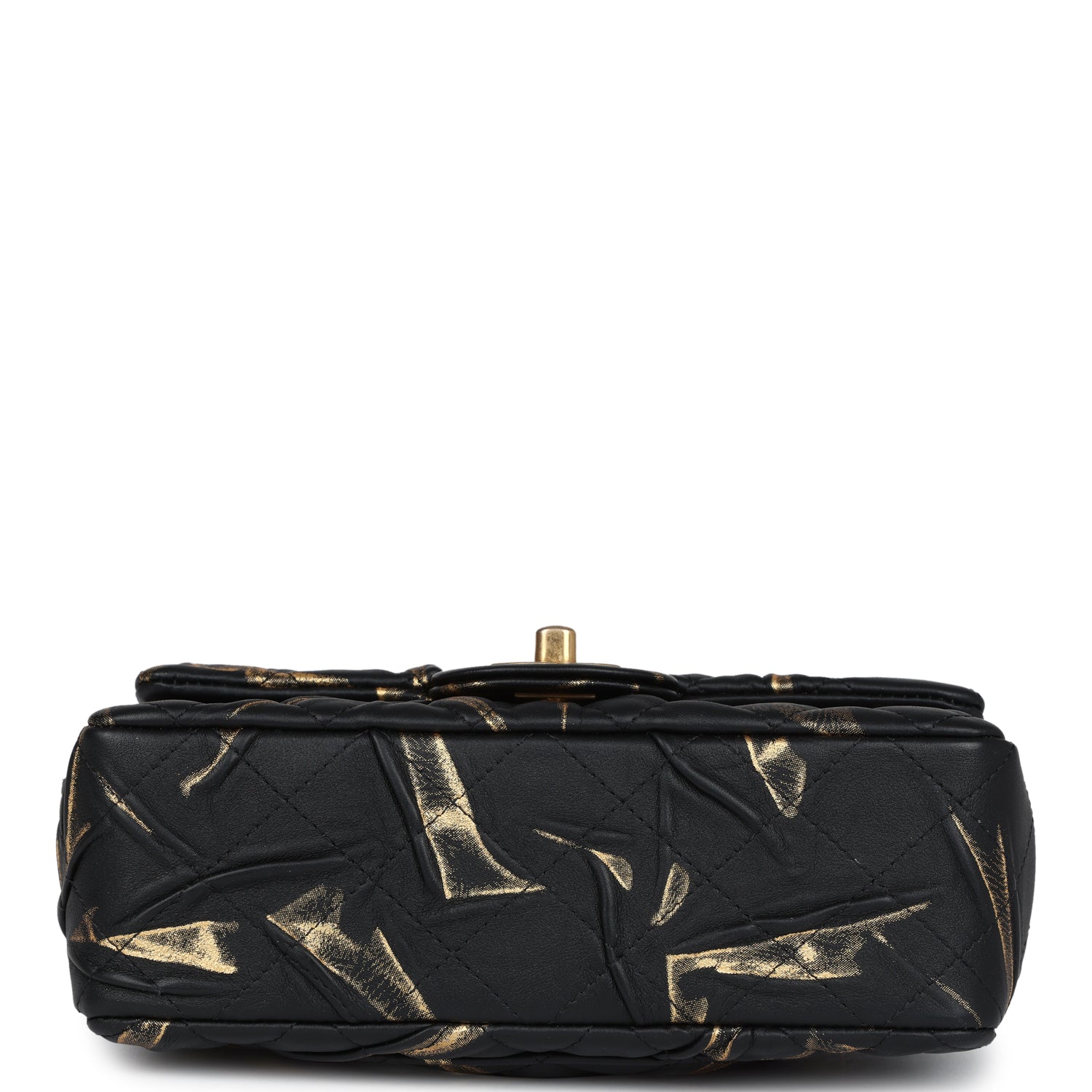 Chanel Mini Rectangular Flap Black and Gold Aged Calfskin Antique Gold Hardware