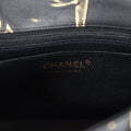 The interior is lined in black leather and features a zipper pocket with Chanel pull and an open pocket below.