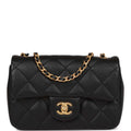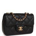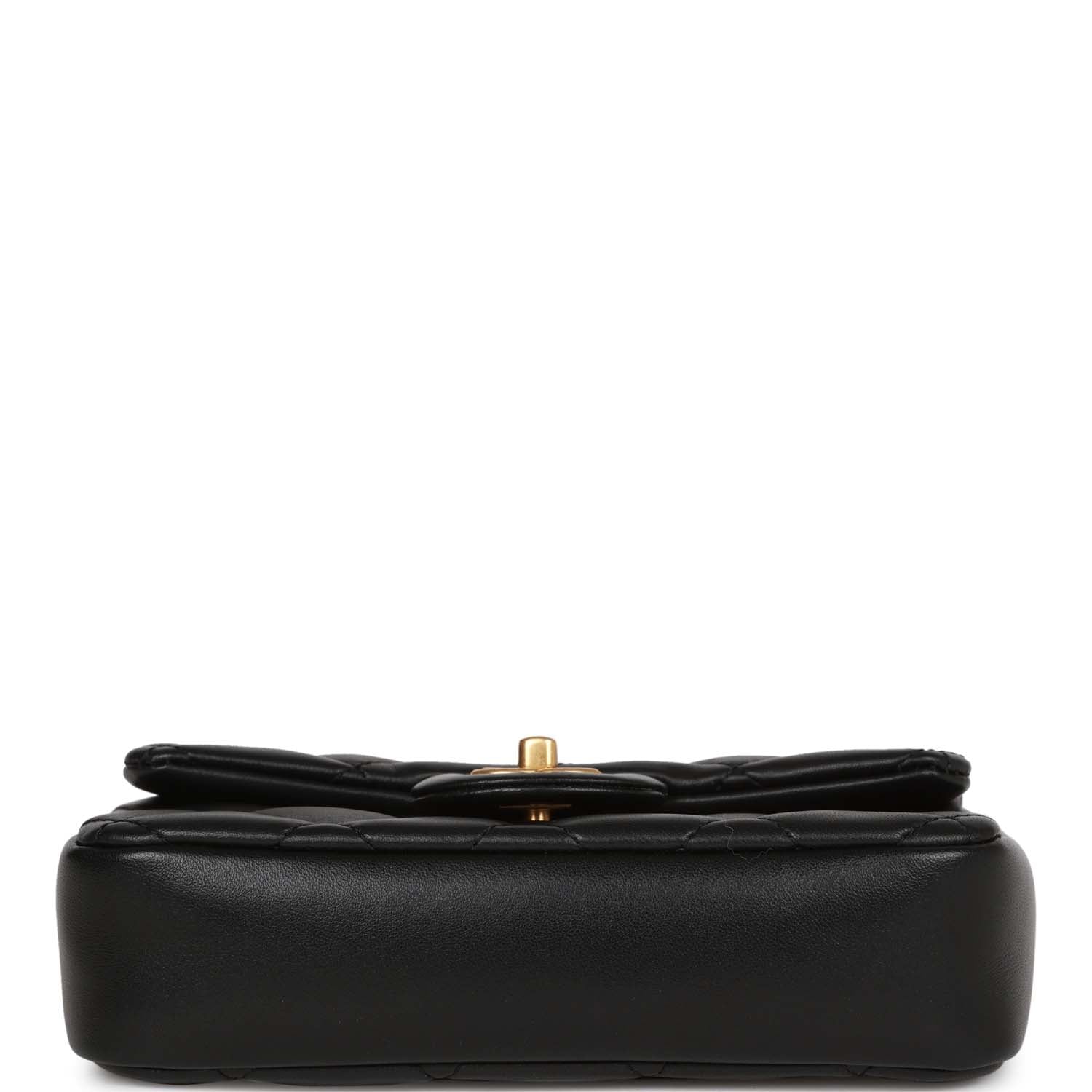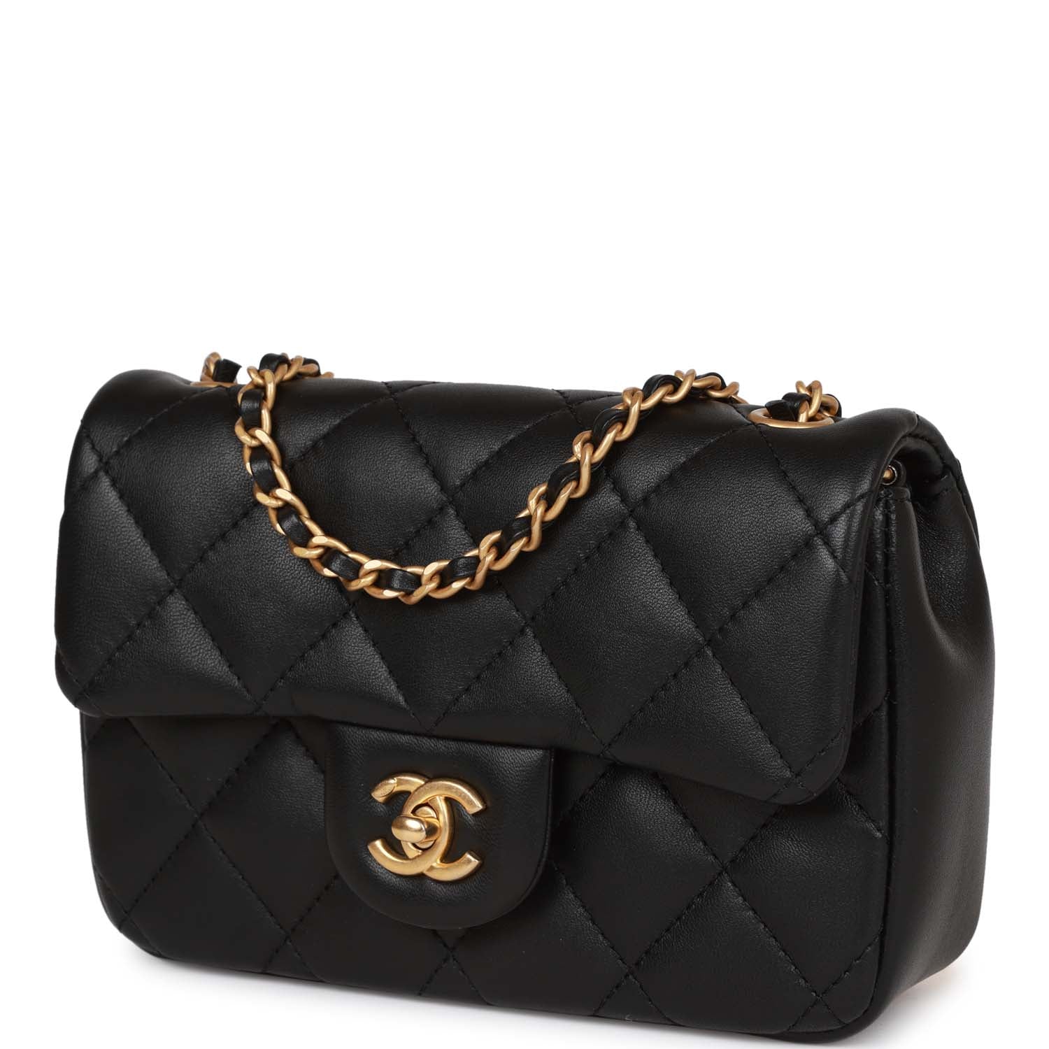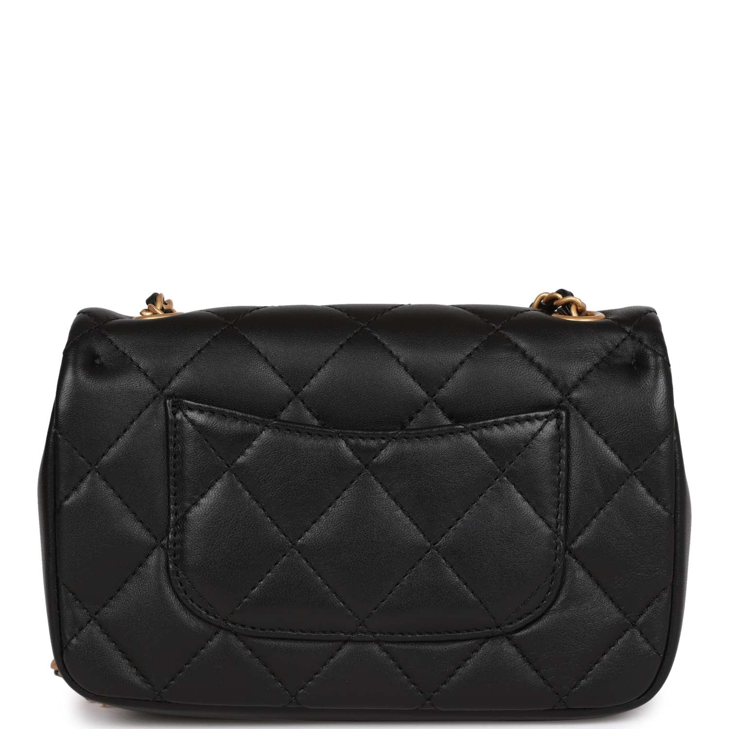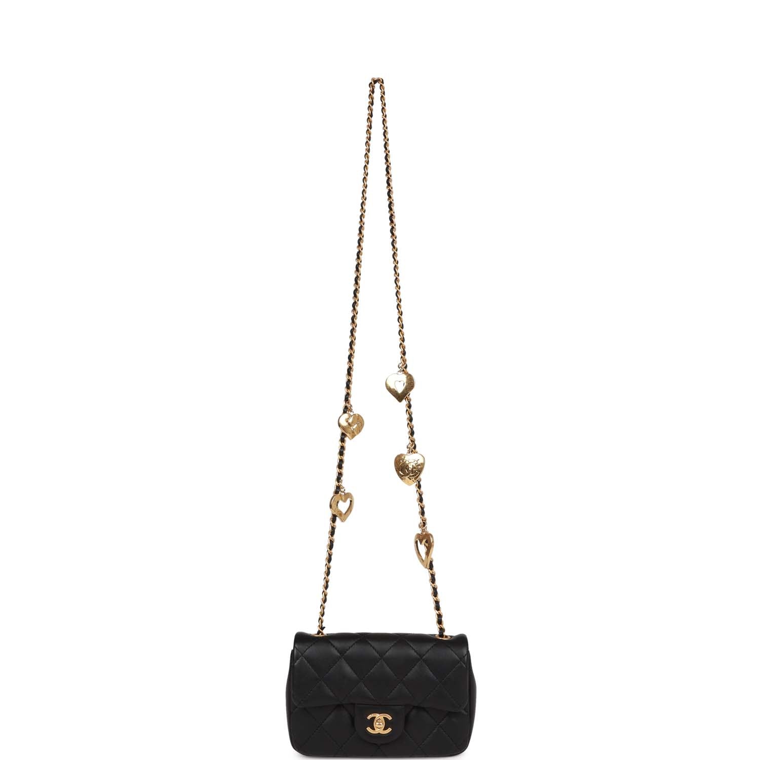 Chanel Mini Rectangular Heart Flap Bag Black Lambskin Aged Gold Hardware