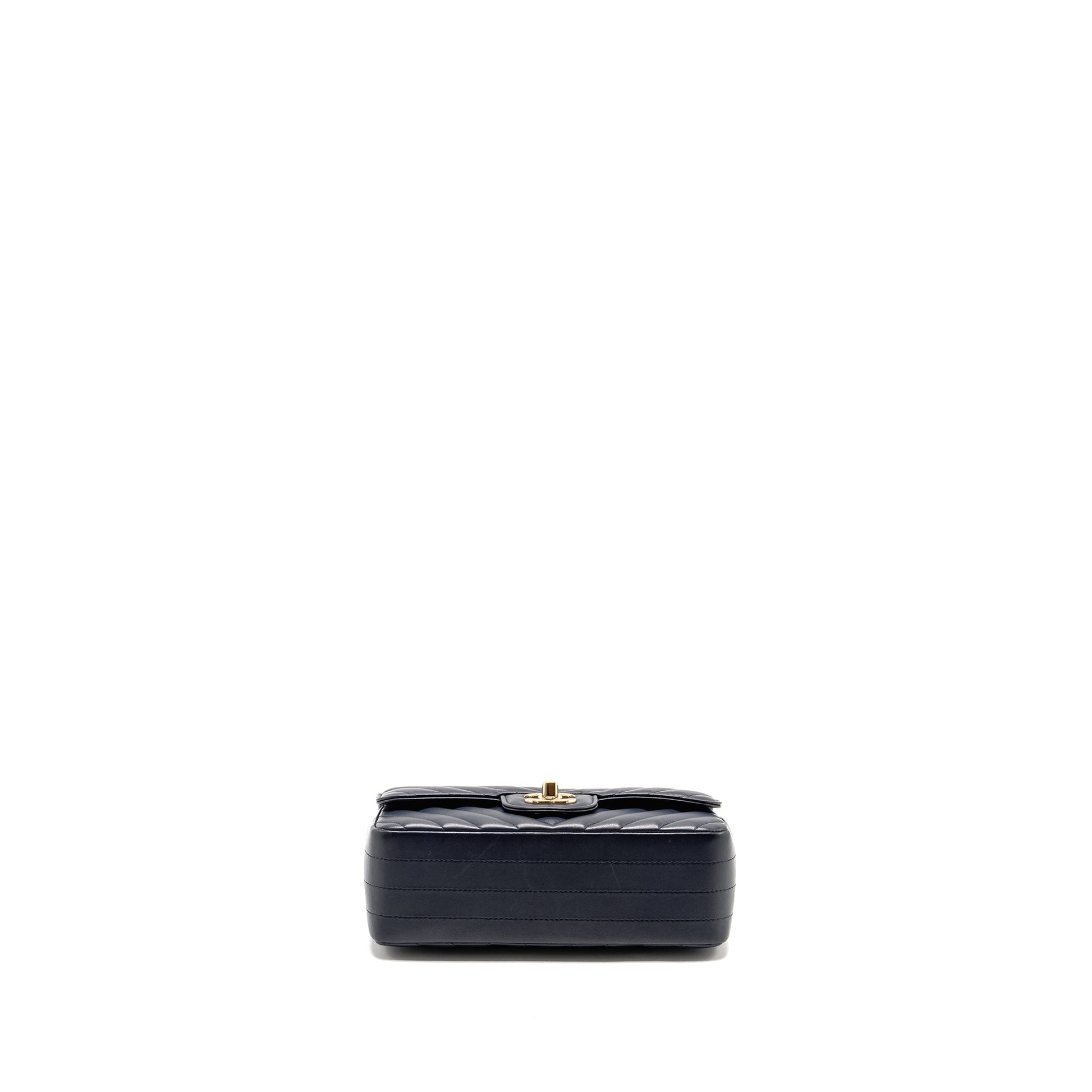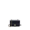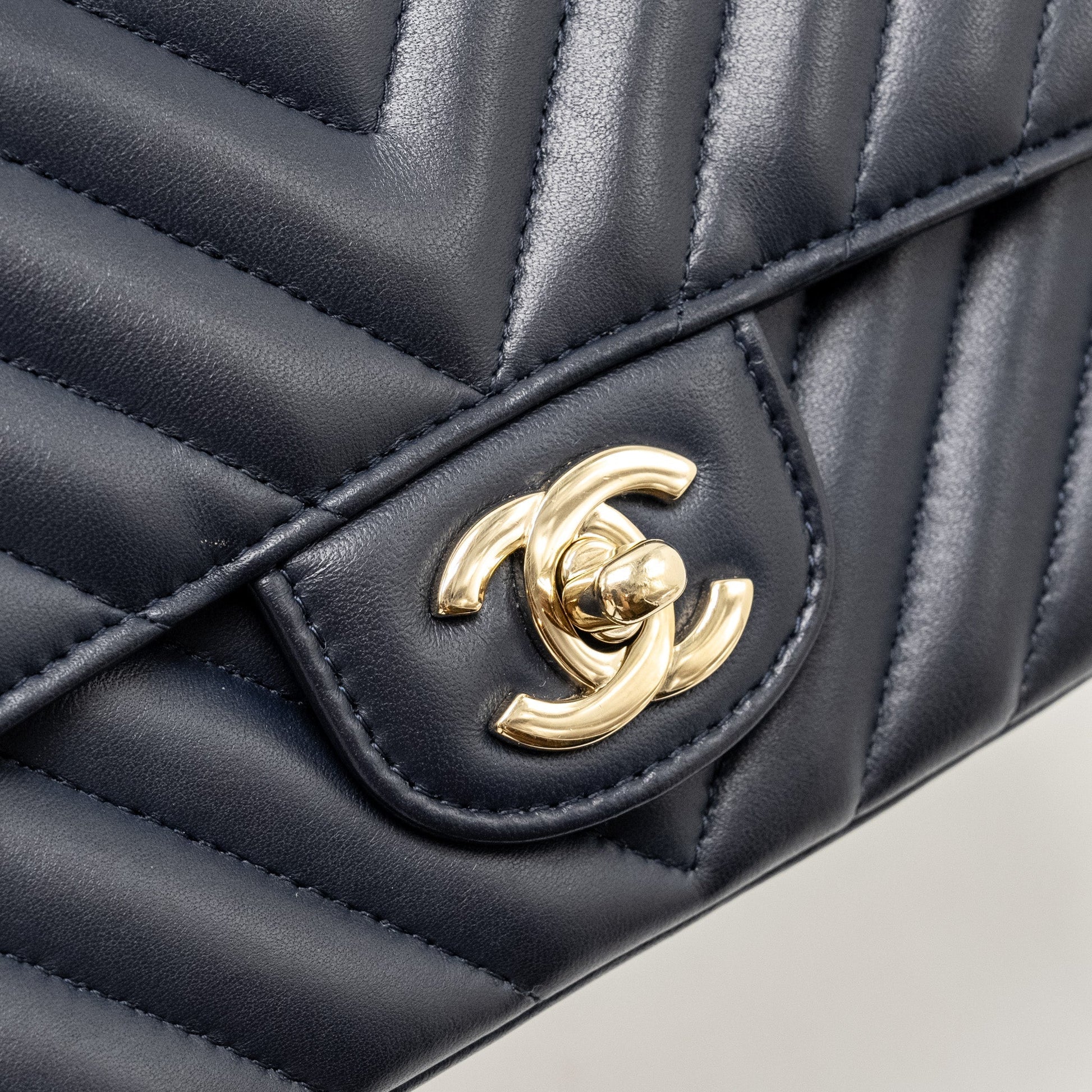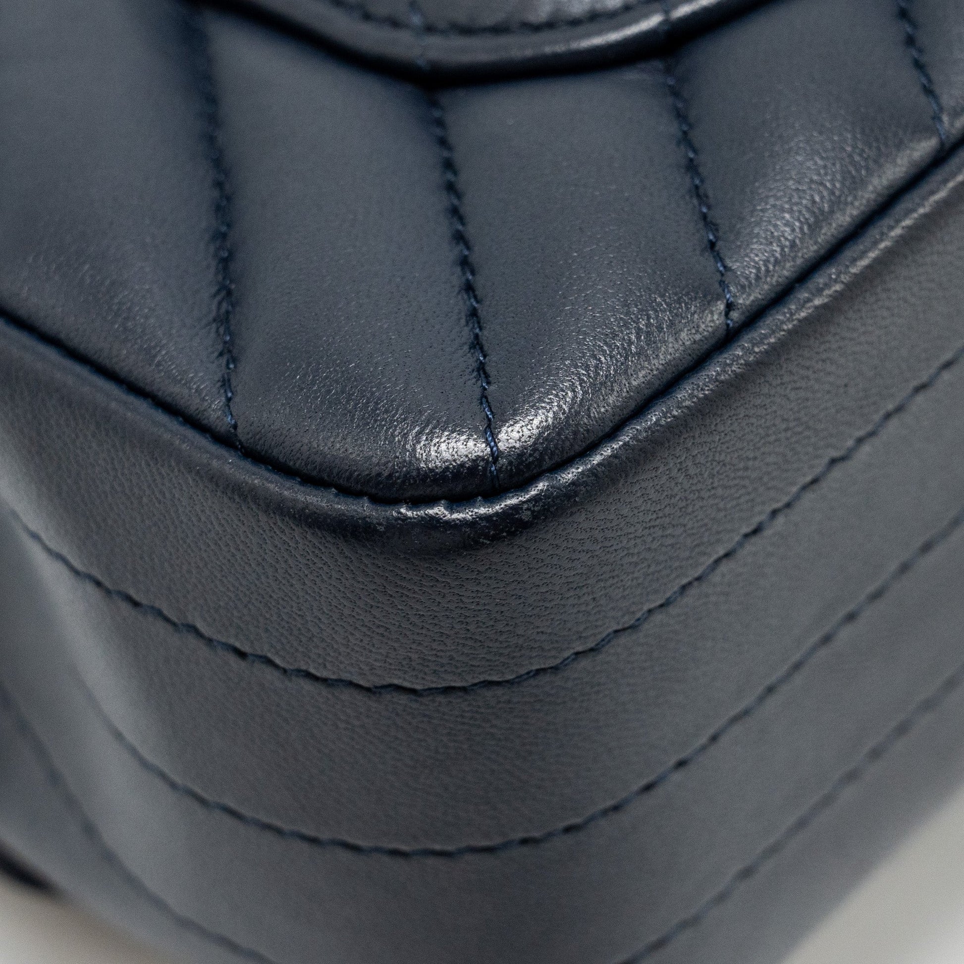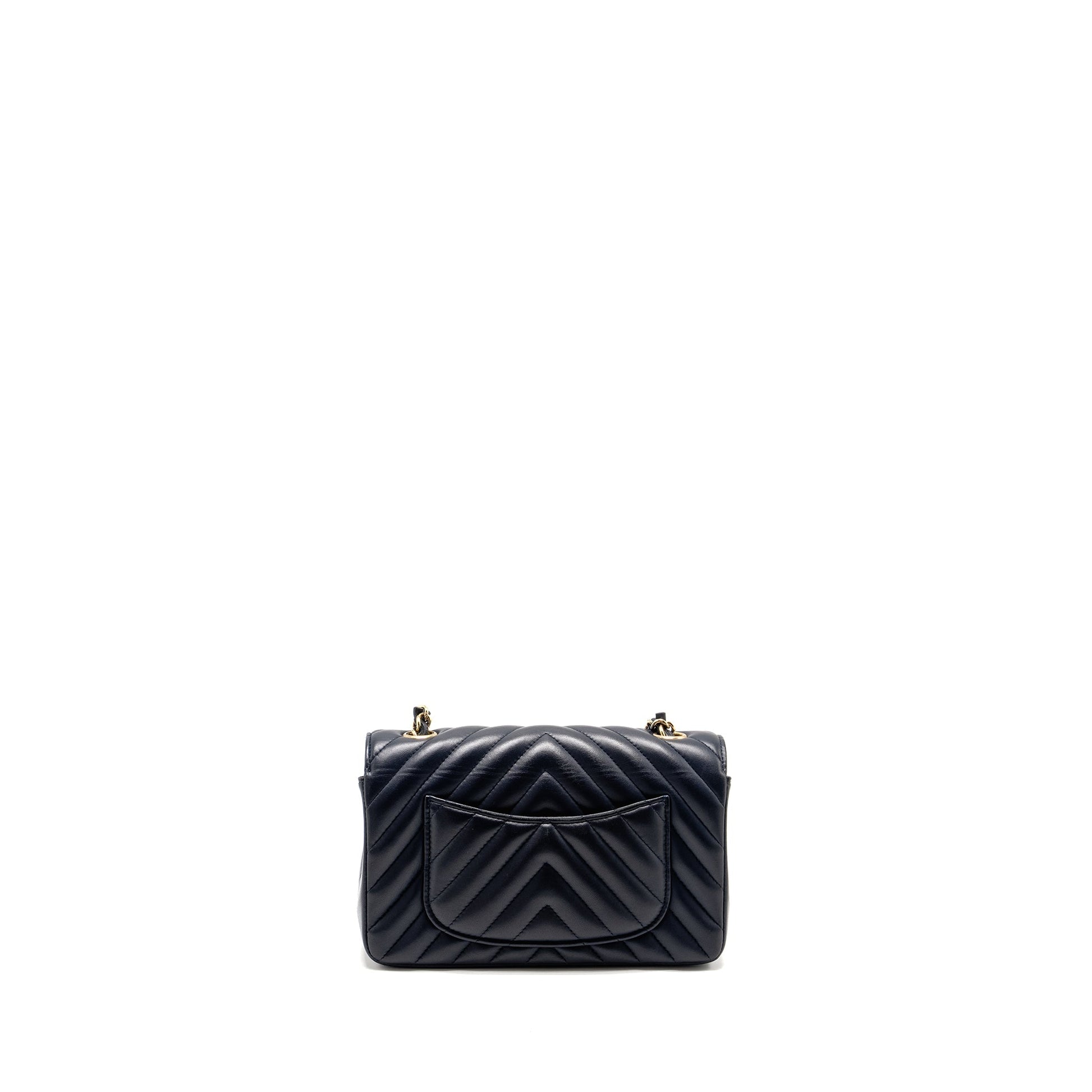 Chanel Mini Rectangular Flap Bag Chevron Lambskin Navy LGHW