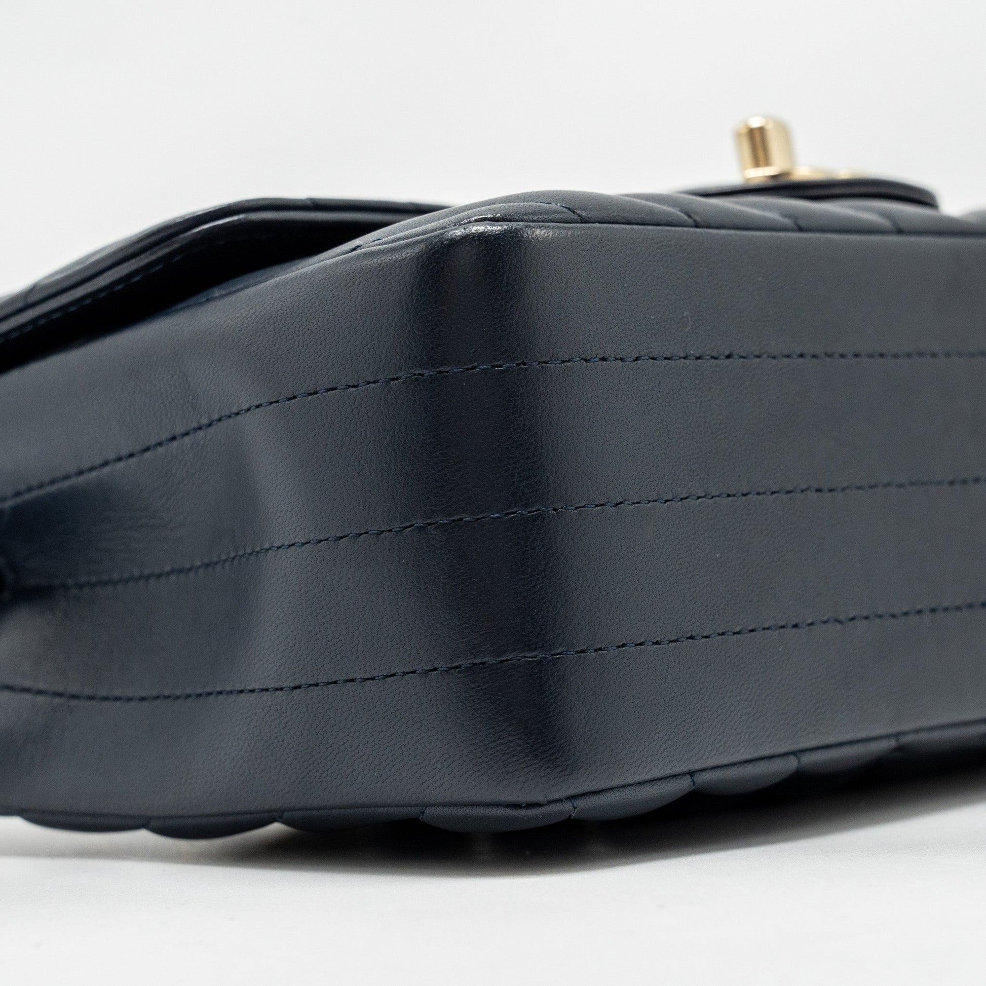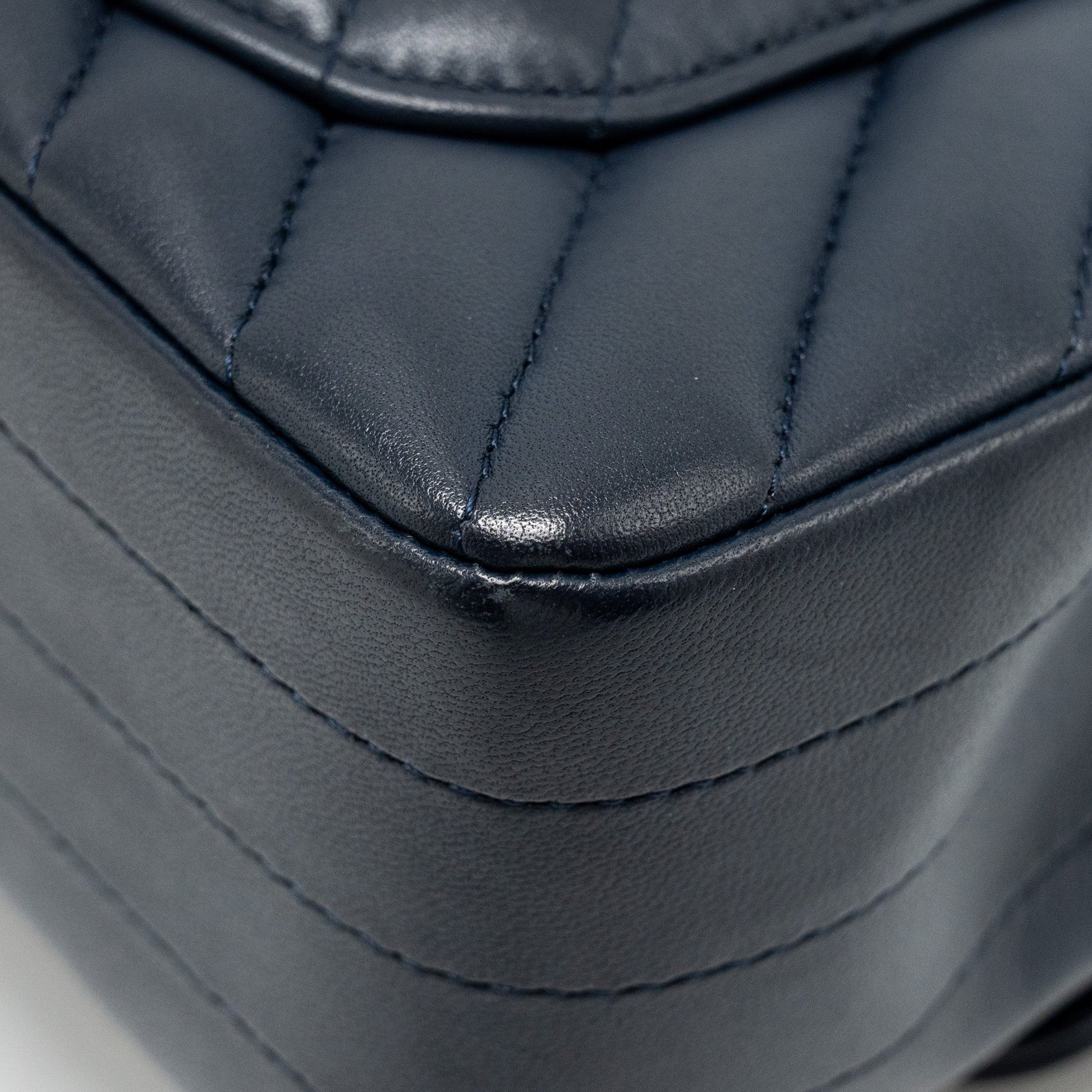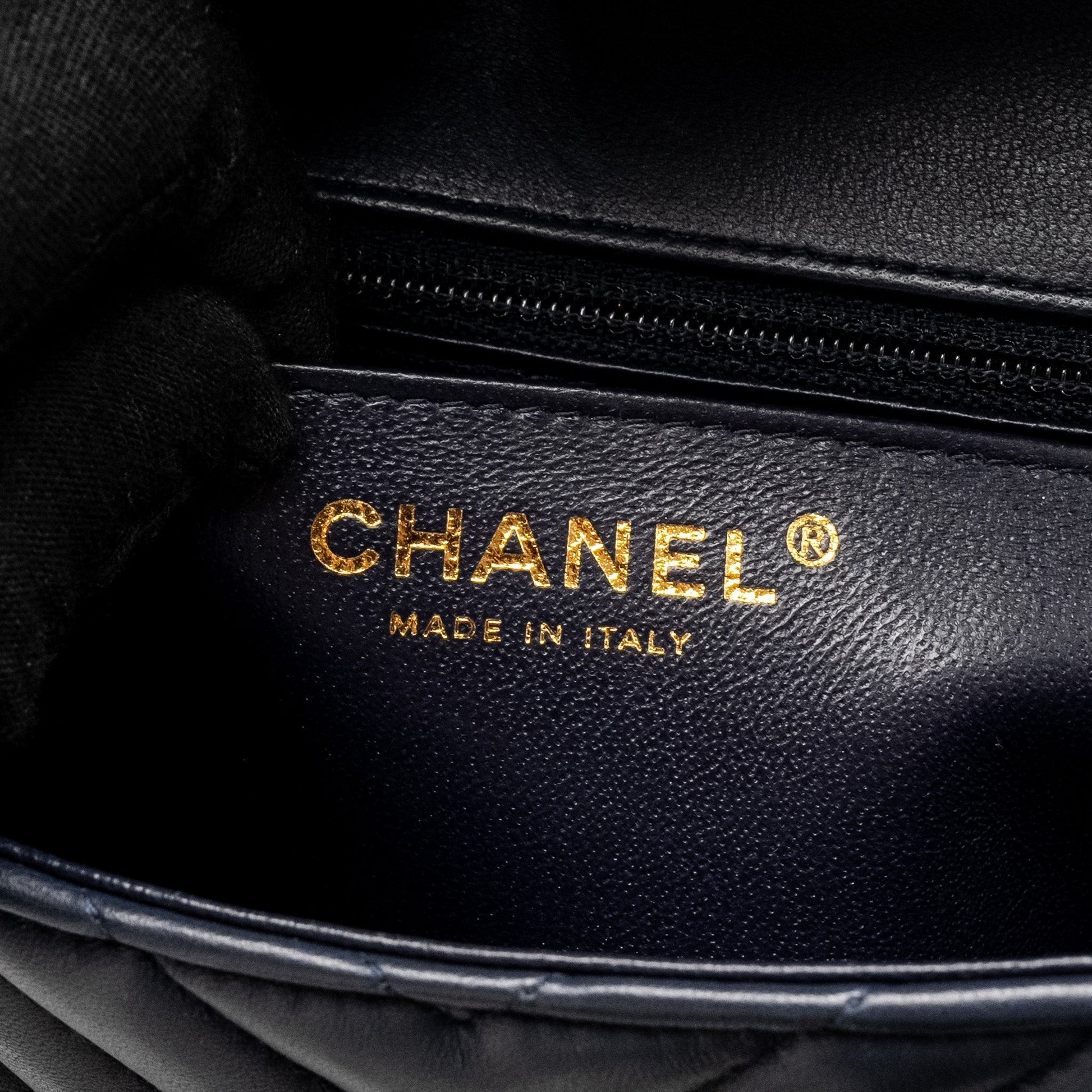 Chanel Mini Rectangular Flap Bag Chevron Lambskin Navy LGHW