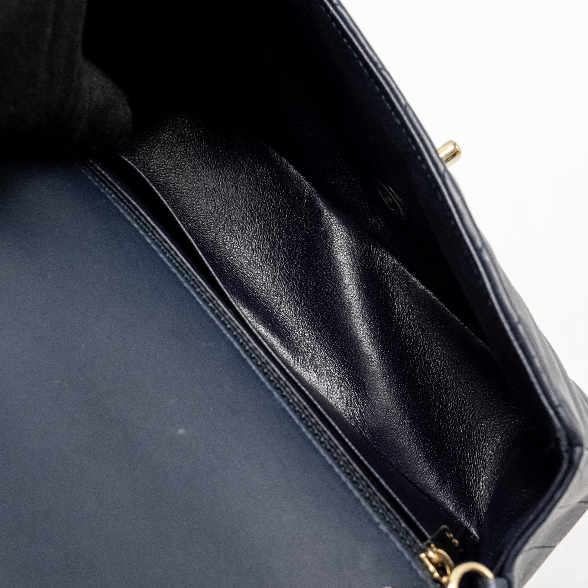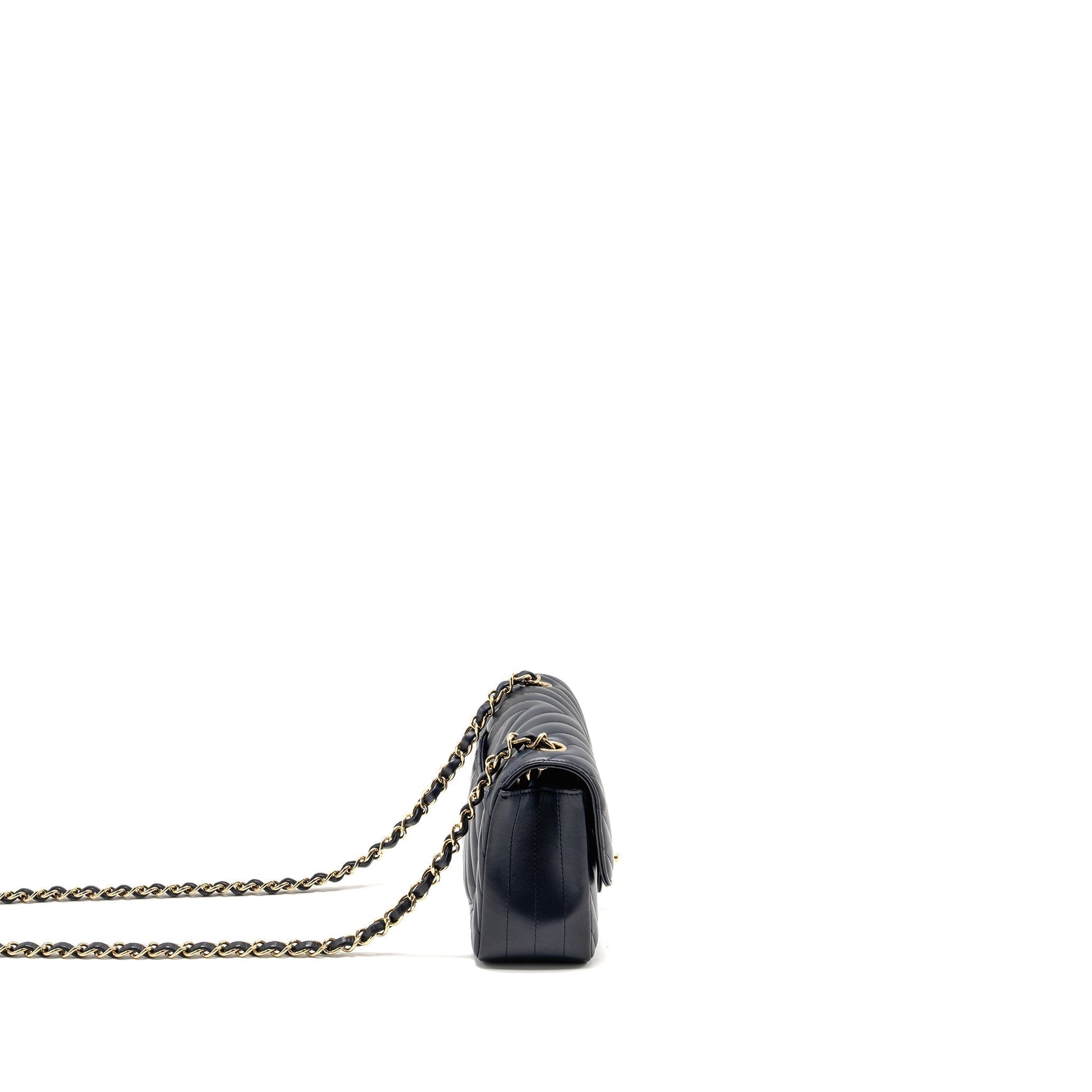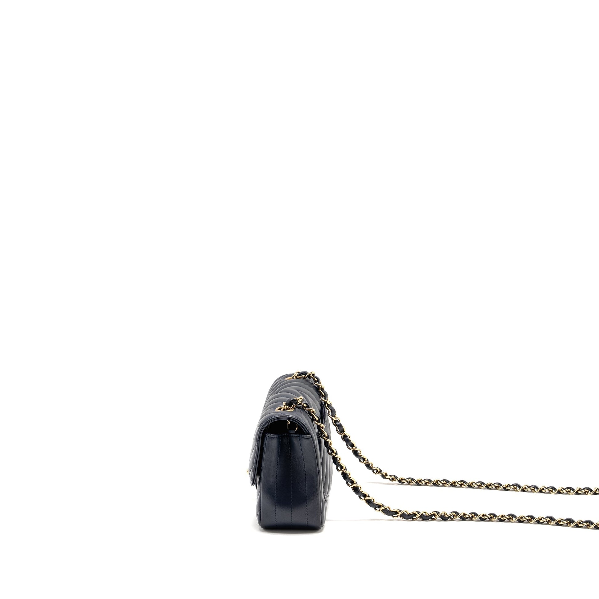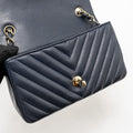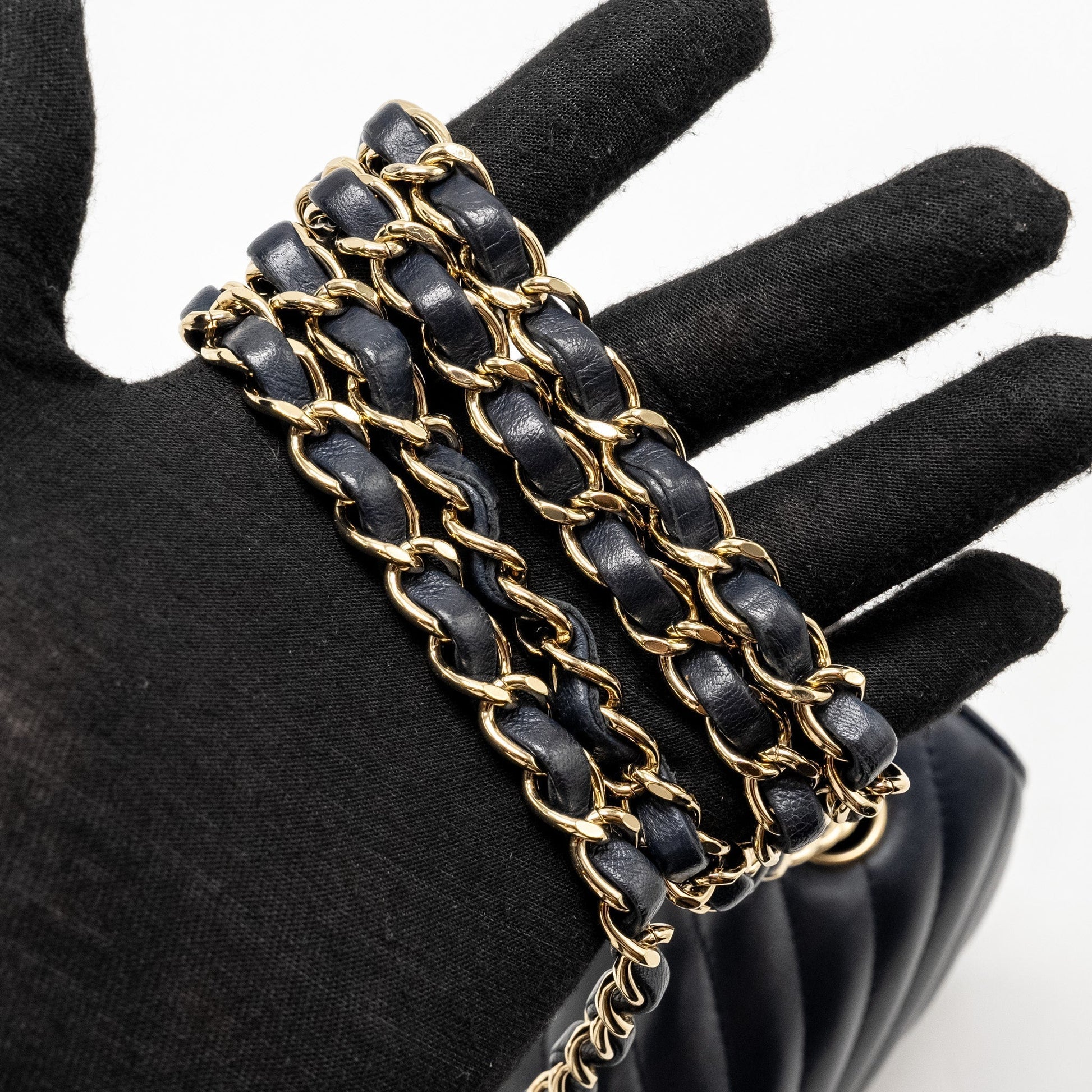 Chanel Mini Rectangular Flap Bag Chevron Lambskin Navy LGHW