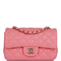 Chanel Mini Rectangular Flap Bag Coral Lambskin Light Gold Hardware