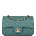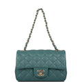 Chanel Mini Rectangular Flap Bag Green Lambskin Light Gold Hardware
