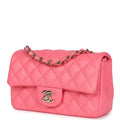 Chanel Mini Rectangular Flap Bag Hot Pink Lambskin Light Gold Hardware