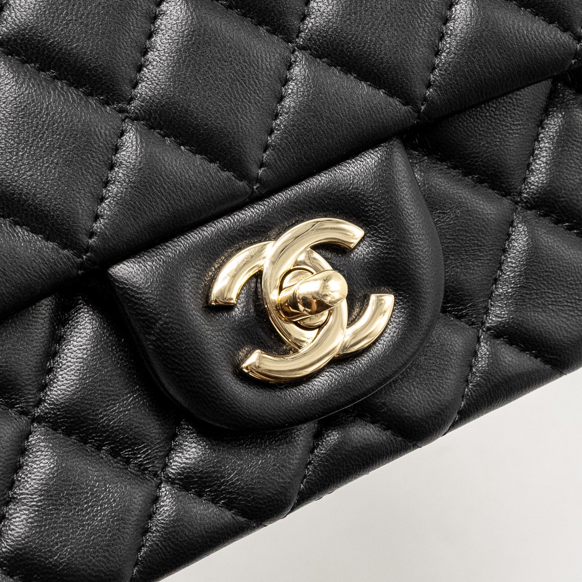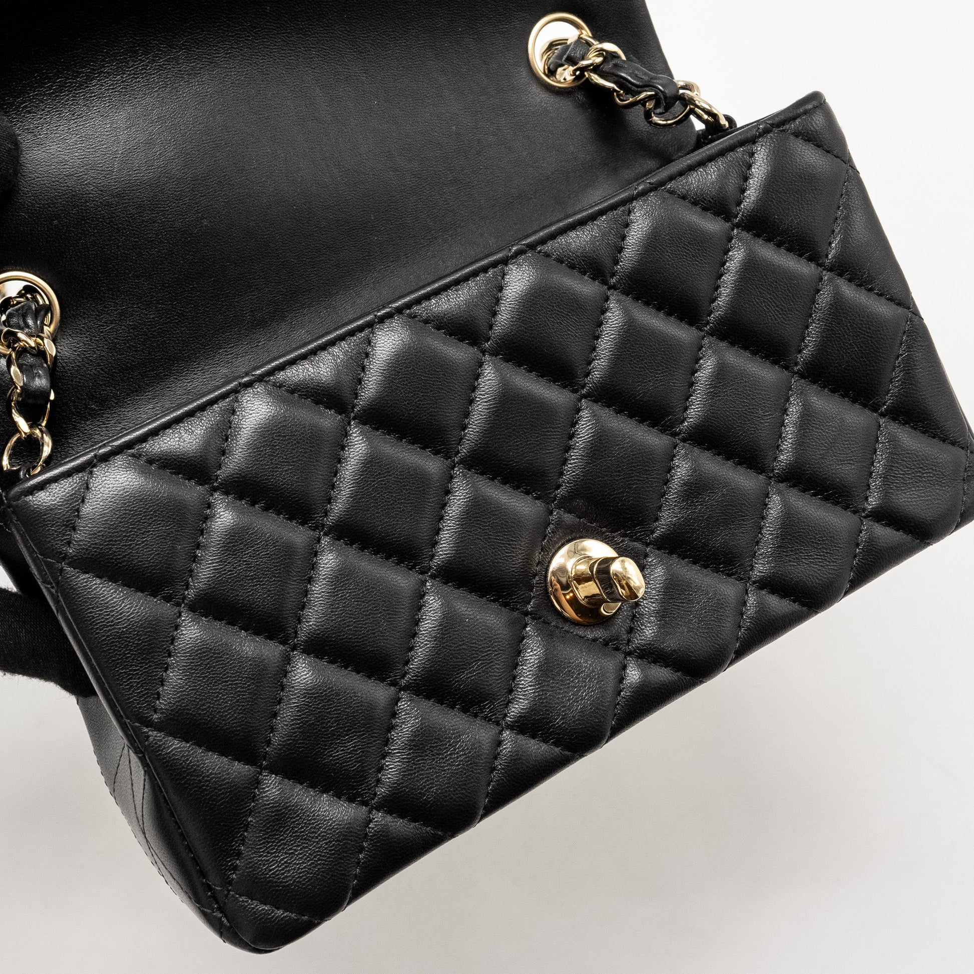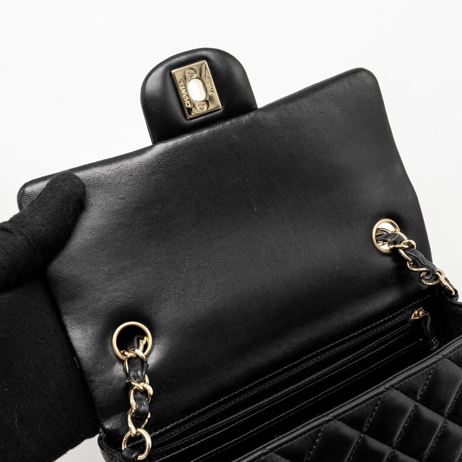 Chanel Mini Rectangular Flap Bag Lambskin Black LGHW (Microchip)