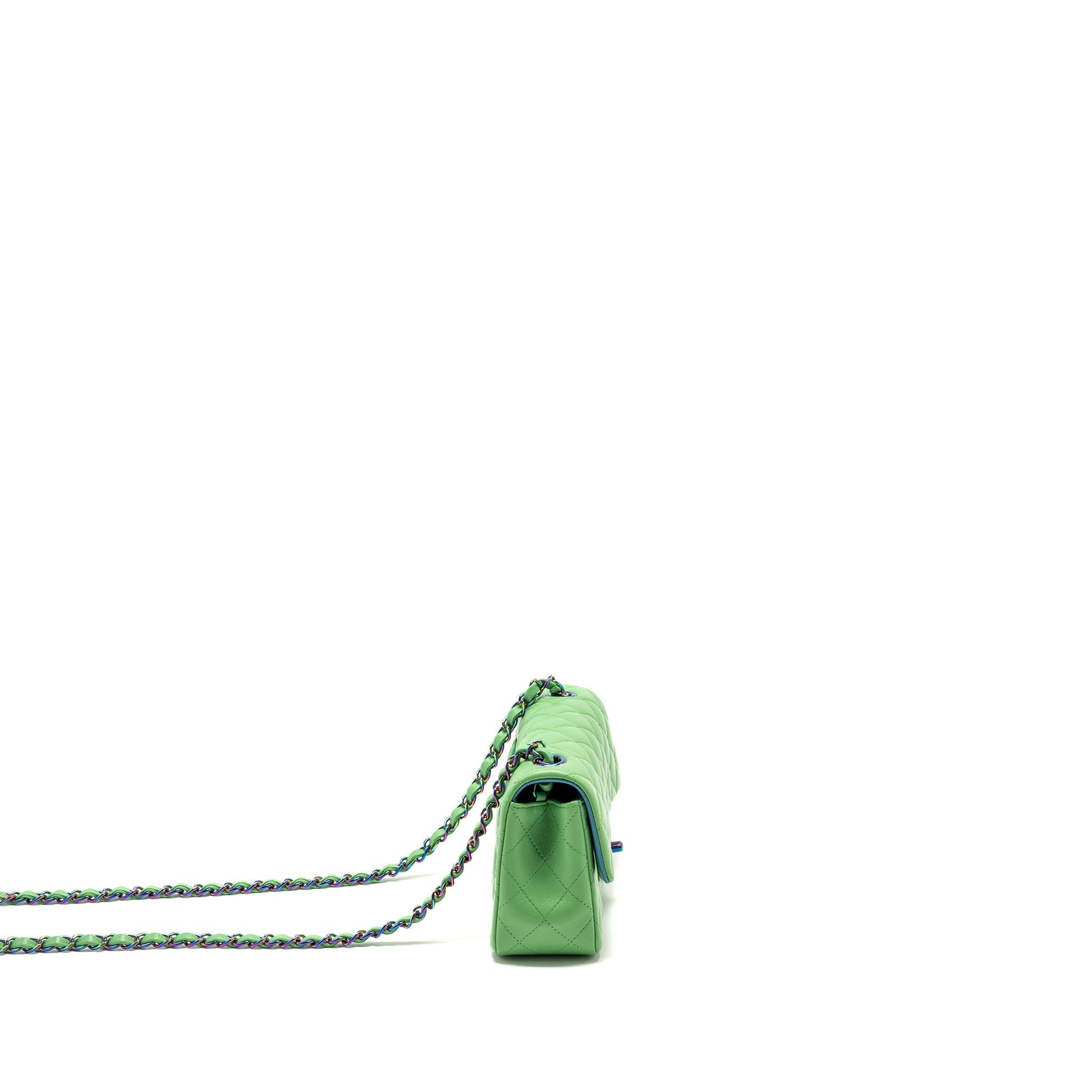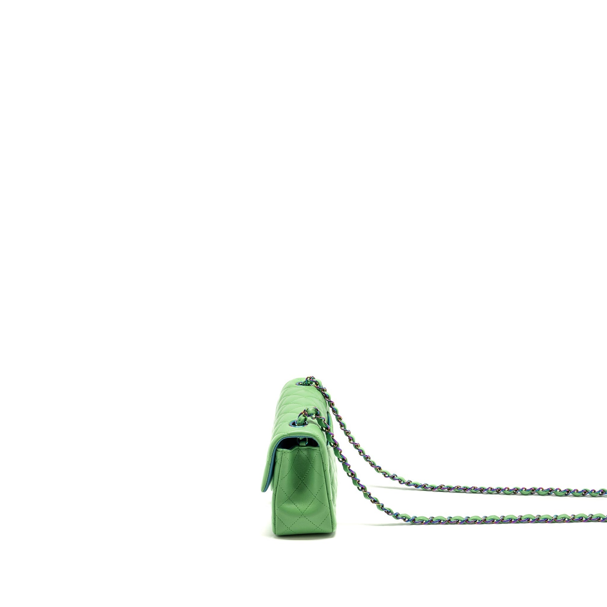 Chanel Mini Rectangular Flap Bag Lambskin Green Iridescent Hardware