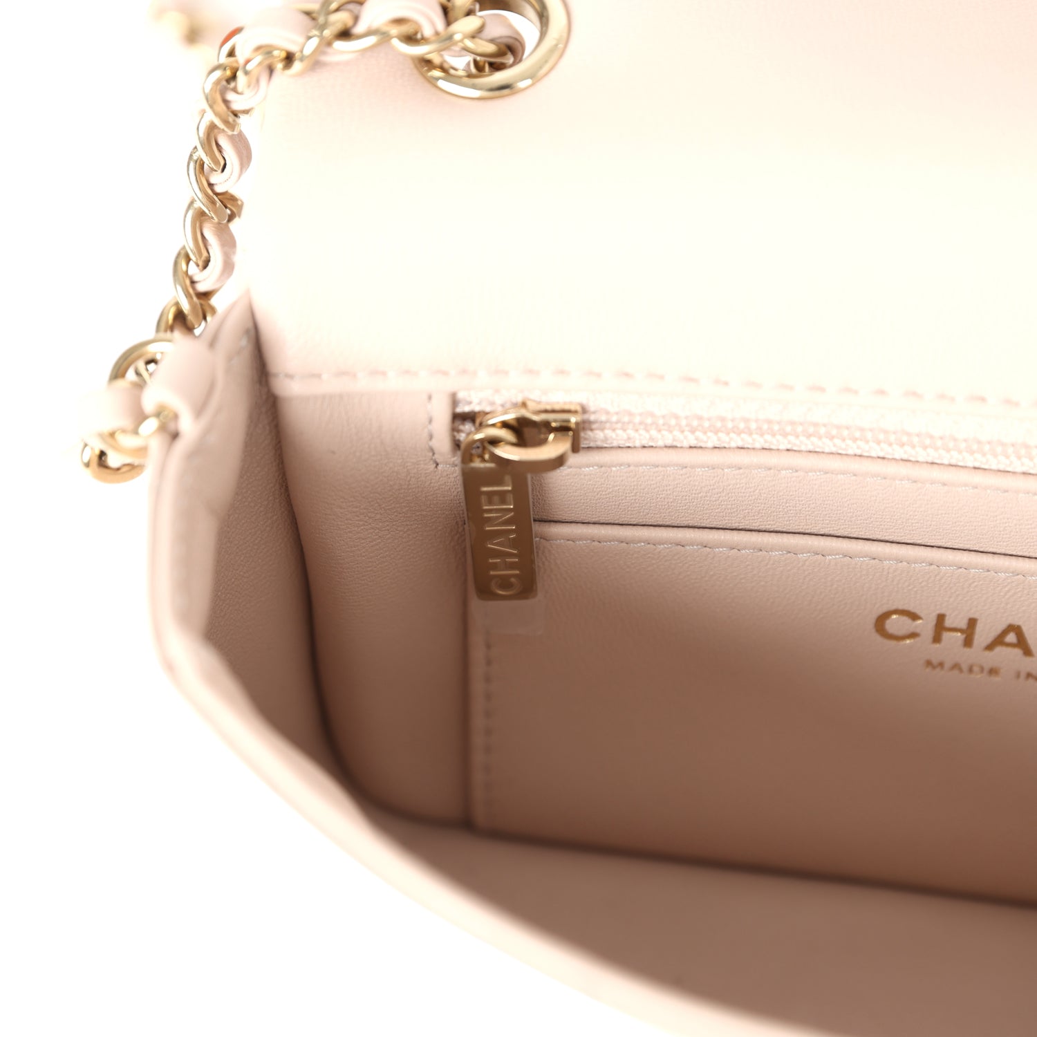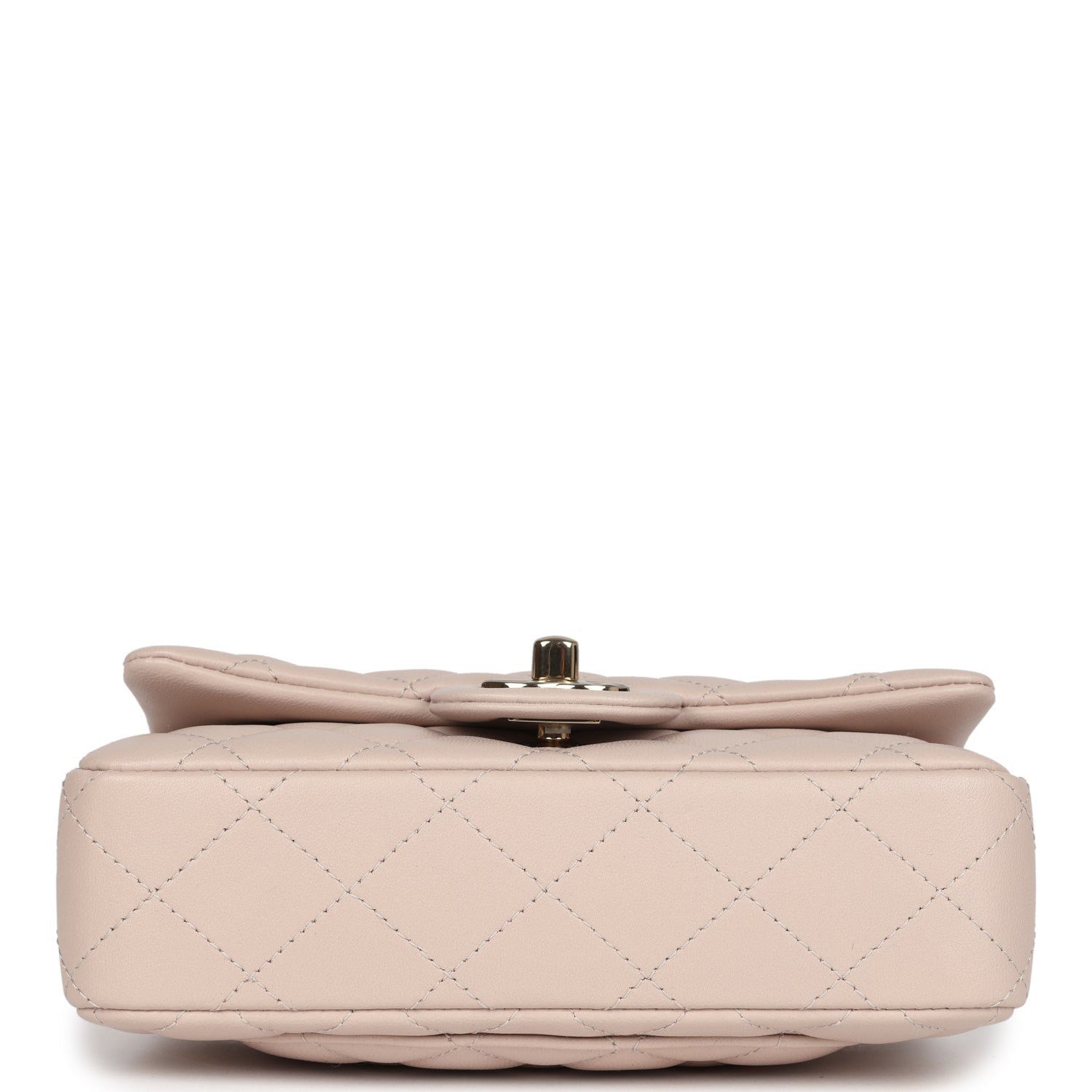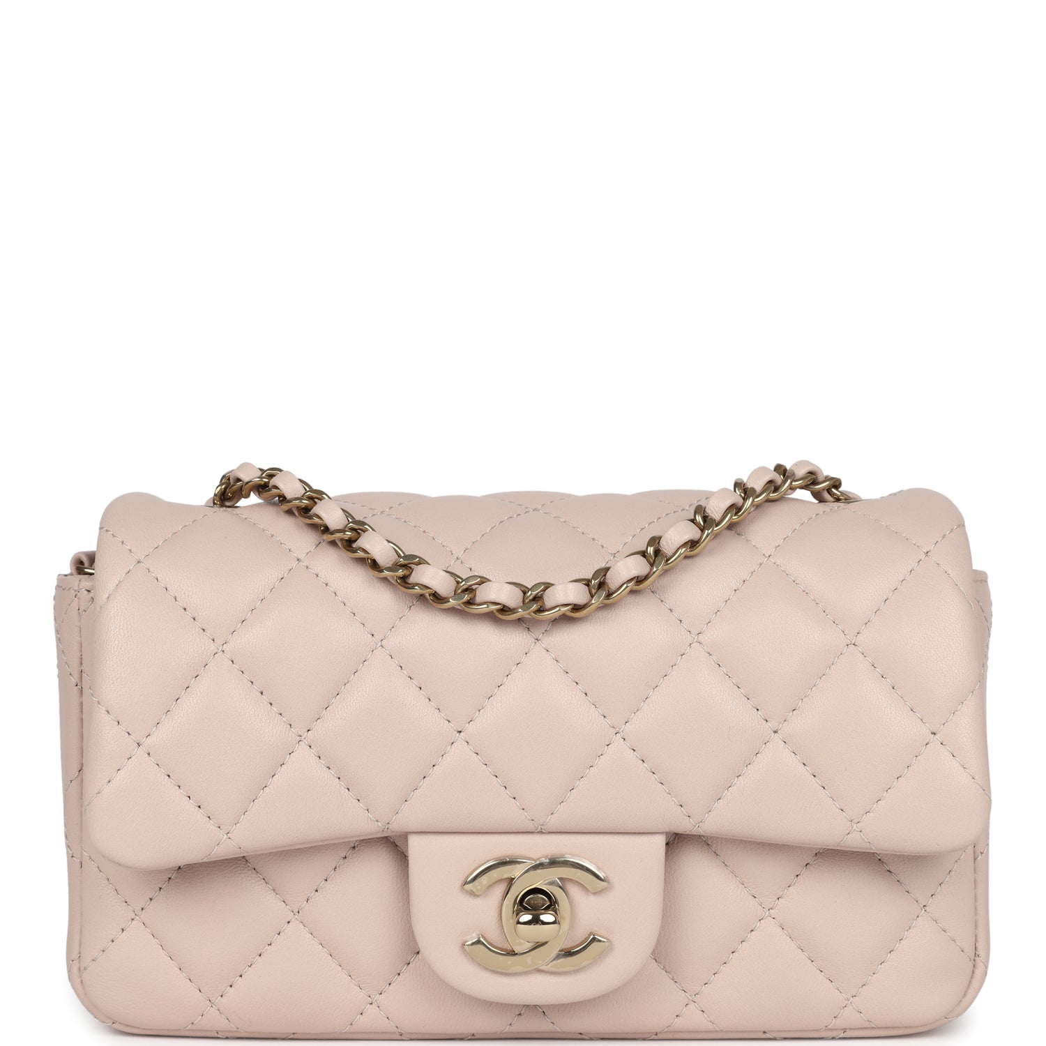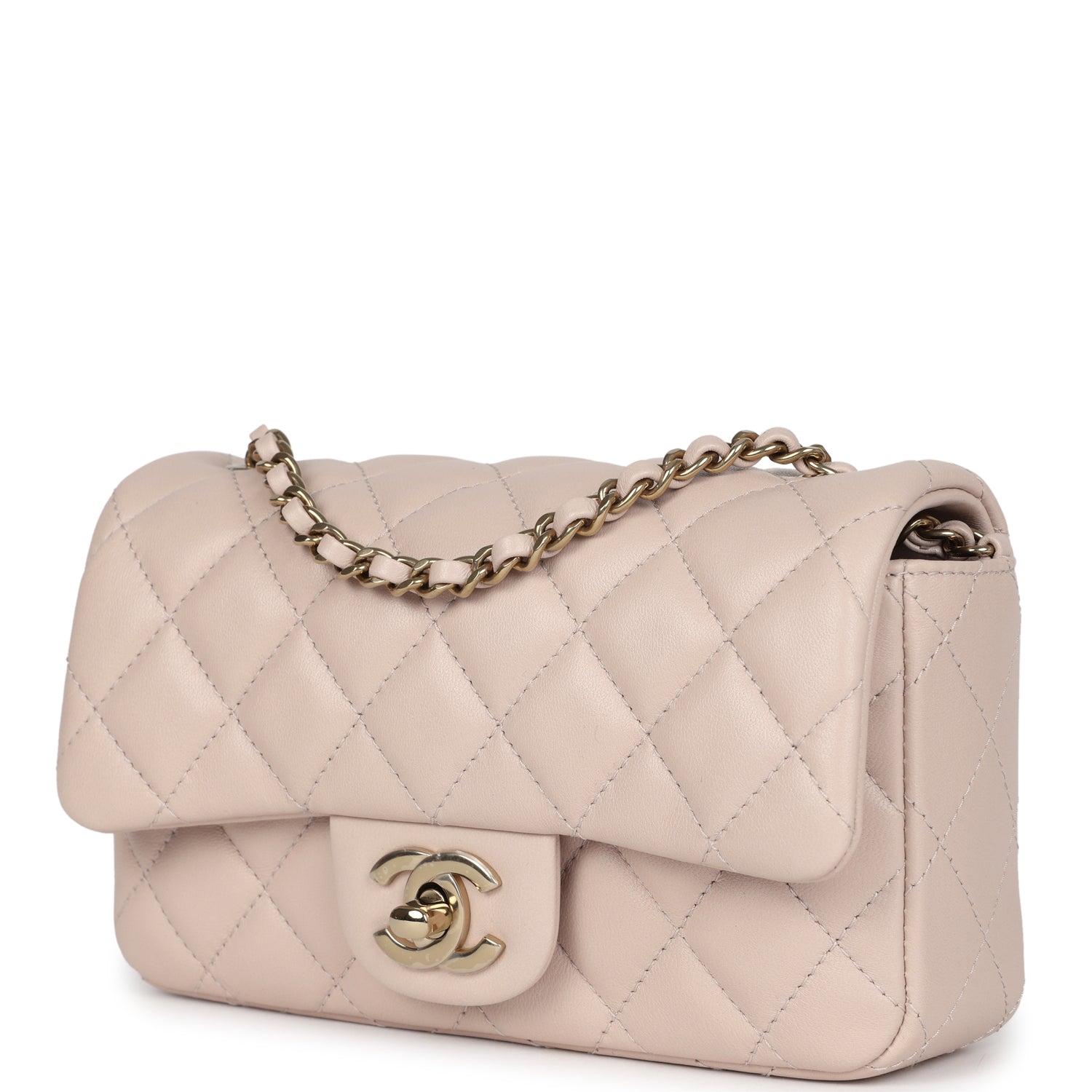 Chanel Mini Rectangular Flap Bag Light Beige Lambskin Gold Hardware