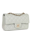 Chanel Mini Rectangular Flap Bag Light Grey Lambskin Light Gold Hardware