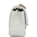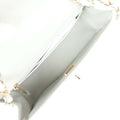 This Rectangular Mini Flapbag is of Light Grey lambskin with light gold hardware, a front flap with CC turnlock closure, half moon back pocket and interwoven light gold tone chain link and Light Grey leather crossbody strap.