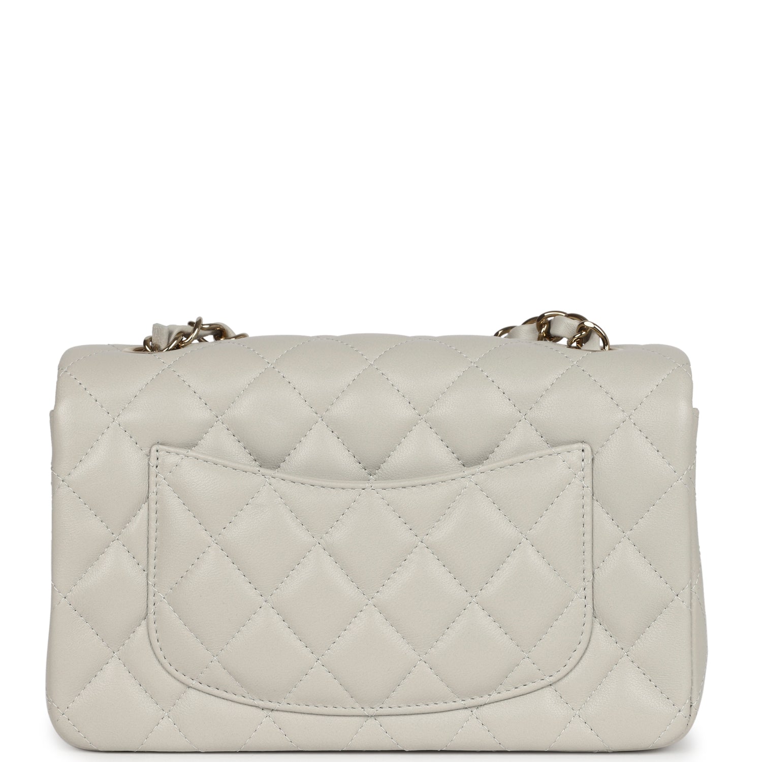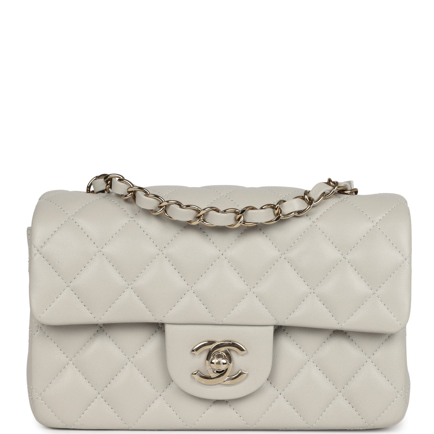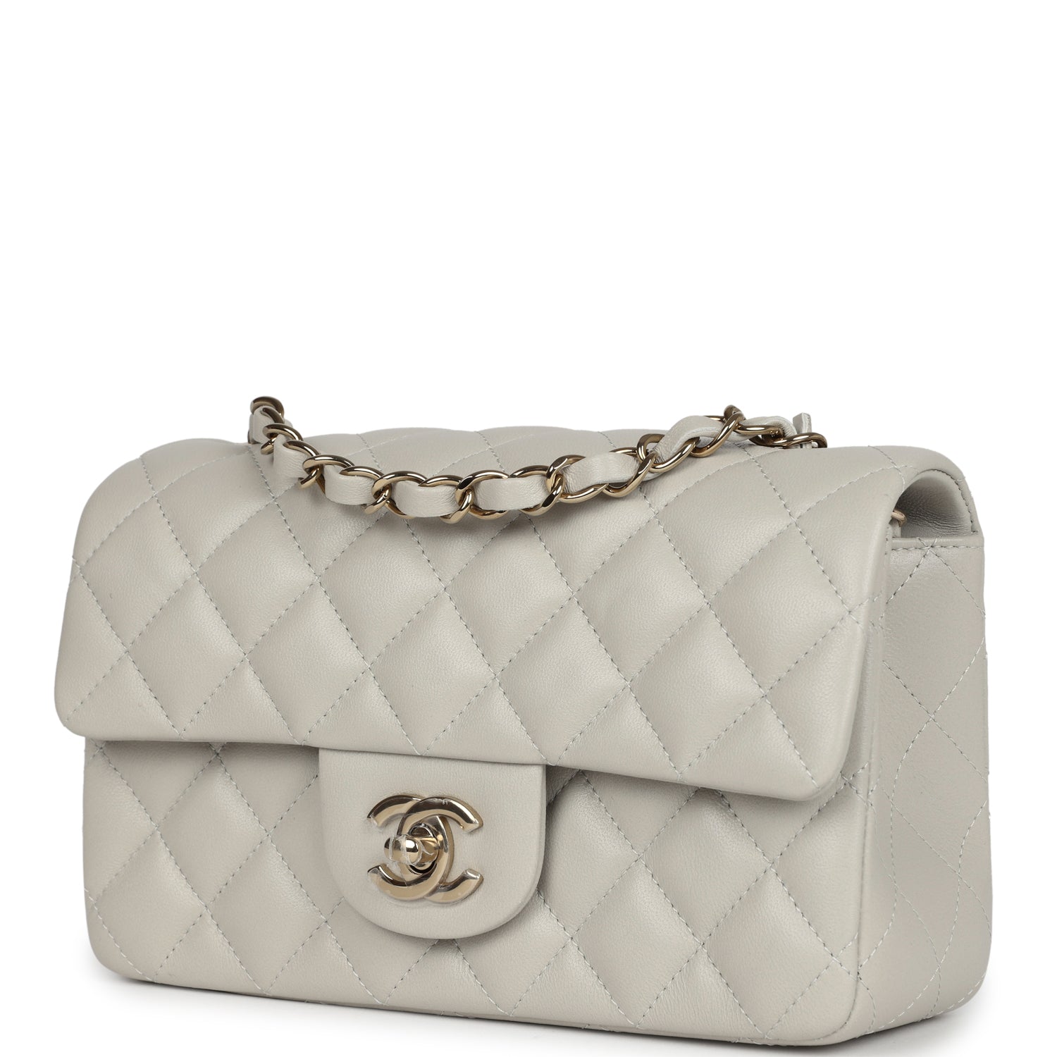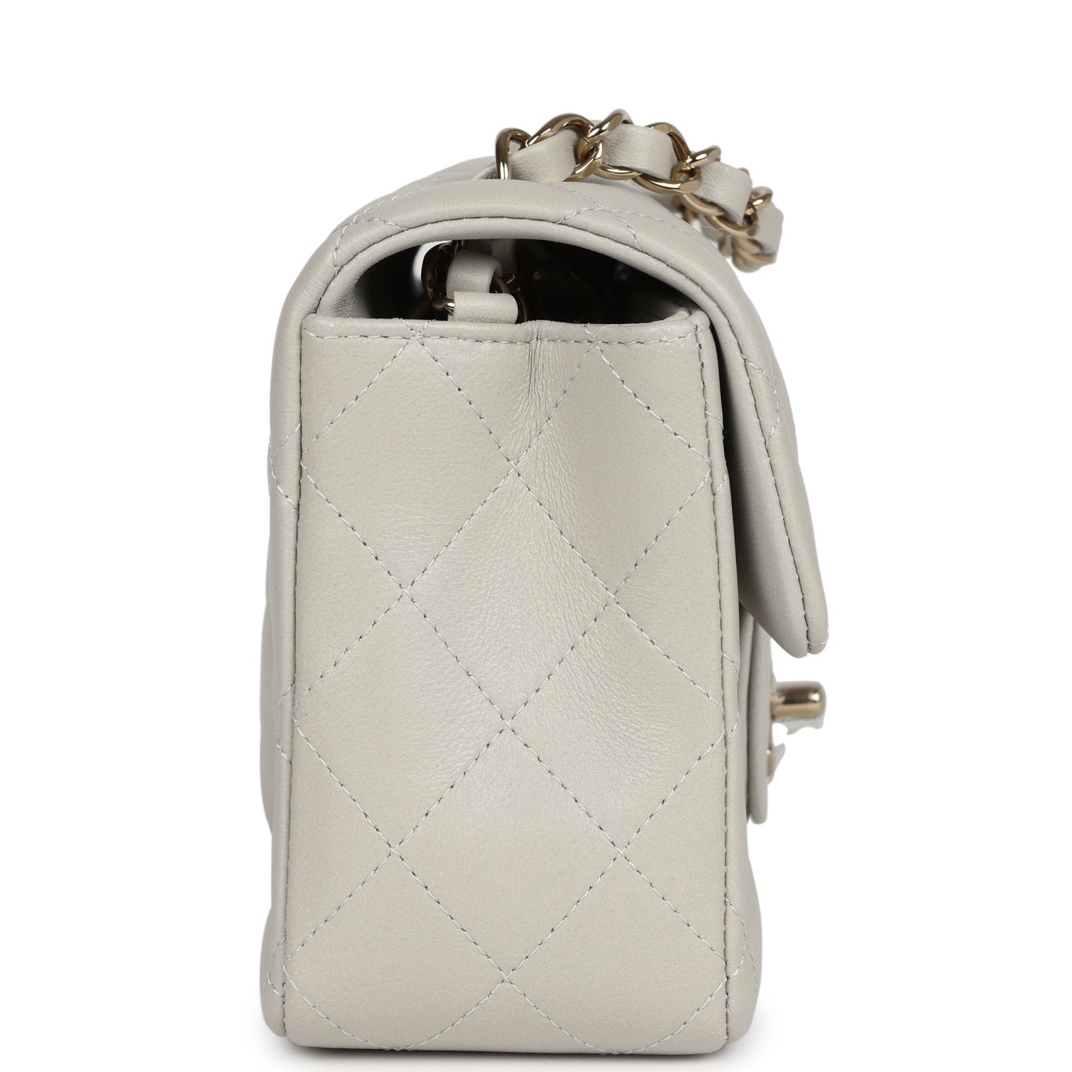 Chanel Mini Classic Rectangular Flap Bag Light Grey Lambskin Light Gold Hardware