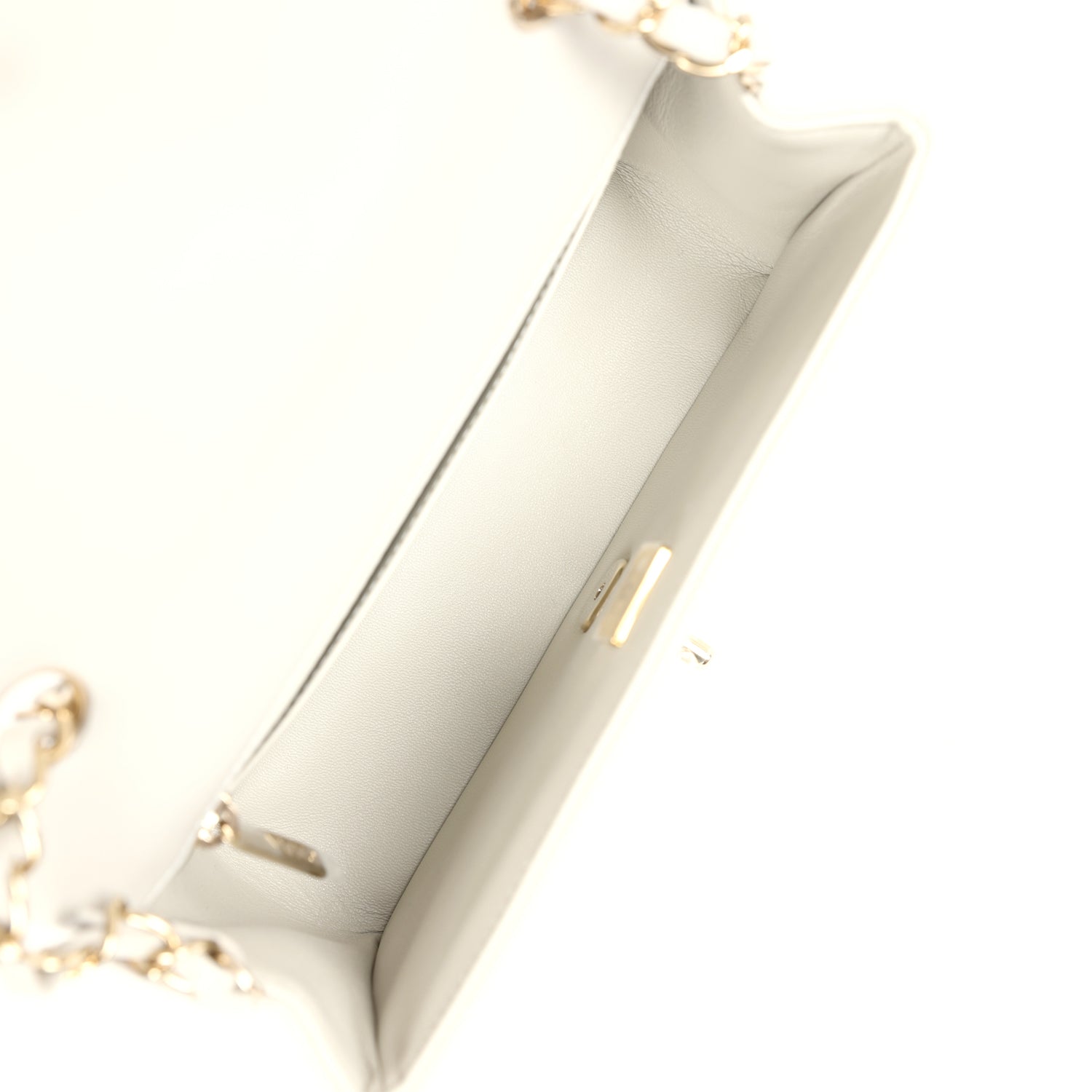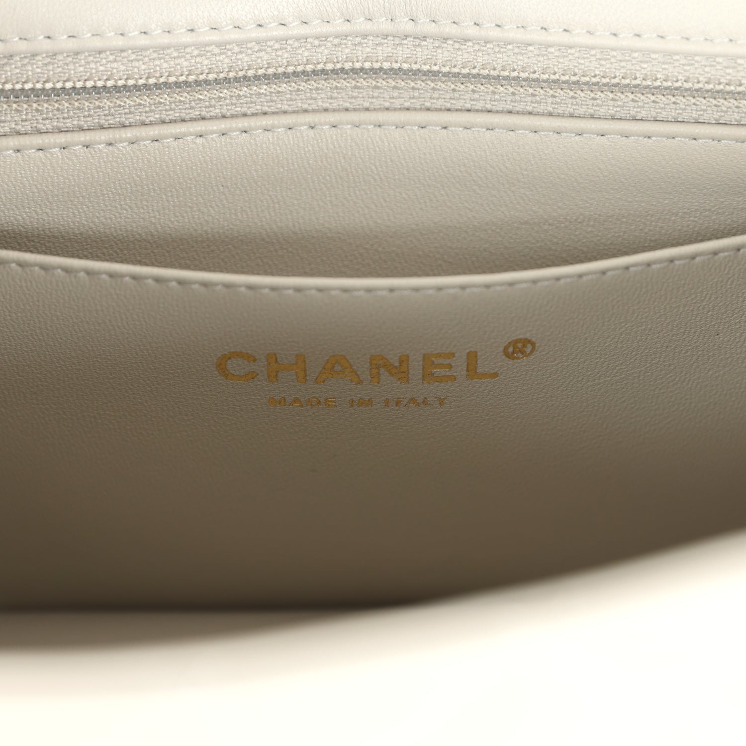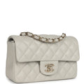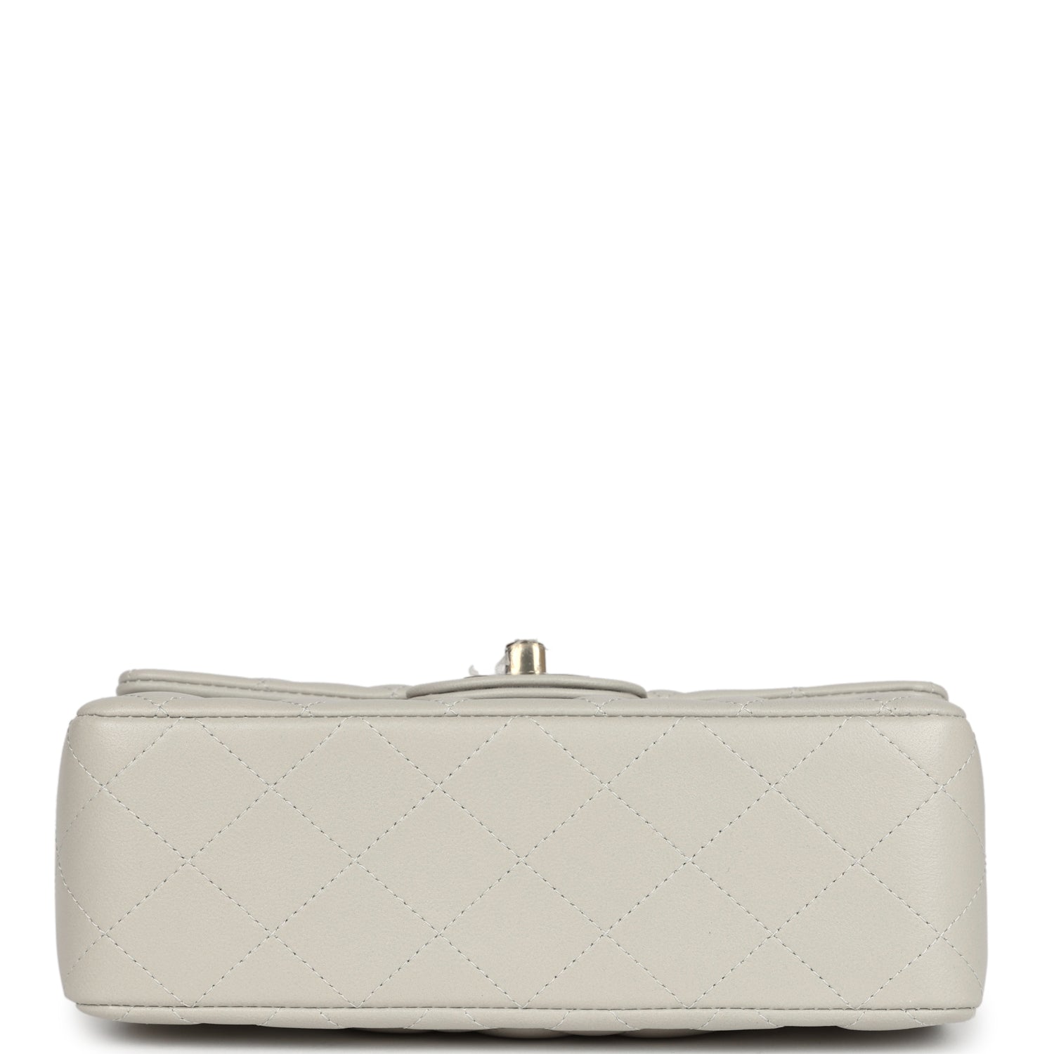 Chanel Mini Classic Rectangular Flap Bag Light Grey Lambskin Light Gold Hardware