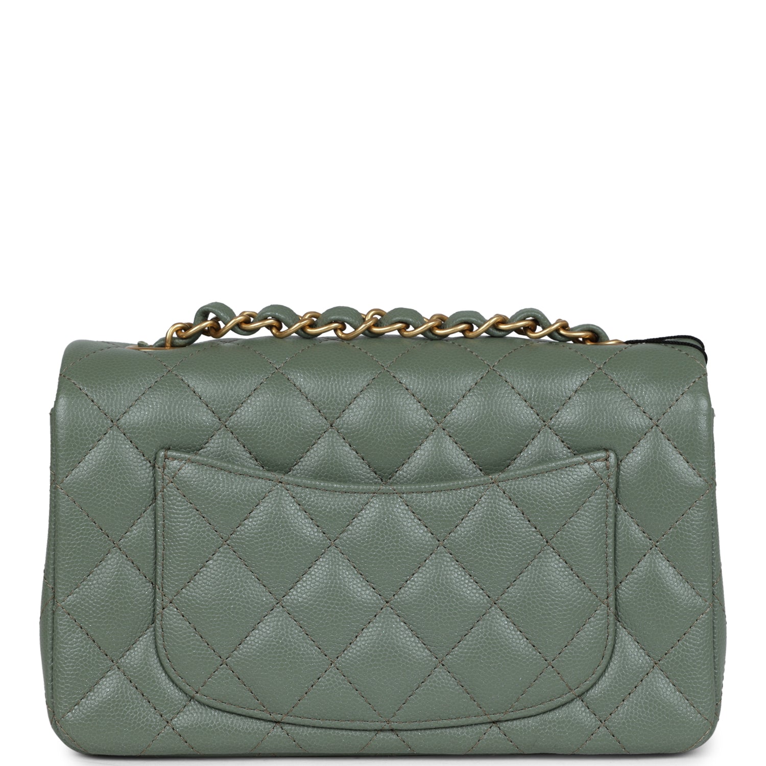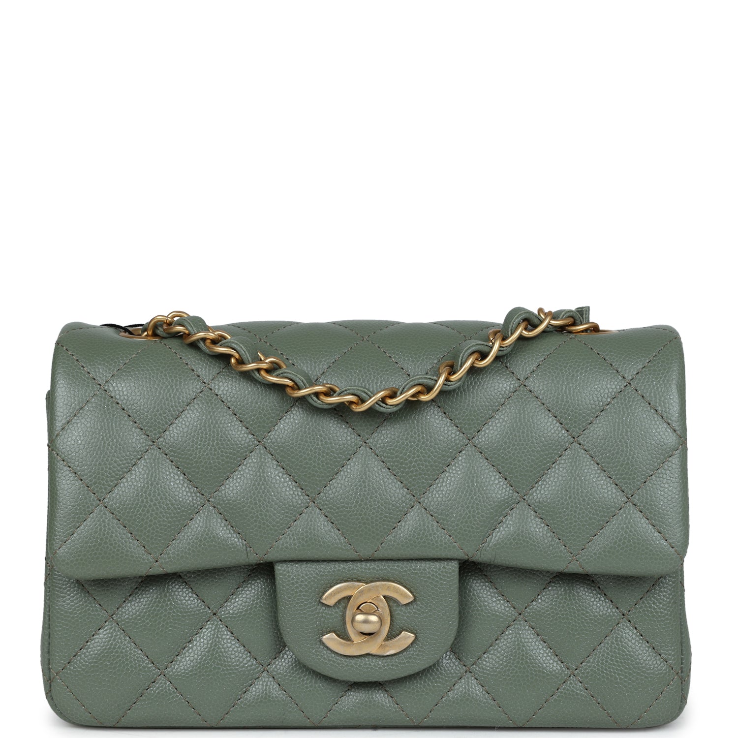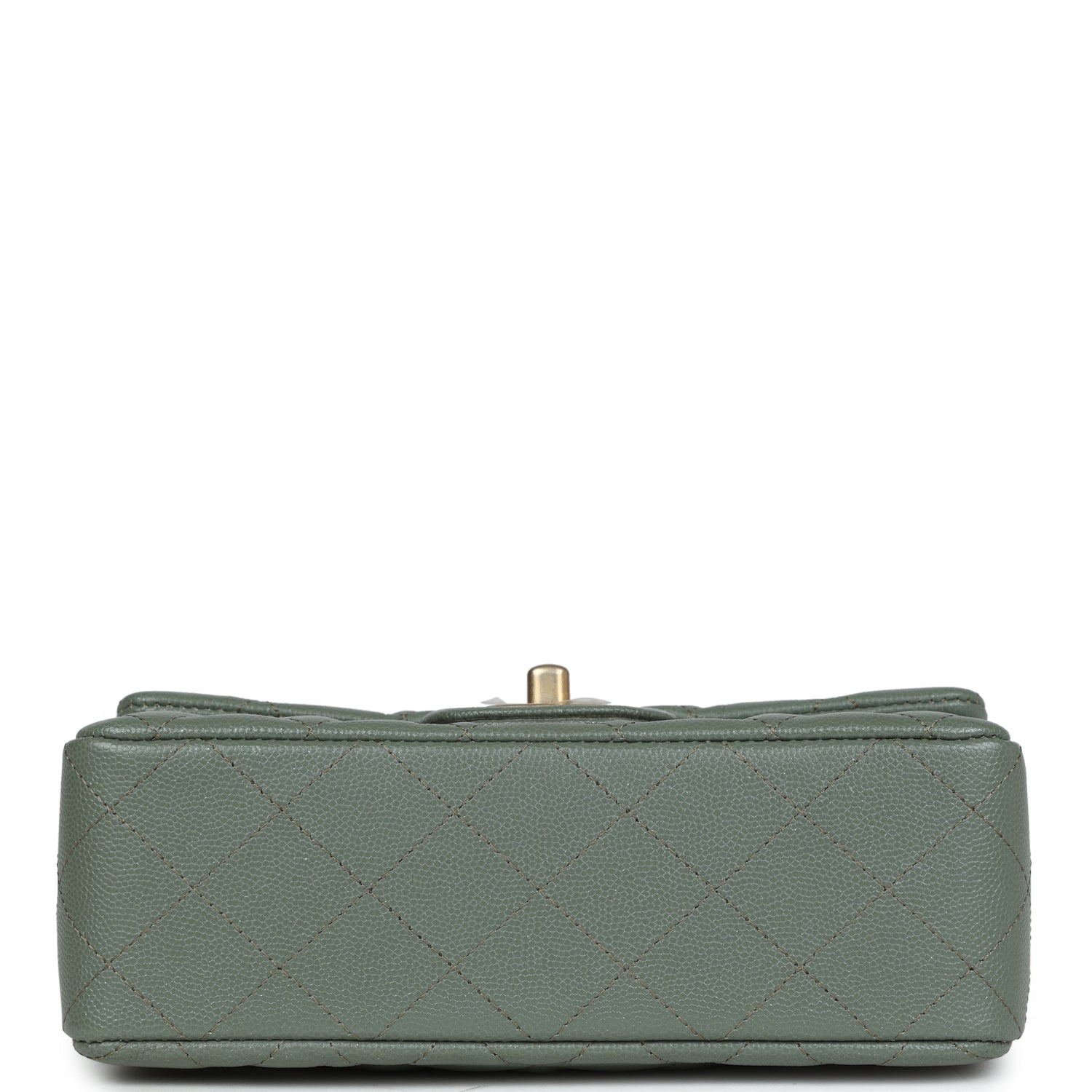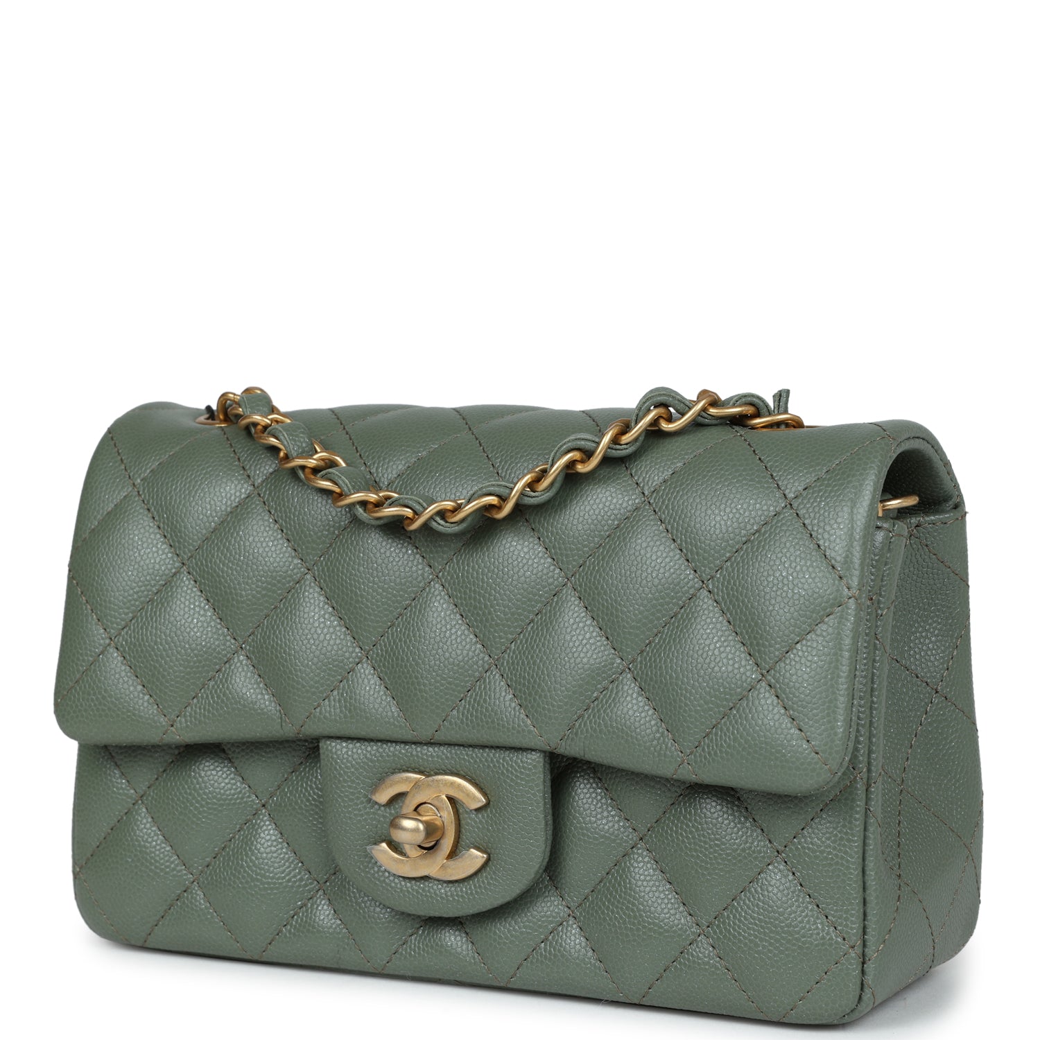 Chanel Mini Rectangular Flap Bag Olive Green Caviar Antique Gold Hardware