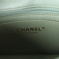 This Mini Rectangular flap bag is in olive caviar with antique gold tone hardware and has a front flap with signature CC turnlock closure, rear half moon pocket and single interwoven olive leather and antique gold tone chain link shoulder/crossbody strap.