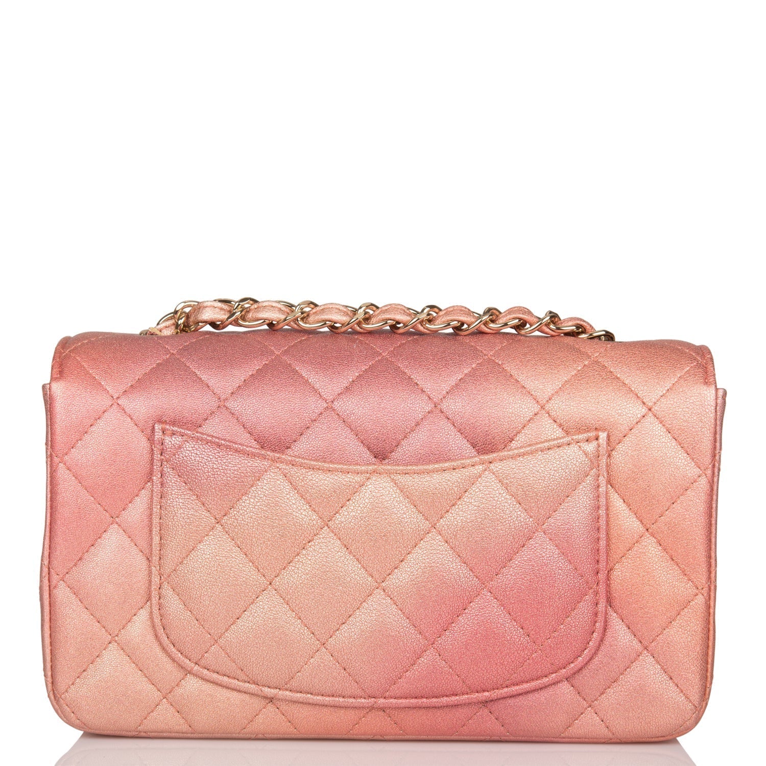 Chanel Mini Rectangular Flap Bag Pink Ombre Metallic Lambskin Light Gold Hardware