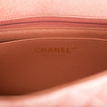 The interior is lined in pink leather and features a zipper pocket with Chanel pull and an open pocket below.